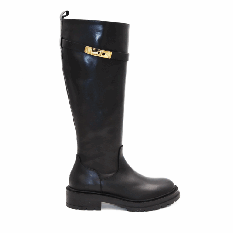 Kožne cipele na srednjoj stabilnoj peti sa zlatnom šnalom. U osnovi crna boja sa zlatno-bakarnim sjajem preko. Italijanska proizvodnja, kalupi veći za pola broja.