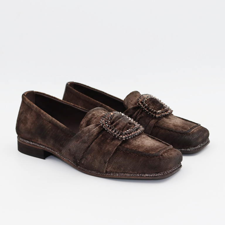 Braon kožne čizme sa kroko printom na peti i debelom stabilnom slaganom petom. Italijanska proizvodnja.