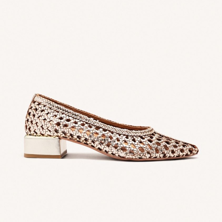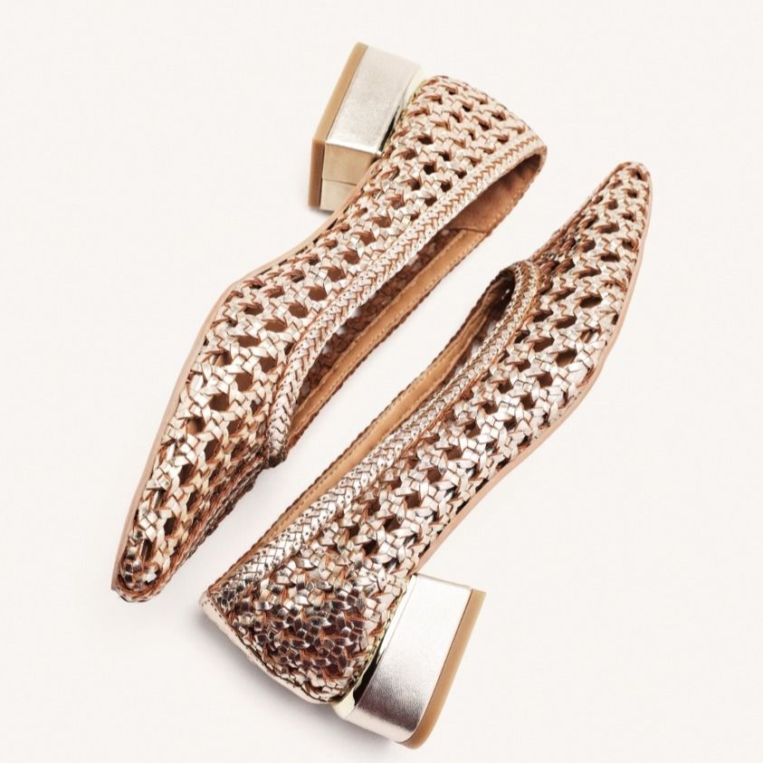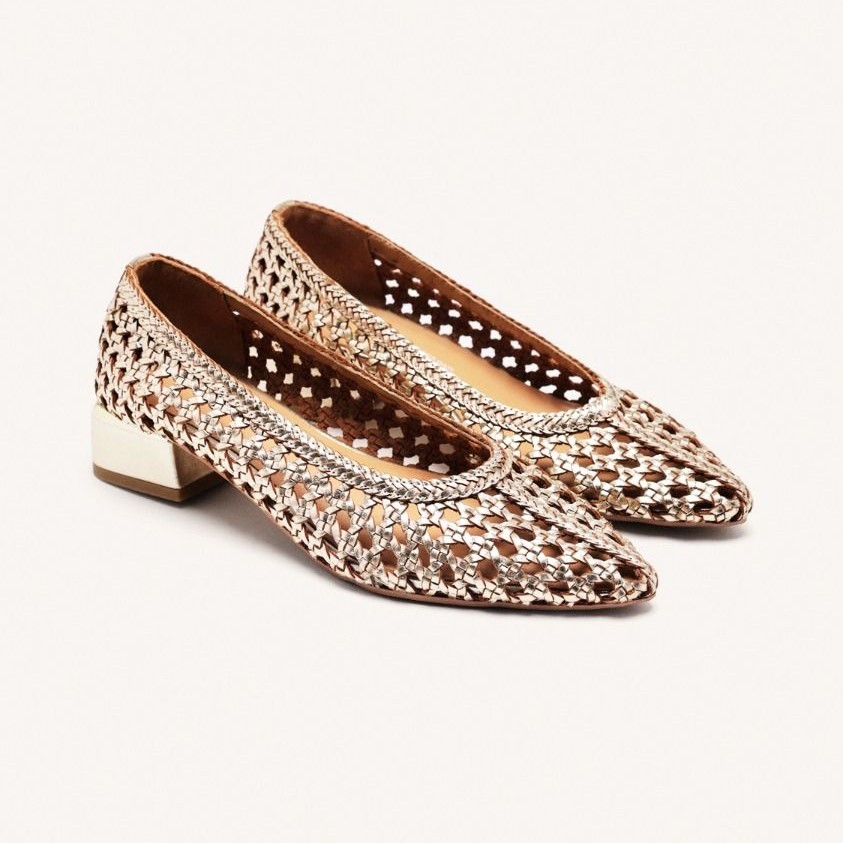 Gioseppo kožne zlatne plete cipele na blagi špic i na potpeti ciod 4 cm