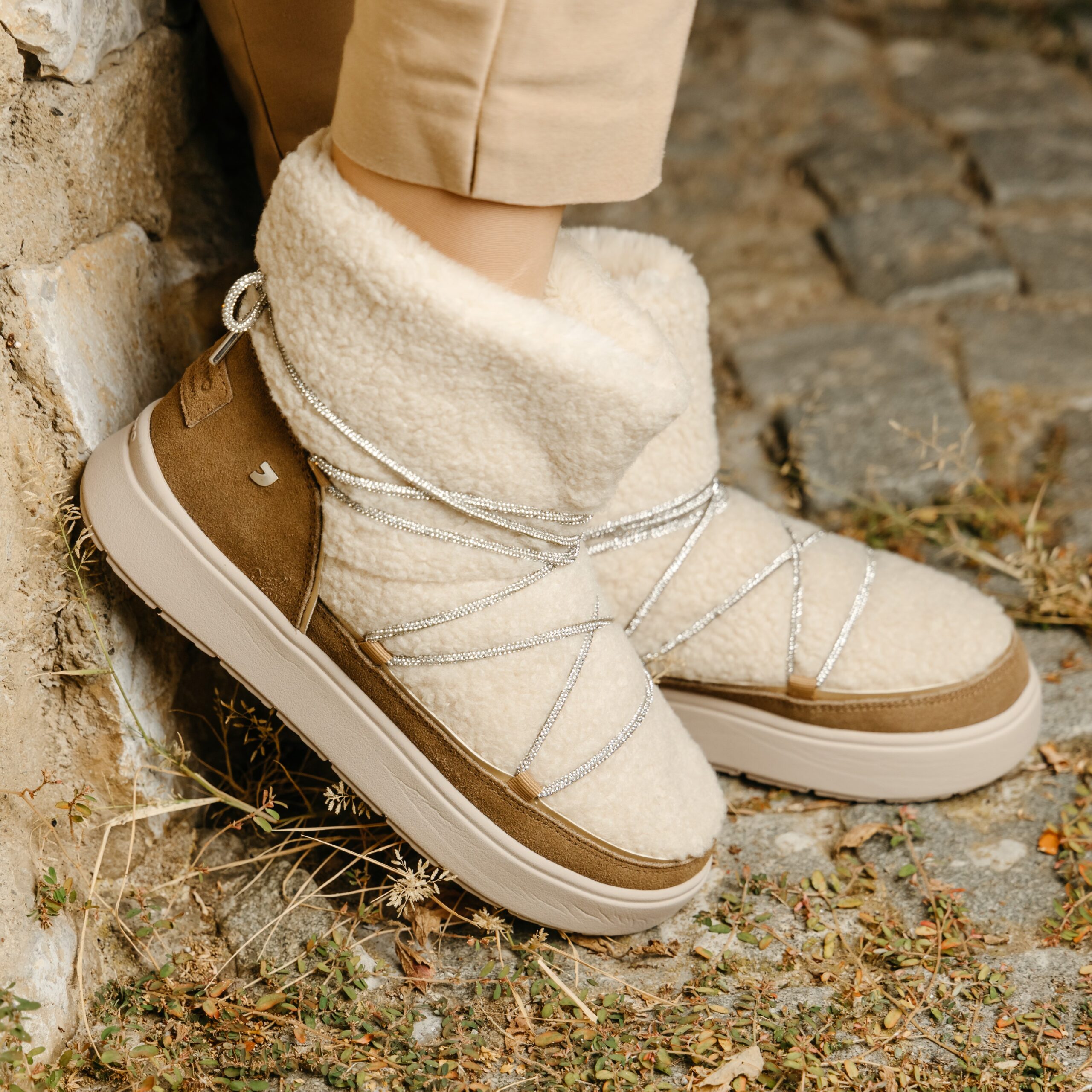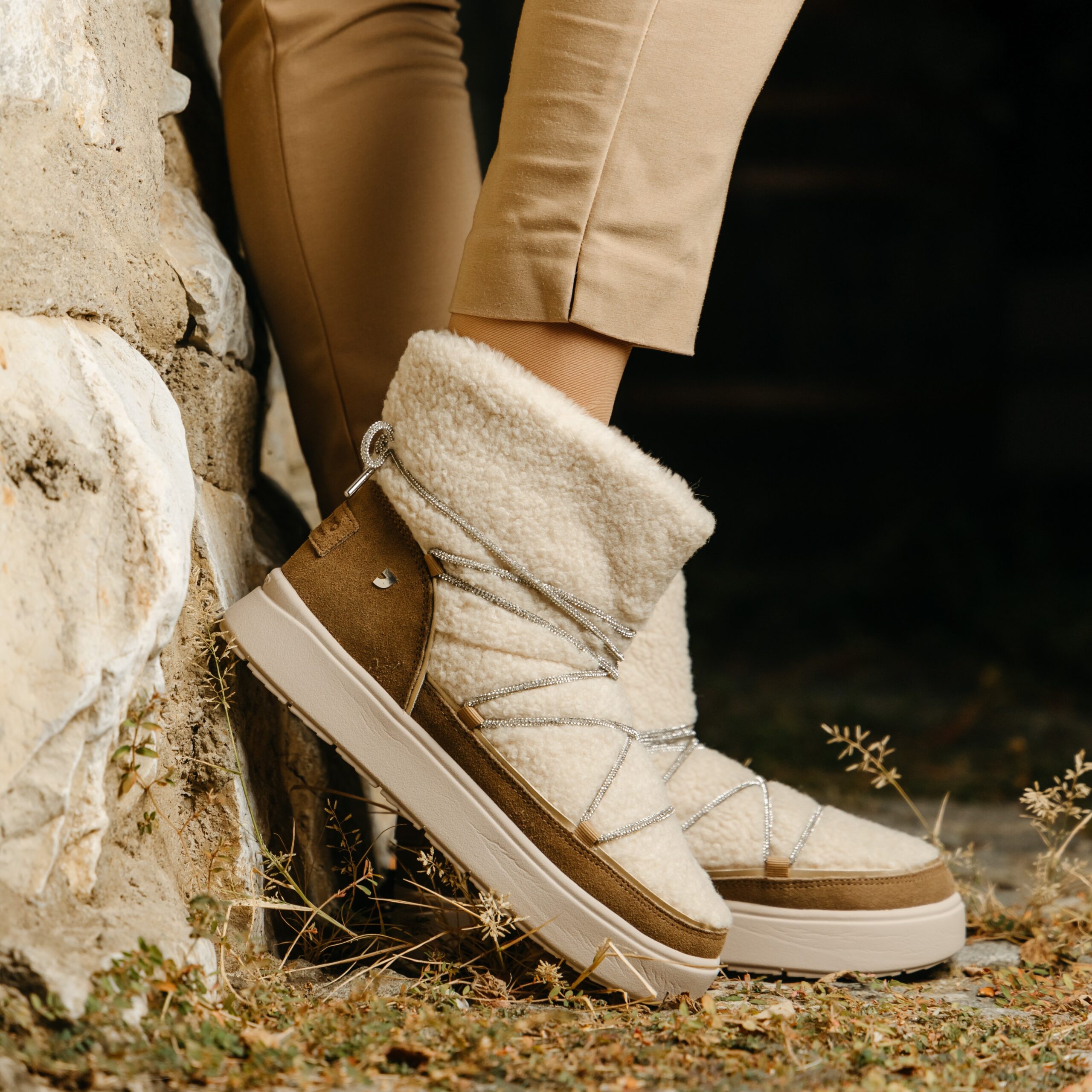Gioseppo bež gležnjače sa krznom i braon velur detaljima, sa srebrnim lančićem od cirkona.