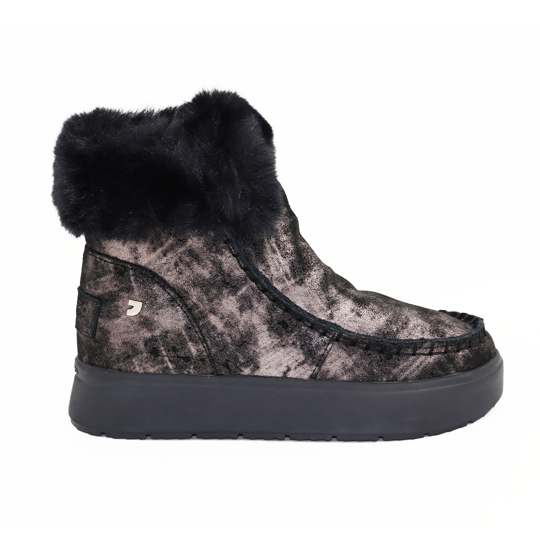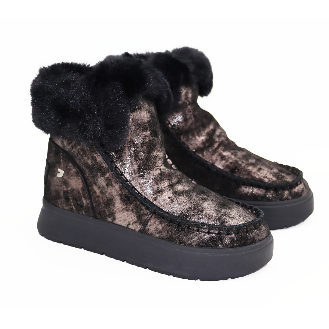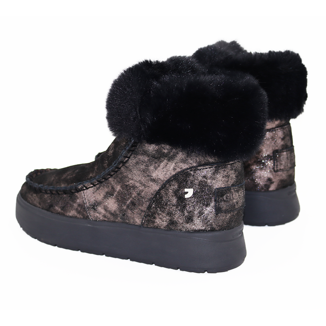 Gioseppo crne patofne sa krznom, na crnom đonu, sa srebrnim sjajem na materijalu.