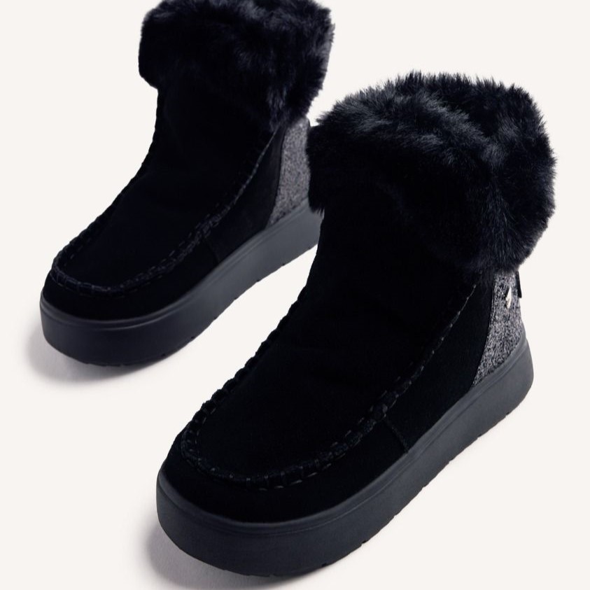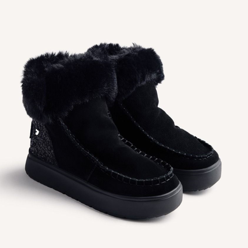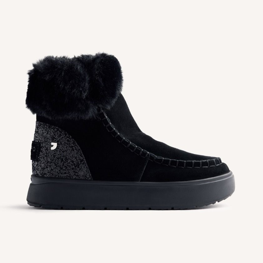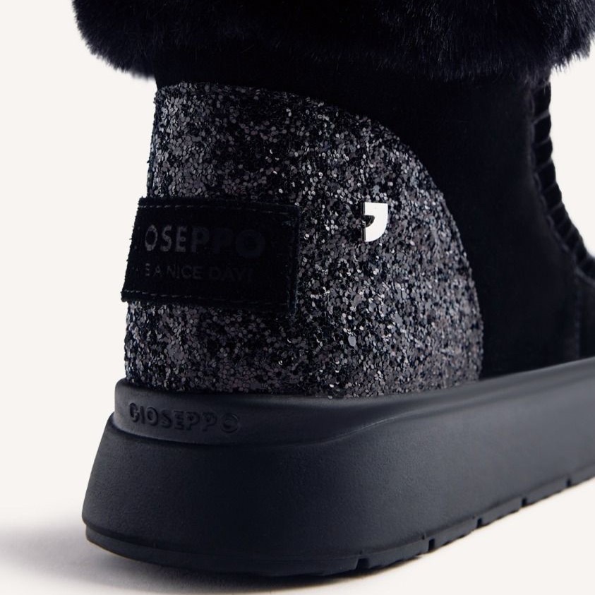 Gioseppo crne kožne gležnjače na crnom đonu, sa krznom i crnim štrasom na peti