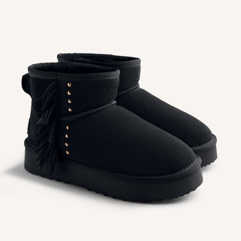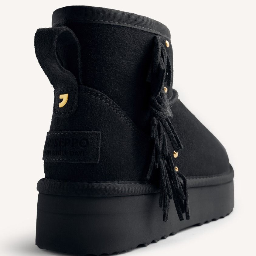 Gioseppo kožne crne gležnjače na platformi sa zlatnim nitnama i resama sa strane