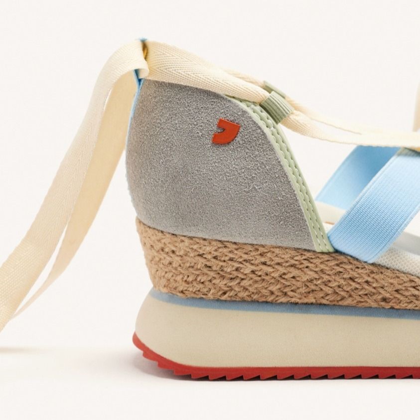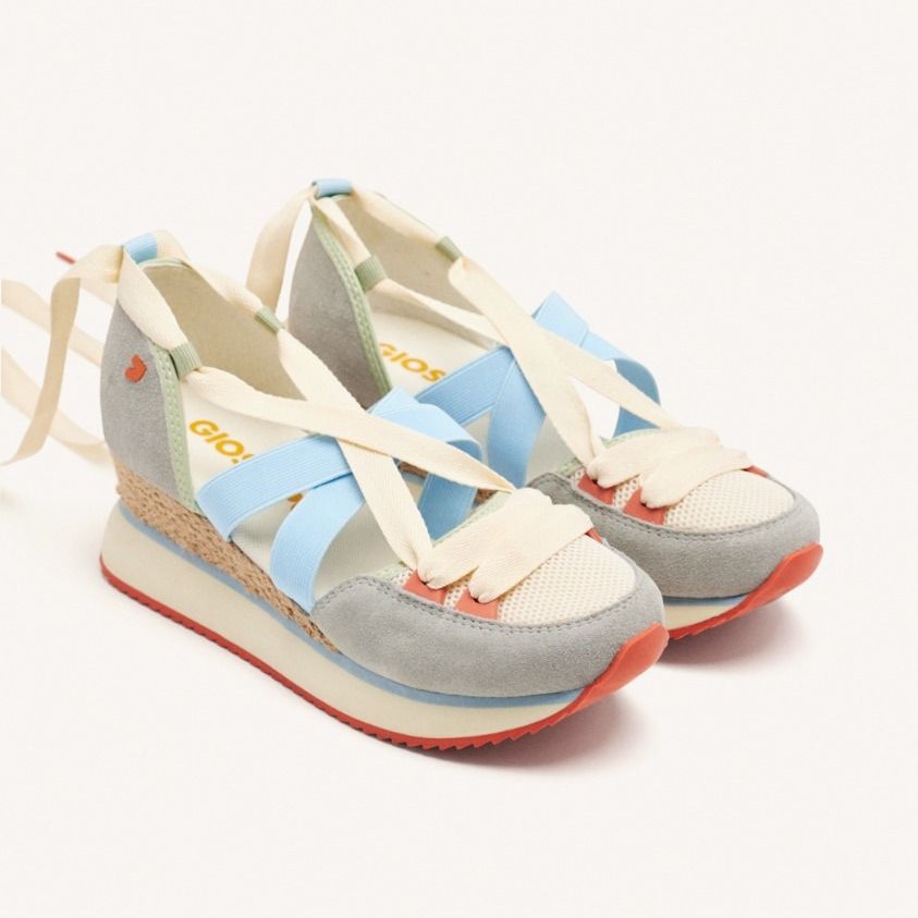 Gioseppo sport patike/sandale na izdignutom đonu sa plutom u kombinaciji taupe, bež i plave boje sa pertlama na vezivanje oko gležnja