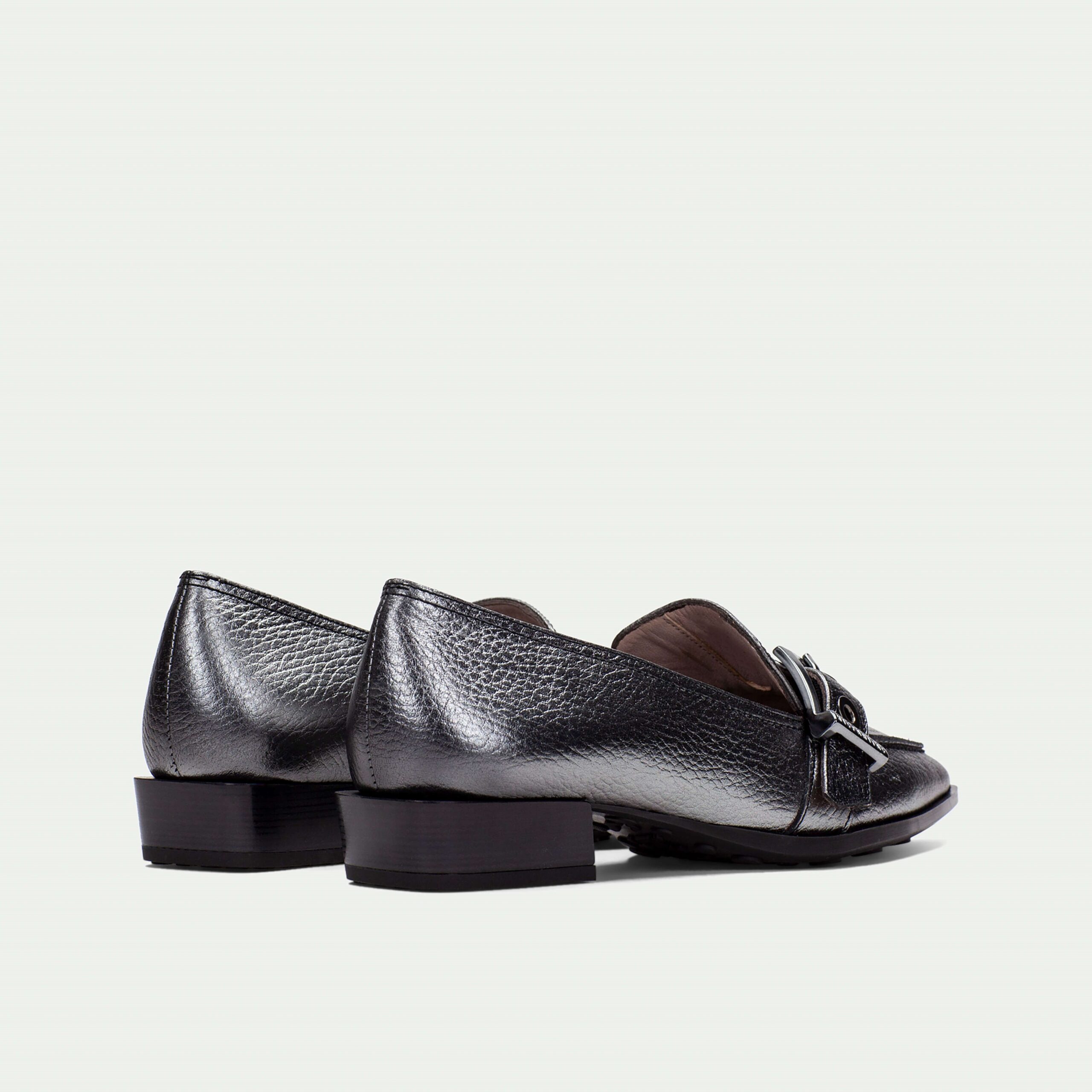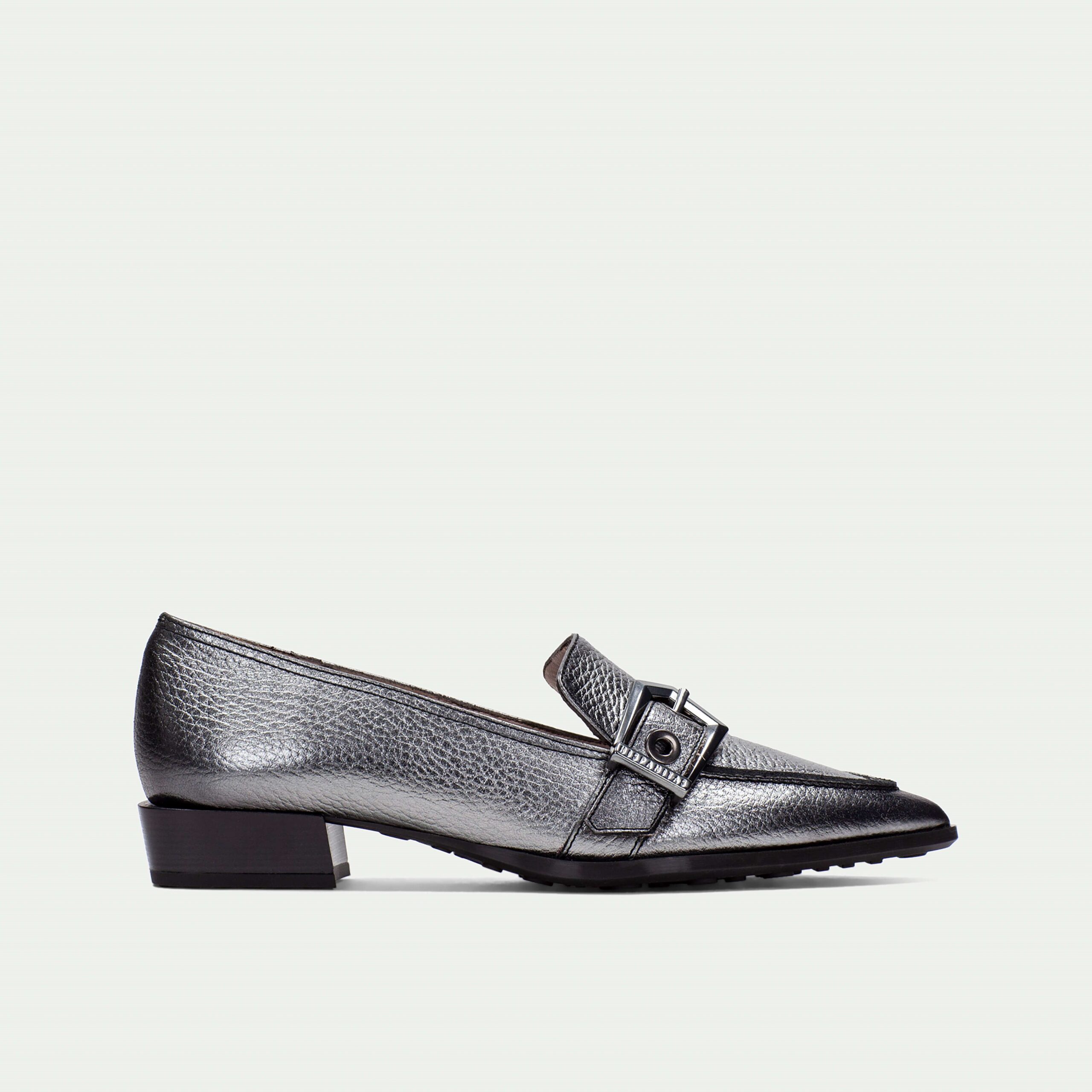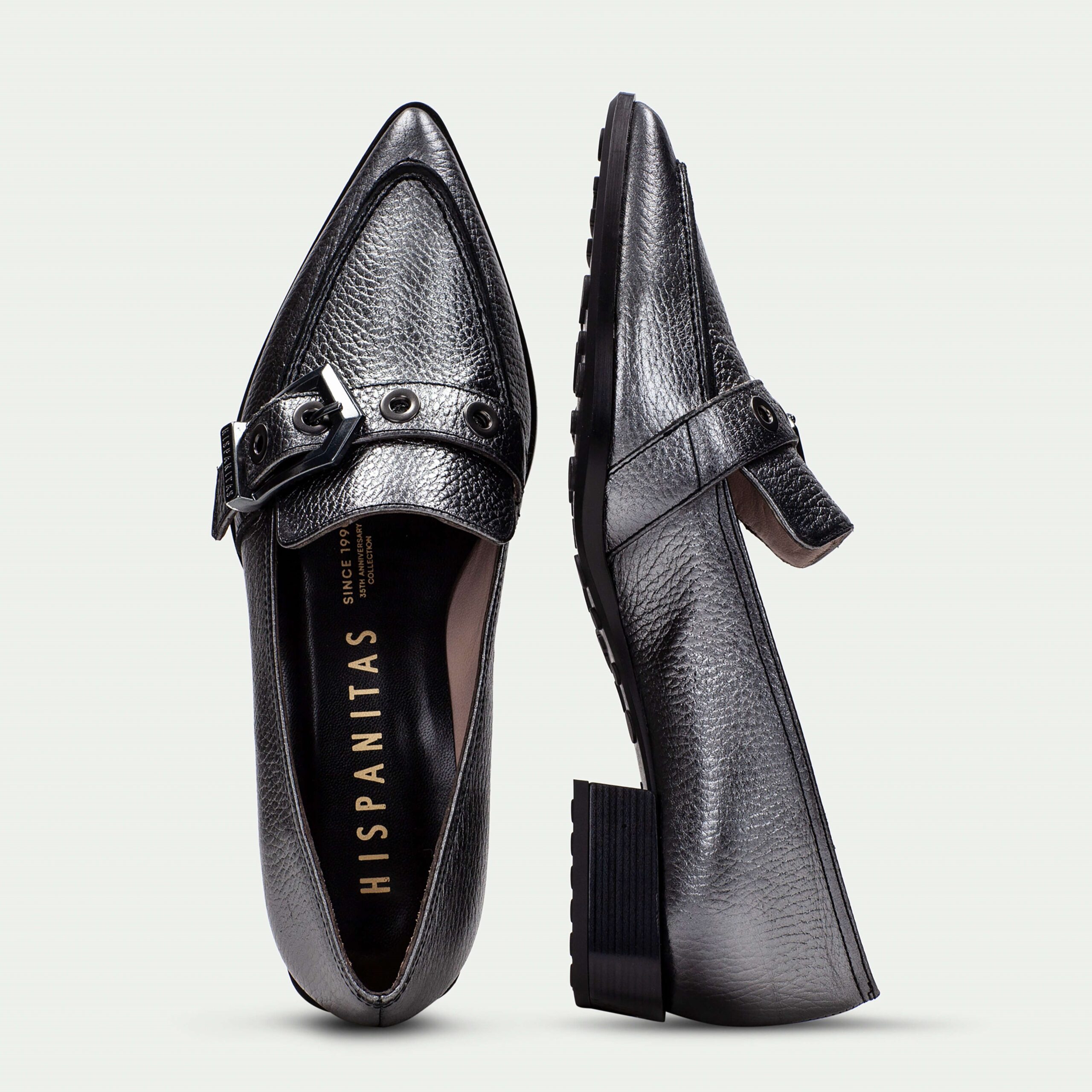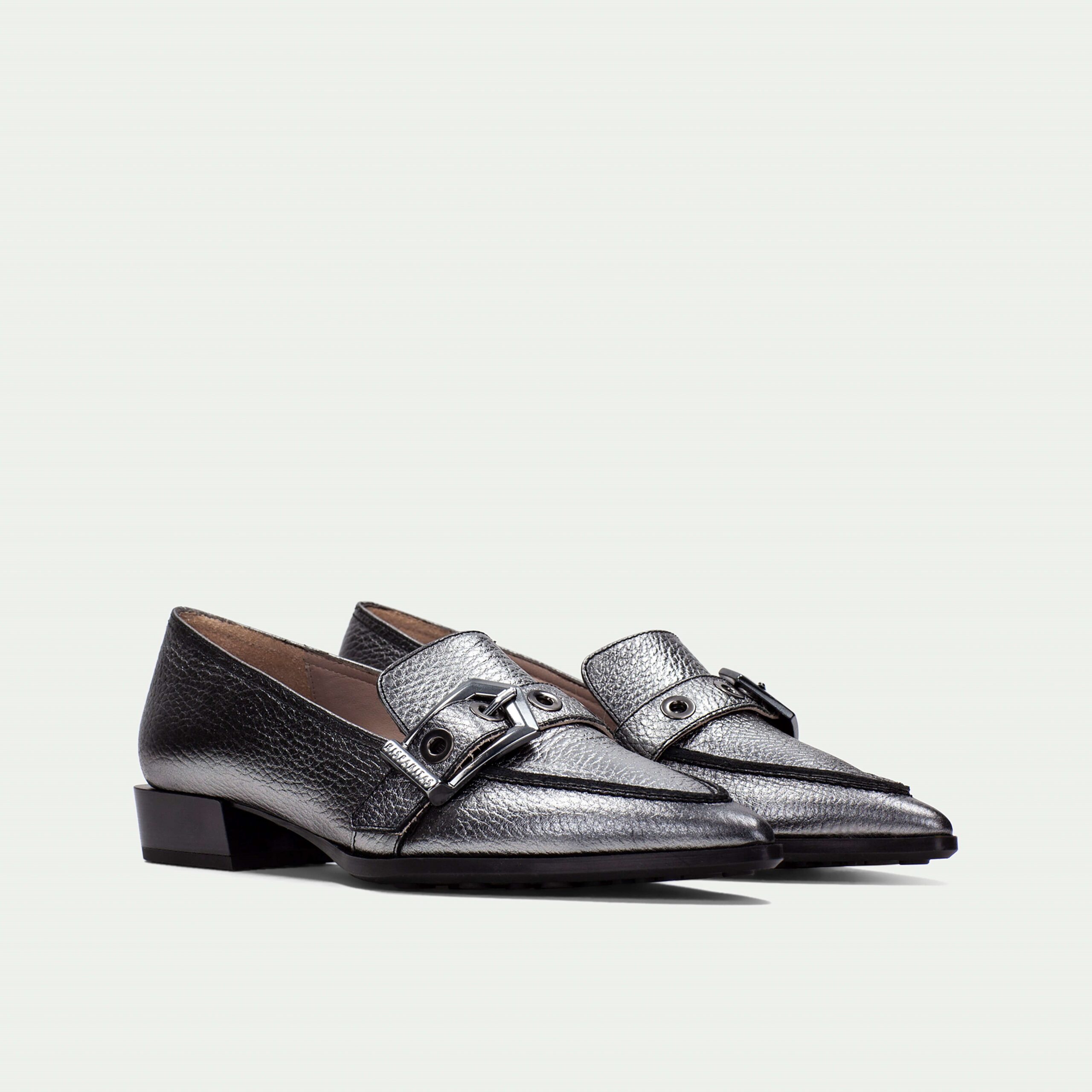 Hispanitas kožne tamno srebrne cipele na špic sa mat srebrnom šnalom na špicu