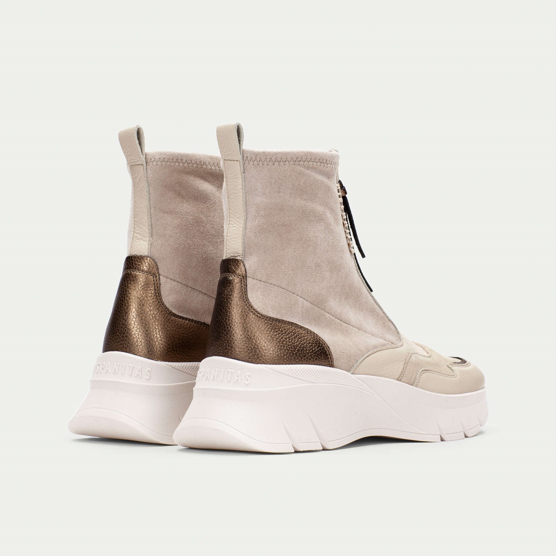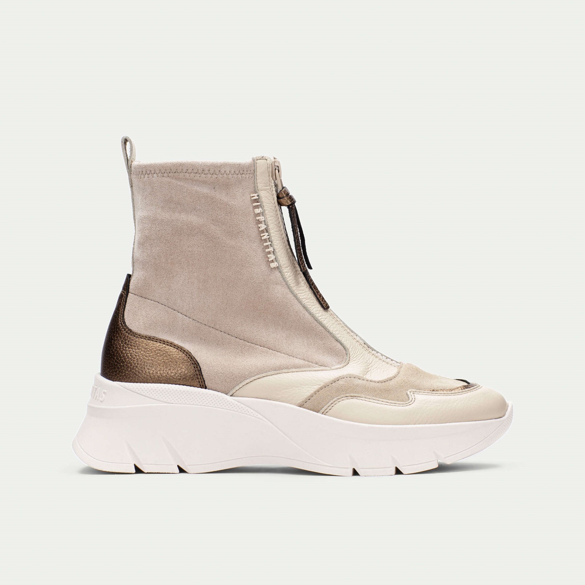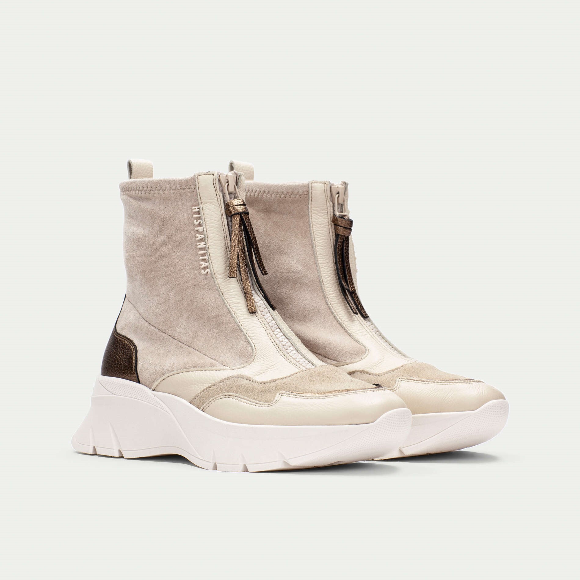 Hispanitas sport bež gležnjače na krem soft gel ulošku sa kožnim krem i kožnim bakarnim delovima, sa kopčanjem napred.