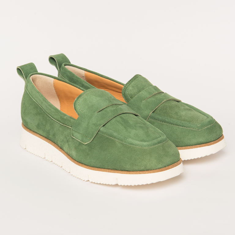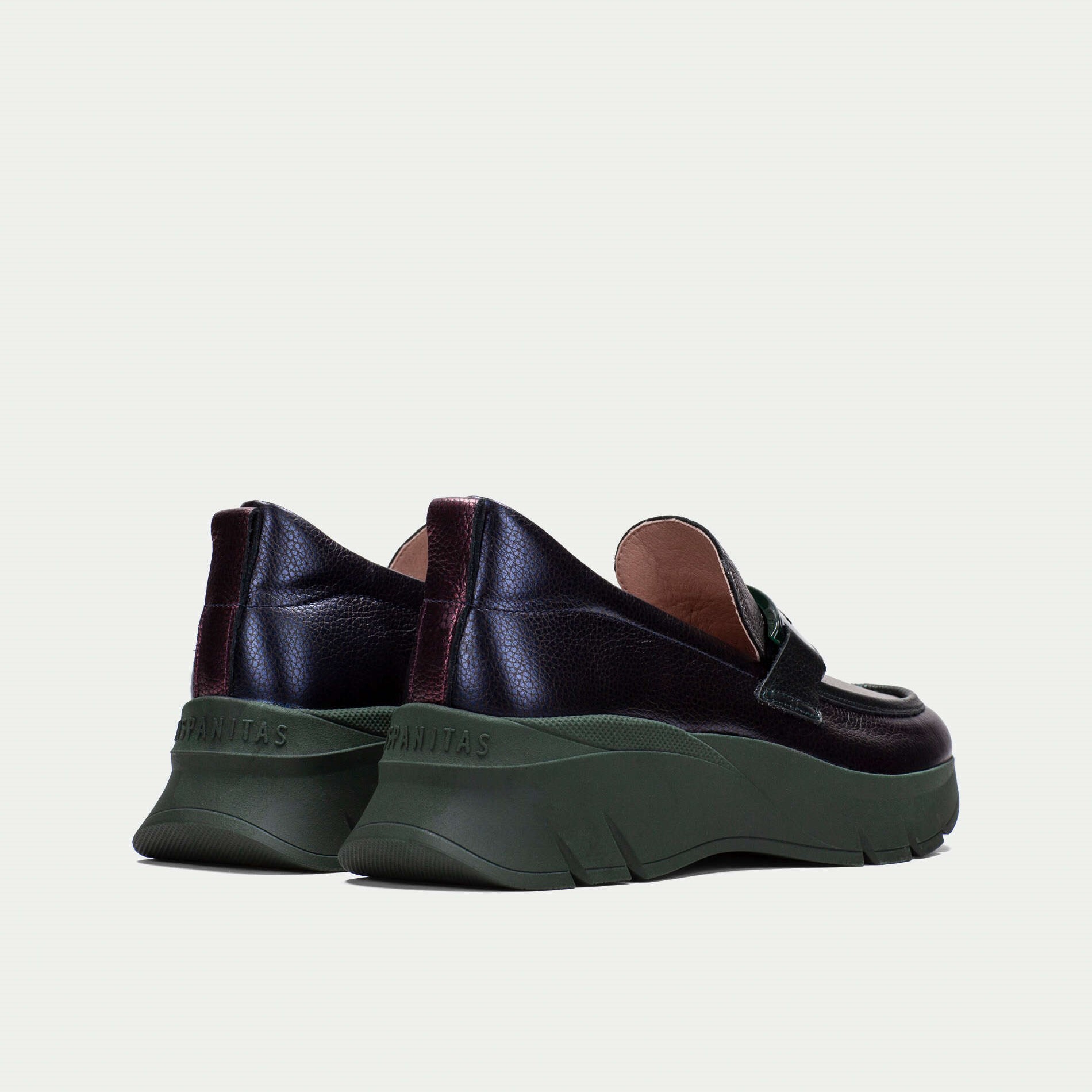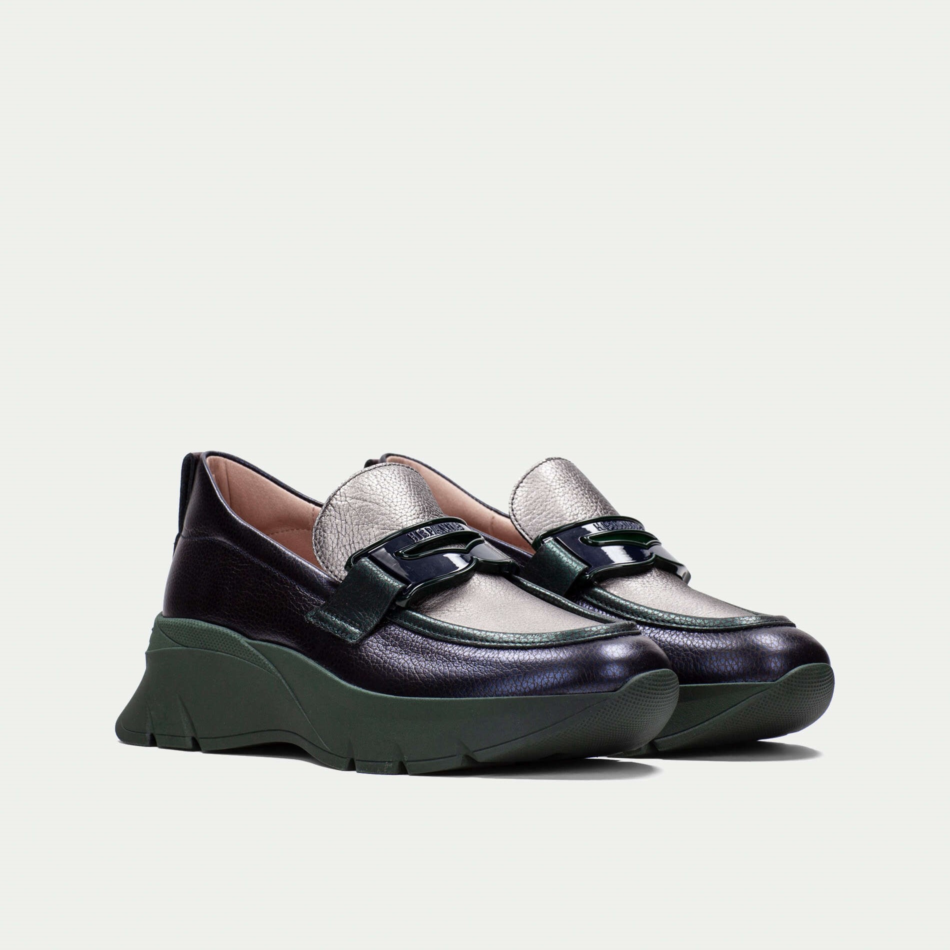 Hispanitas kožne sport mokasine na udobnom soft gel đonu u kombinaciji teget, zelene i plomo boje sa teget šnalom na risu.