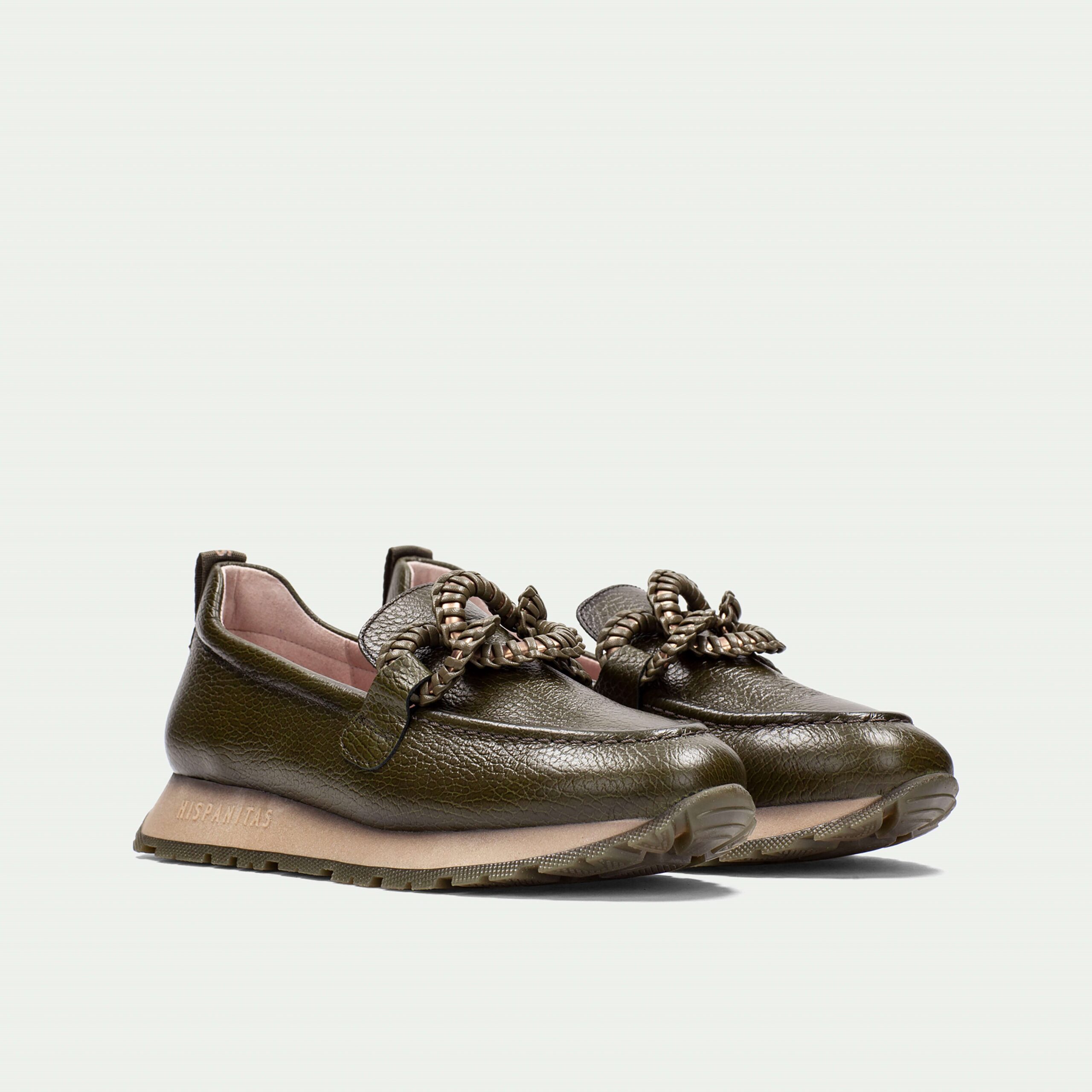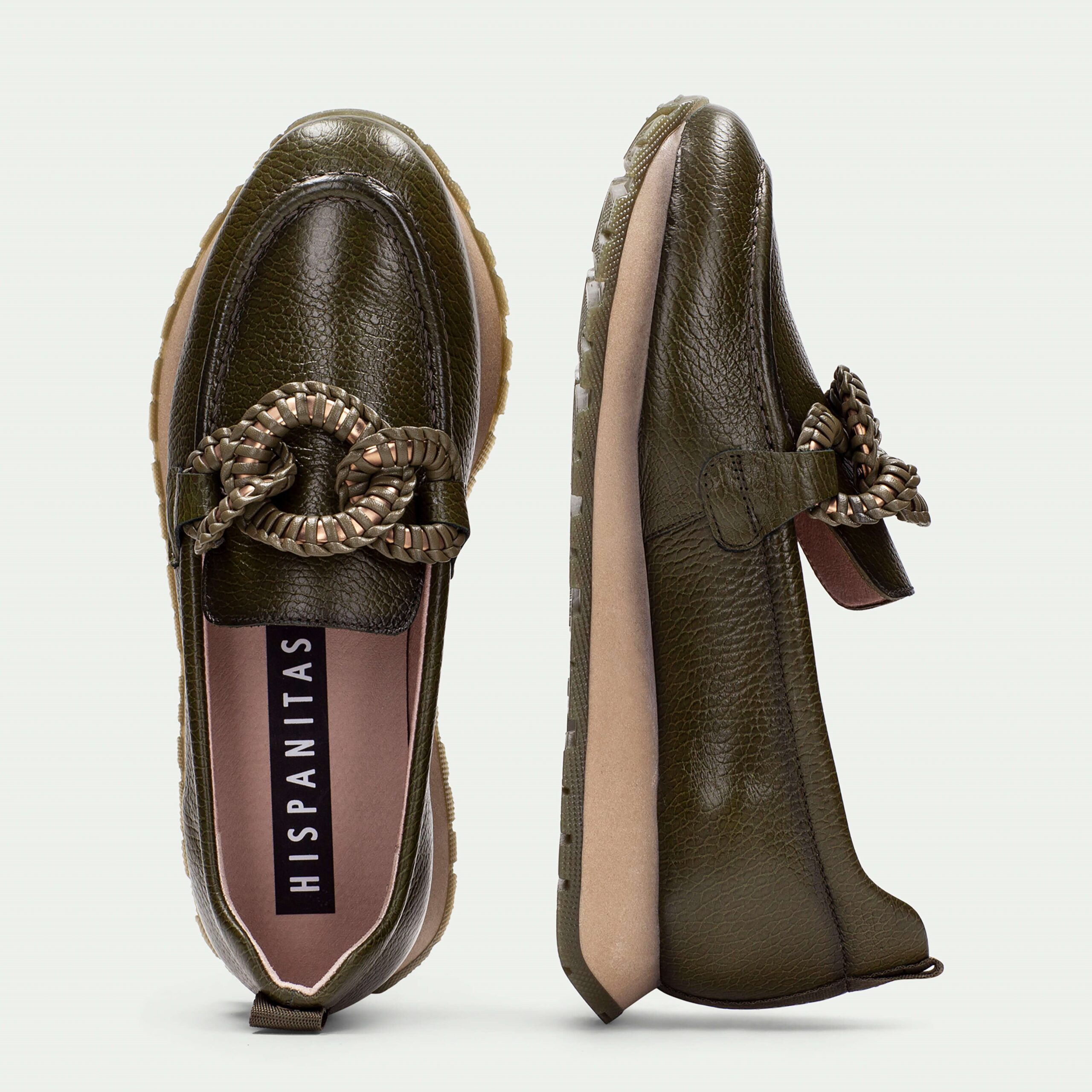 Hispanitas kožne zelene mokasine sa dekorativnom šnalom