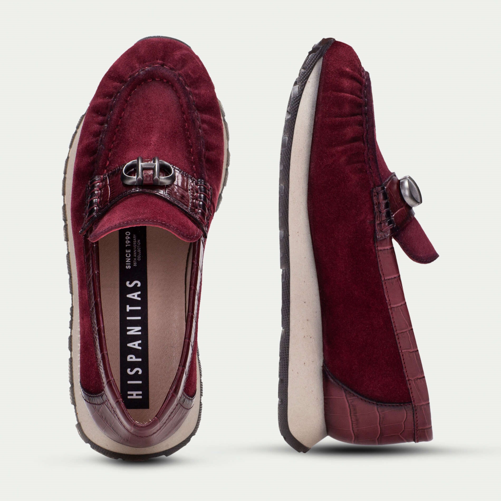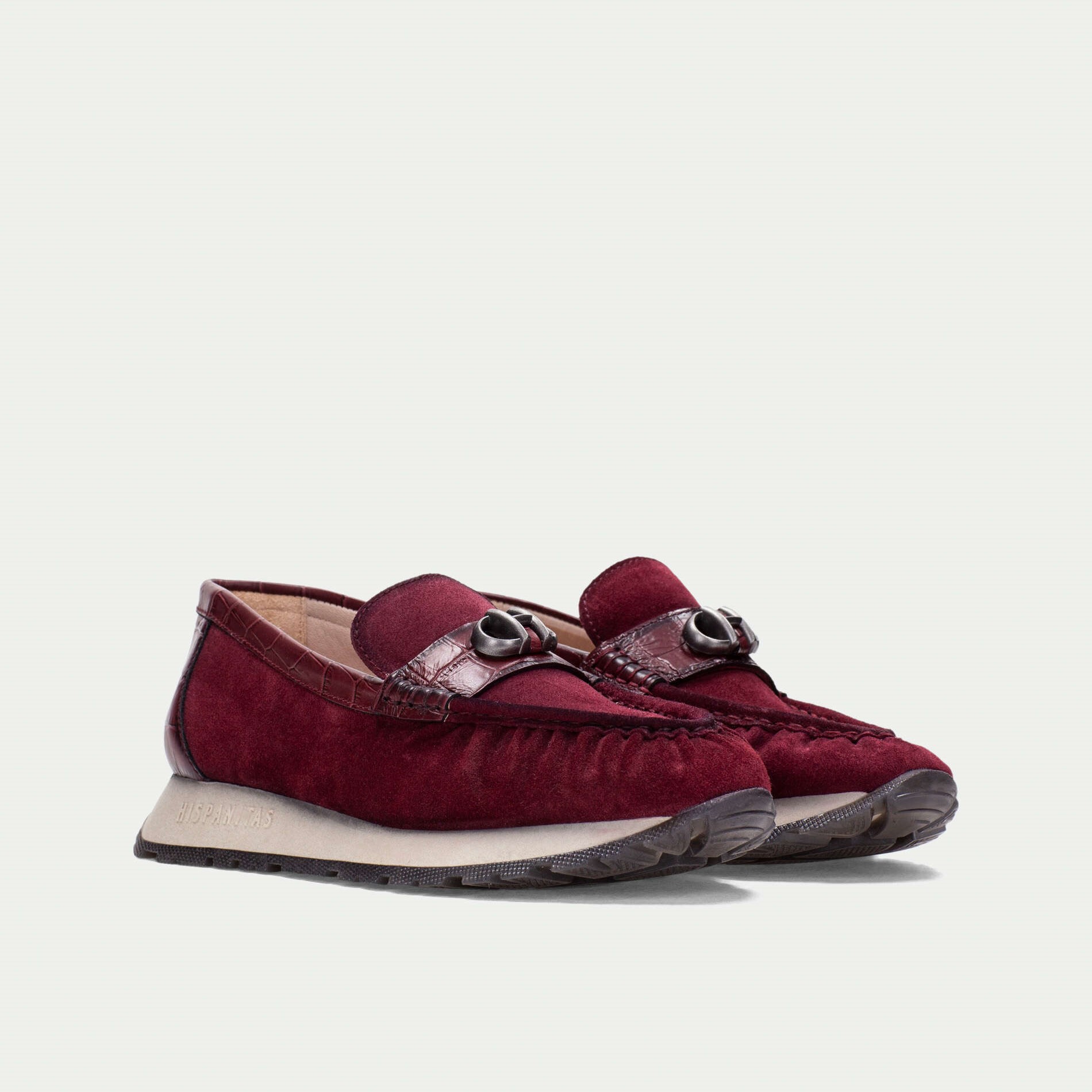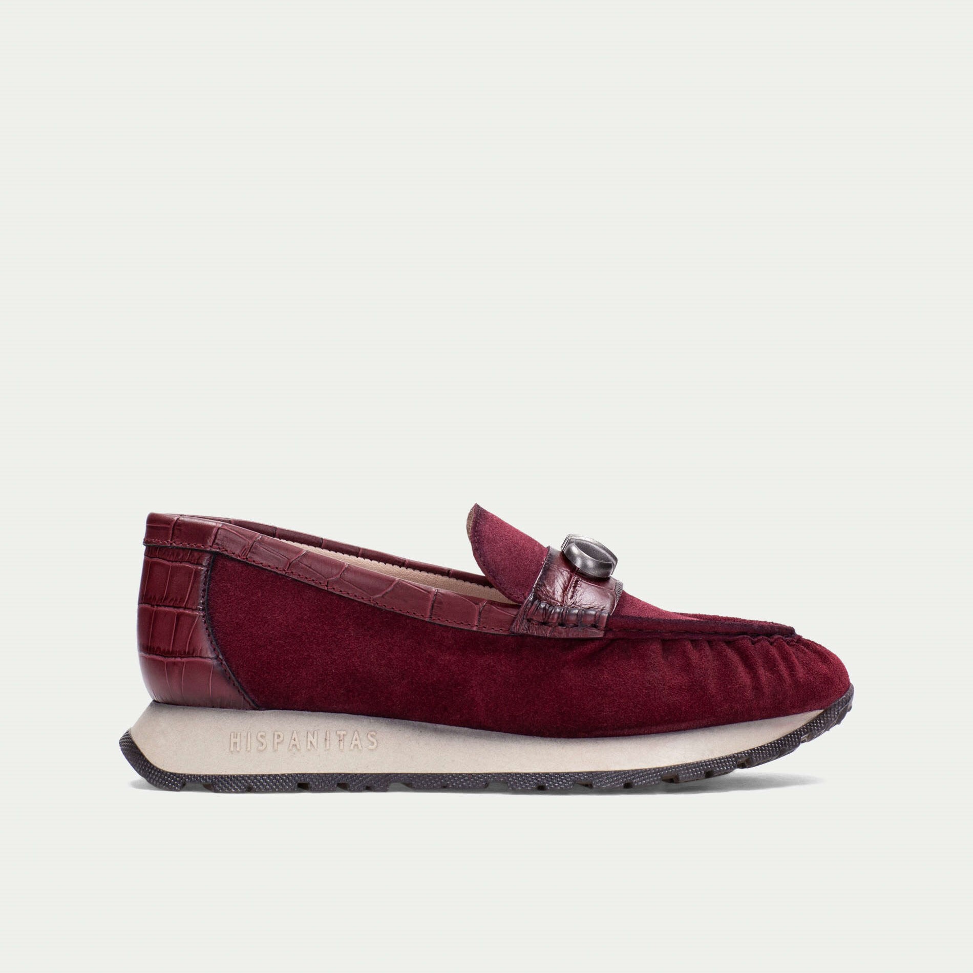 Hispanitas kožne mokasine u kombinaciji velur i kroko bordo kože sa diskretnom mat zlatnom Hispanitas šnalom