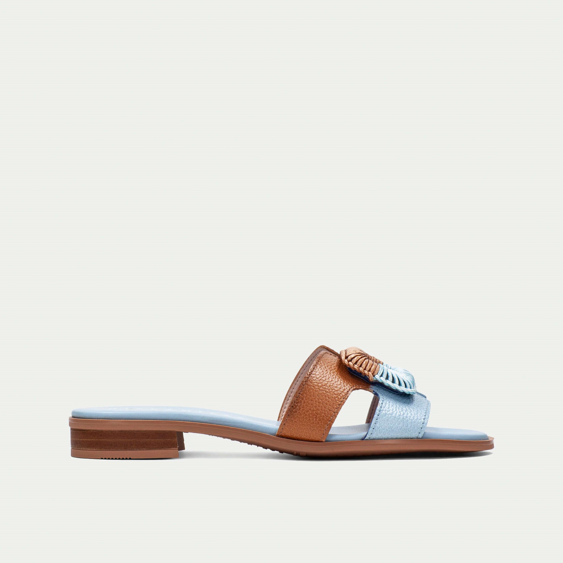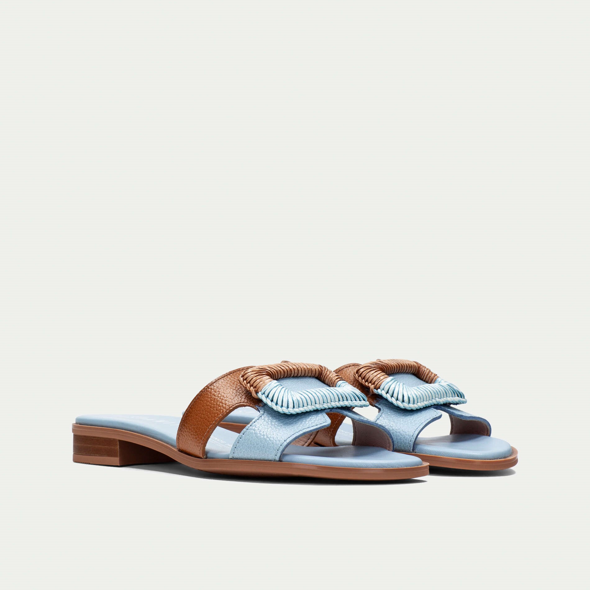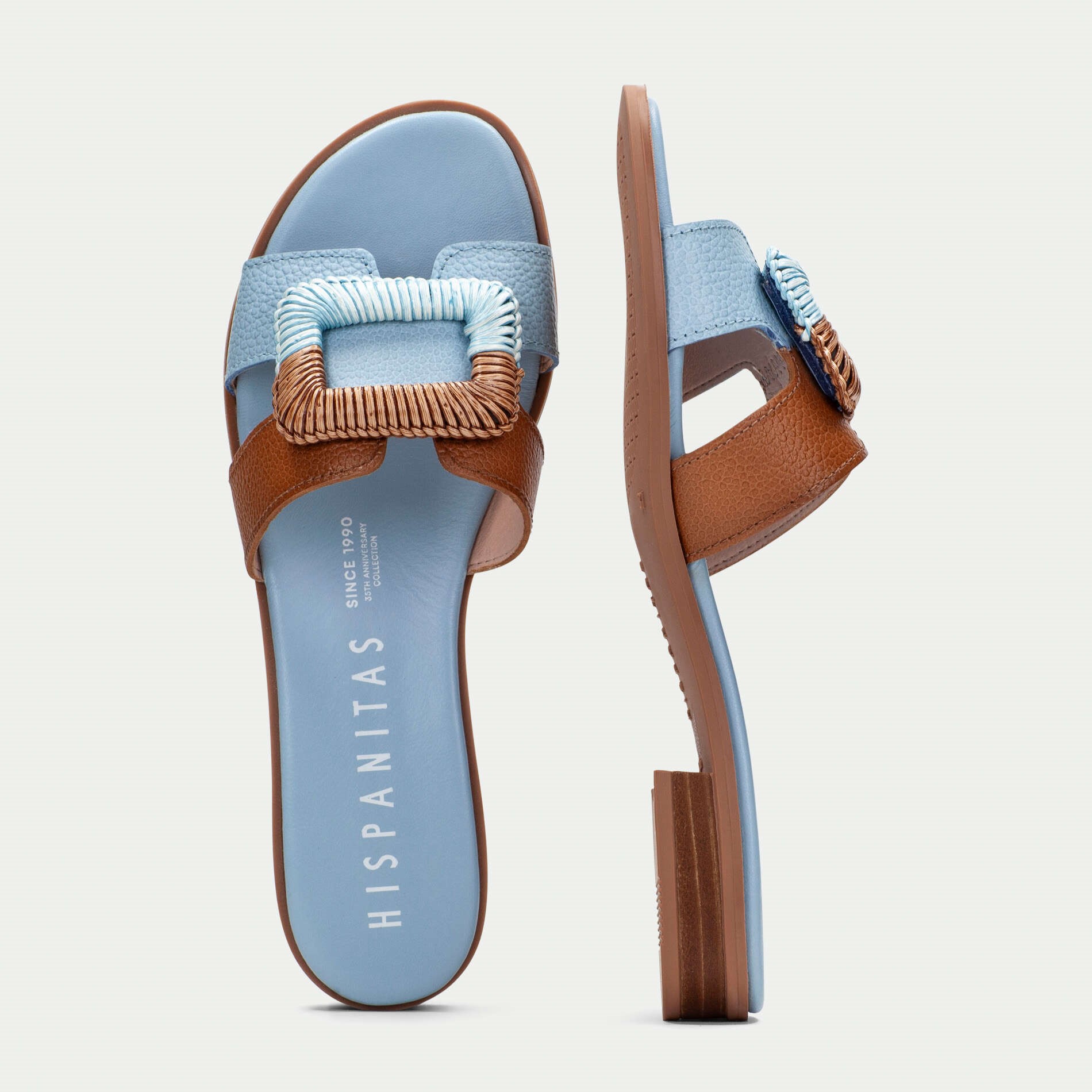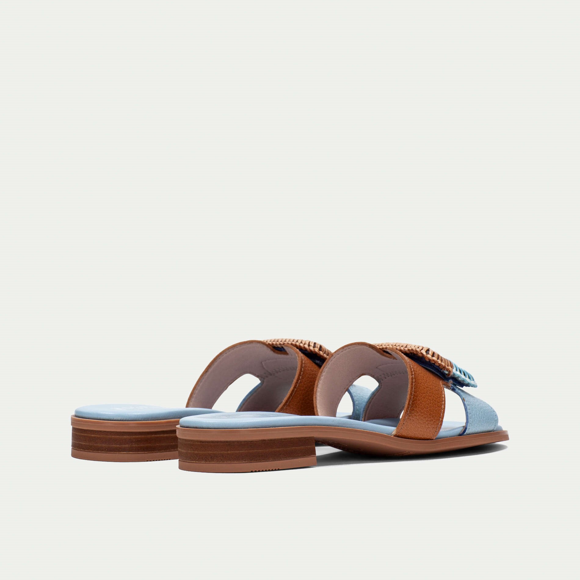 Hispanitas kožne papuče u kombinaciji svetlo plave i braon boje sa končanom šnalom