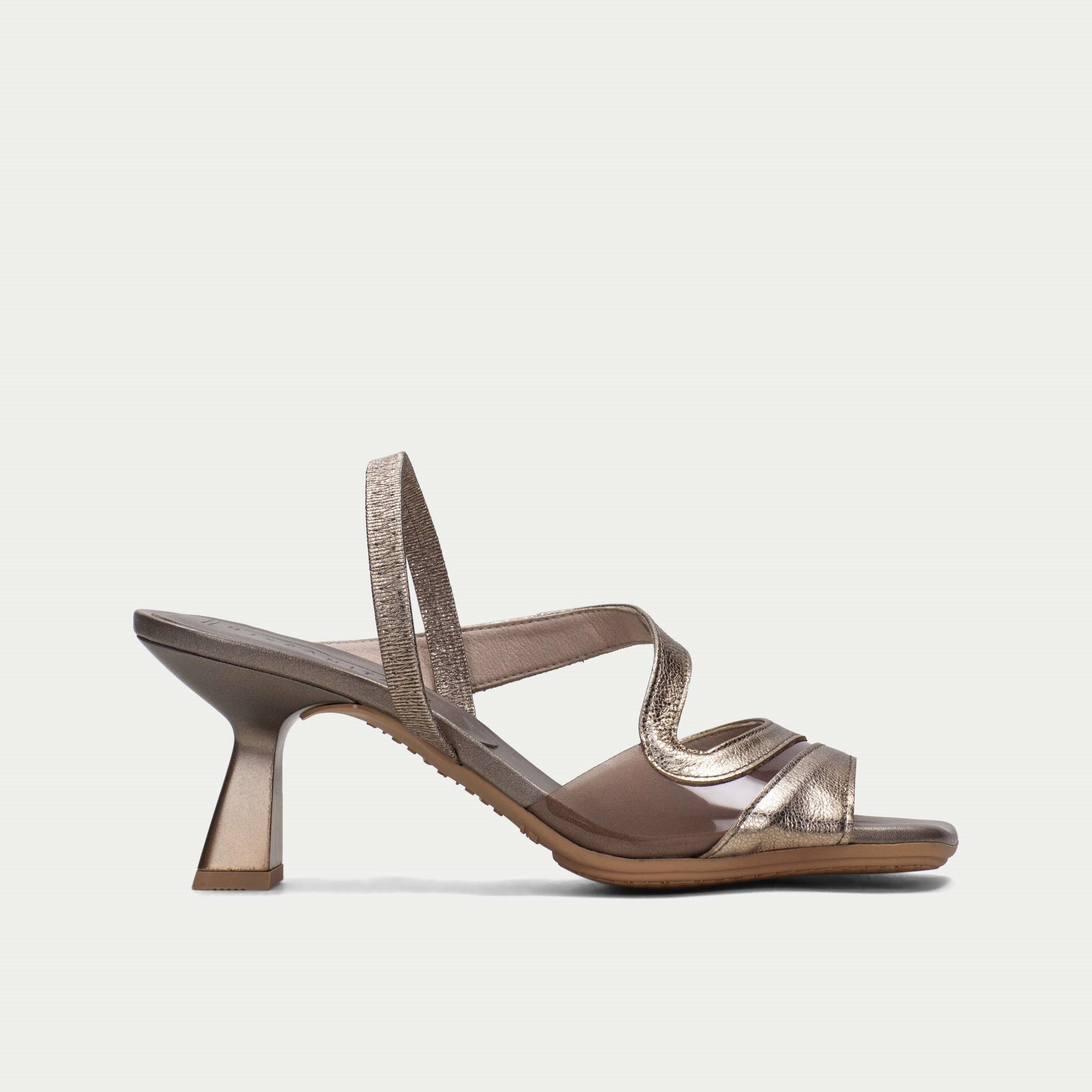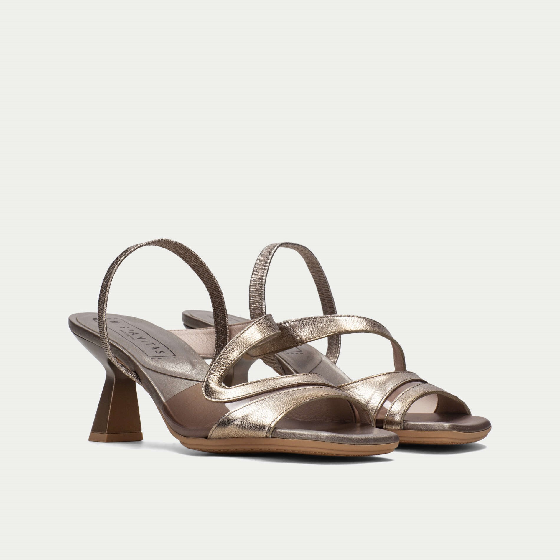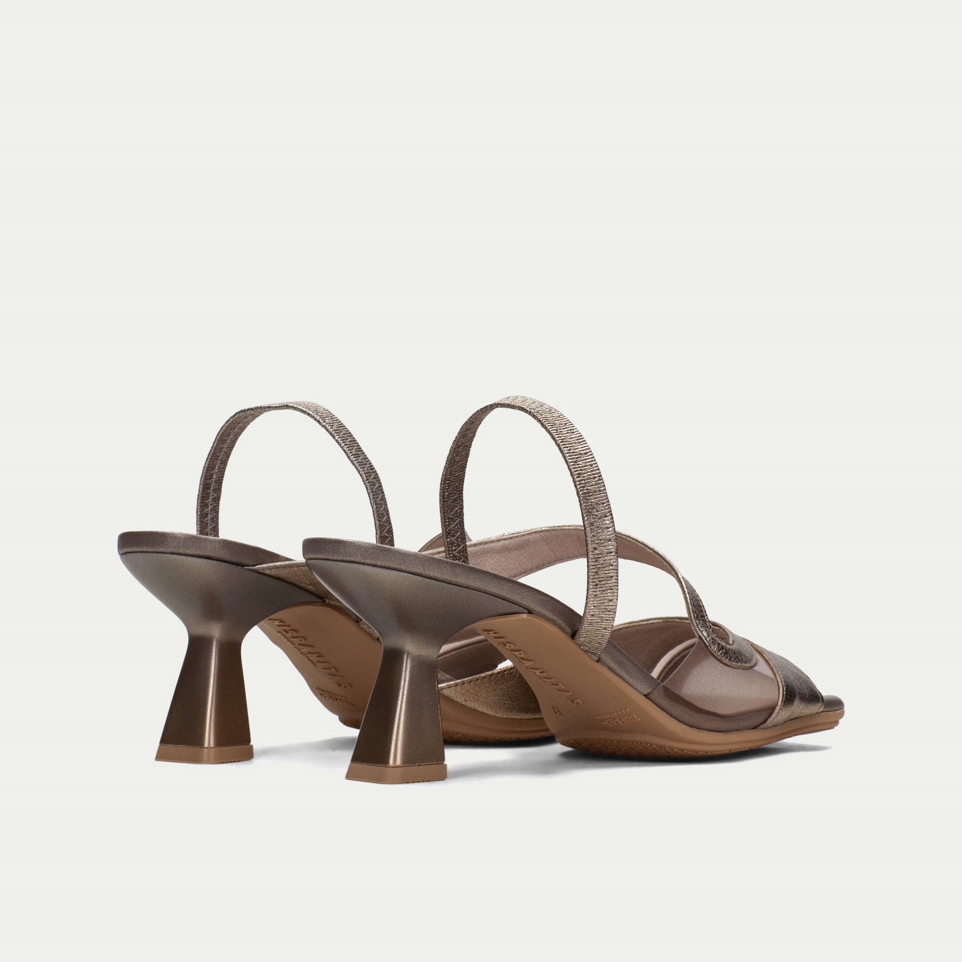 Hispanitas kožne antracit sandale na potpetici od 7 cm sa lastišem na peti i silikonskim delom preko prstiju.