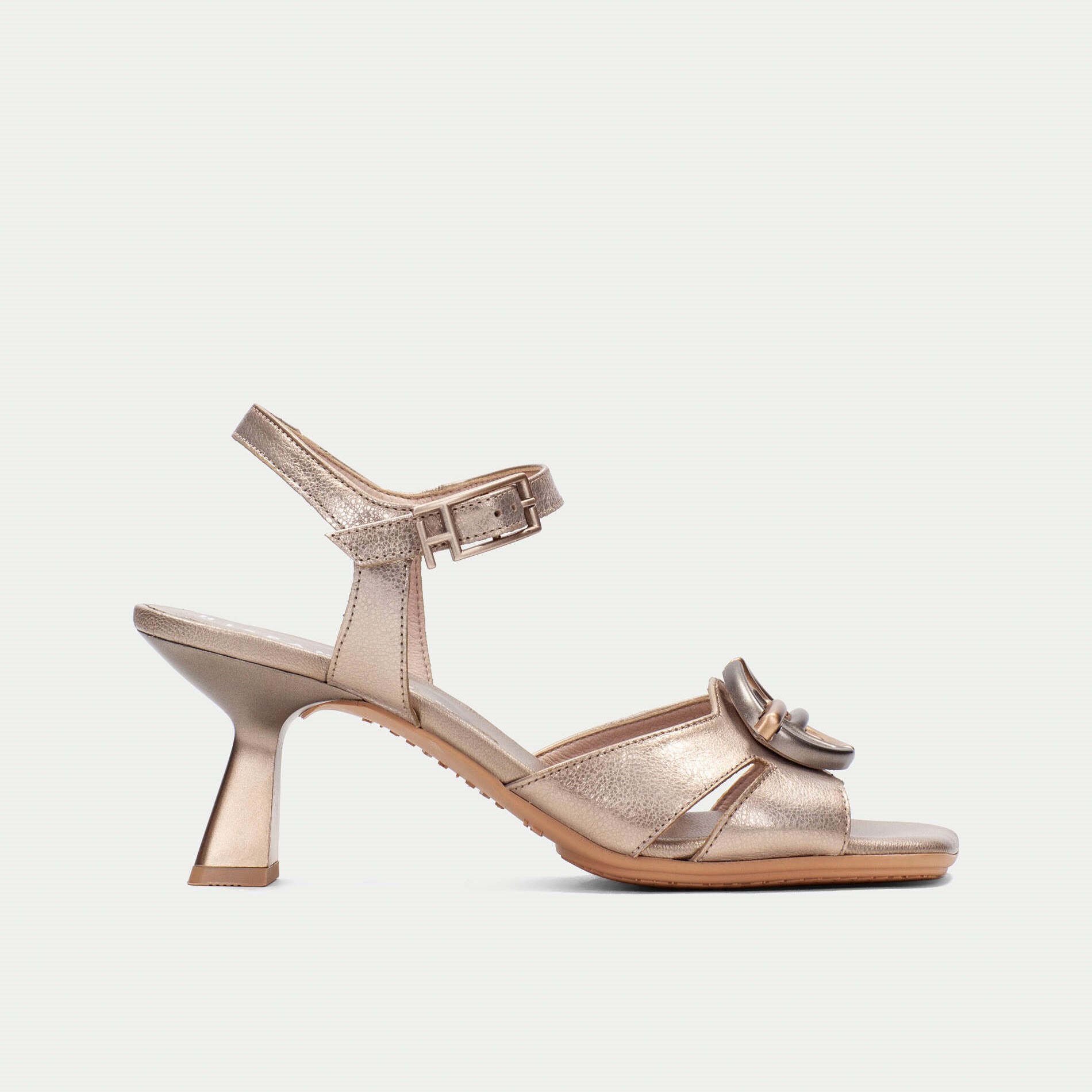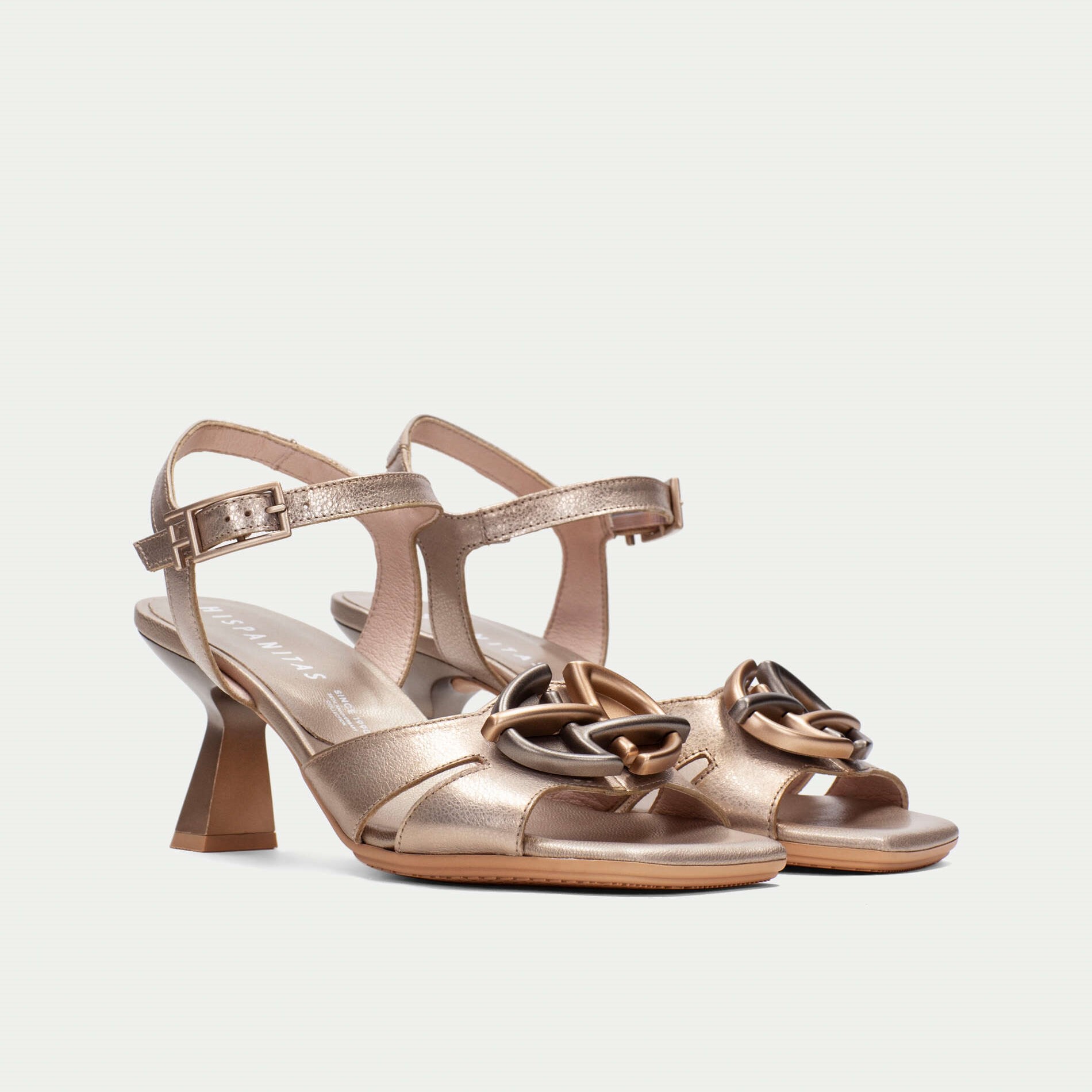 Hispanitas kožne sandale na potpetici od 7 cm u zlatnoj boji sa dekorativnom šnalom