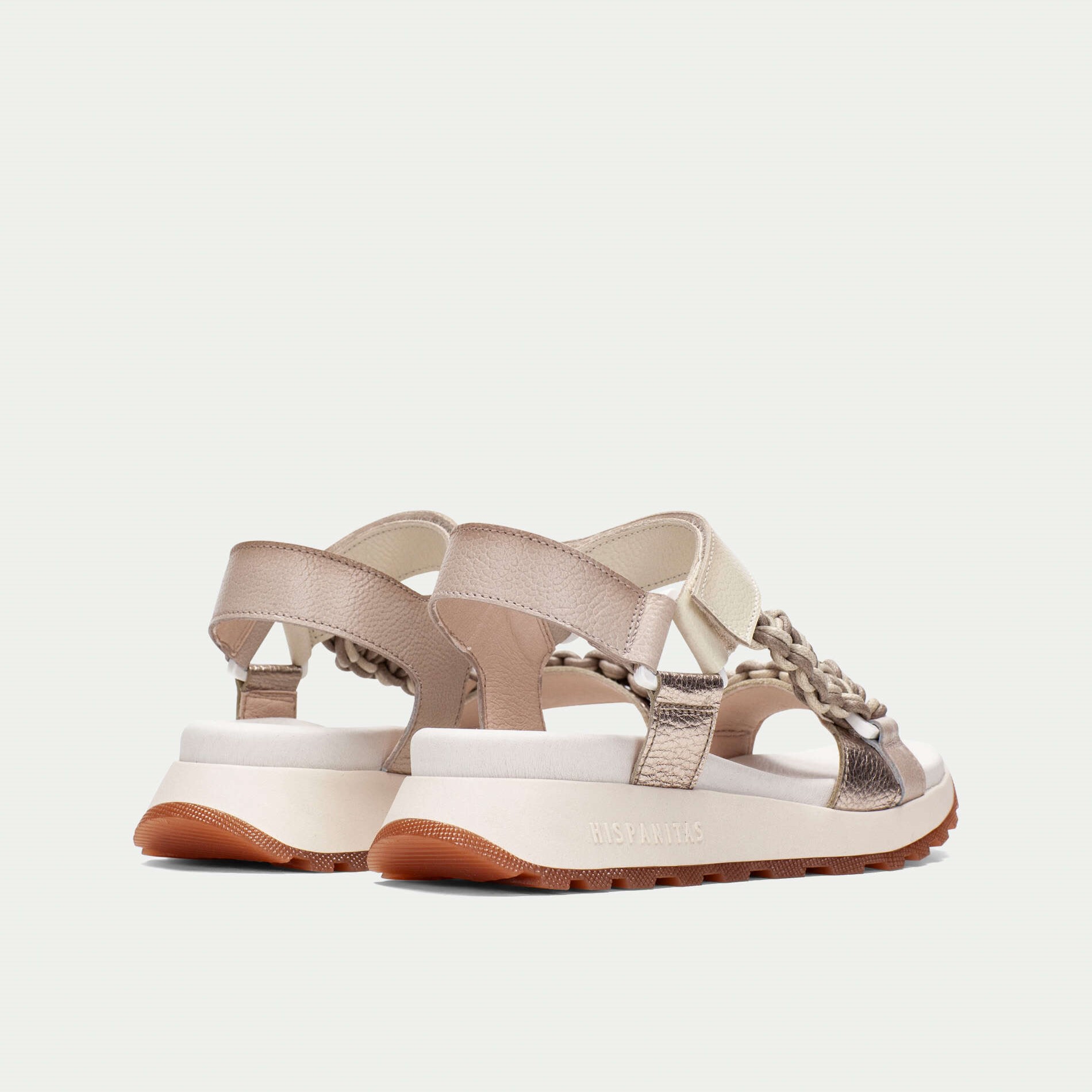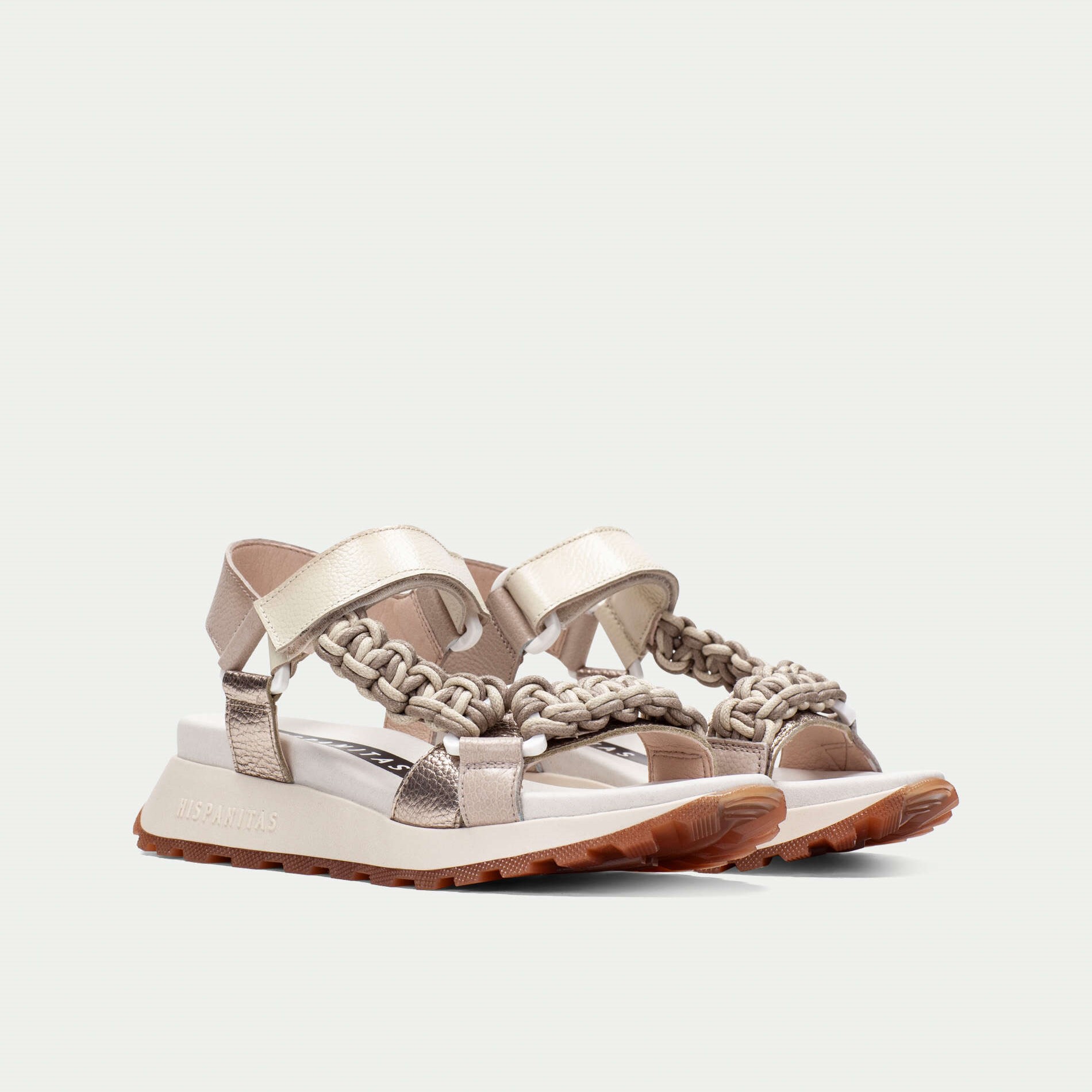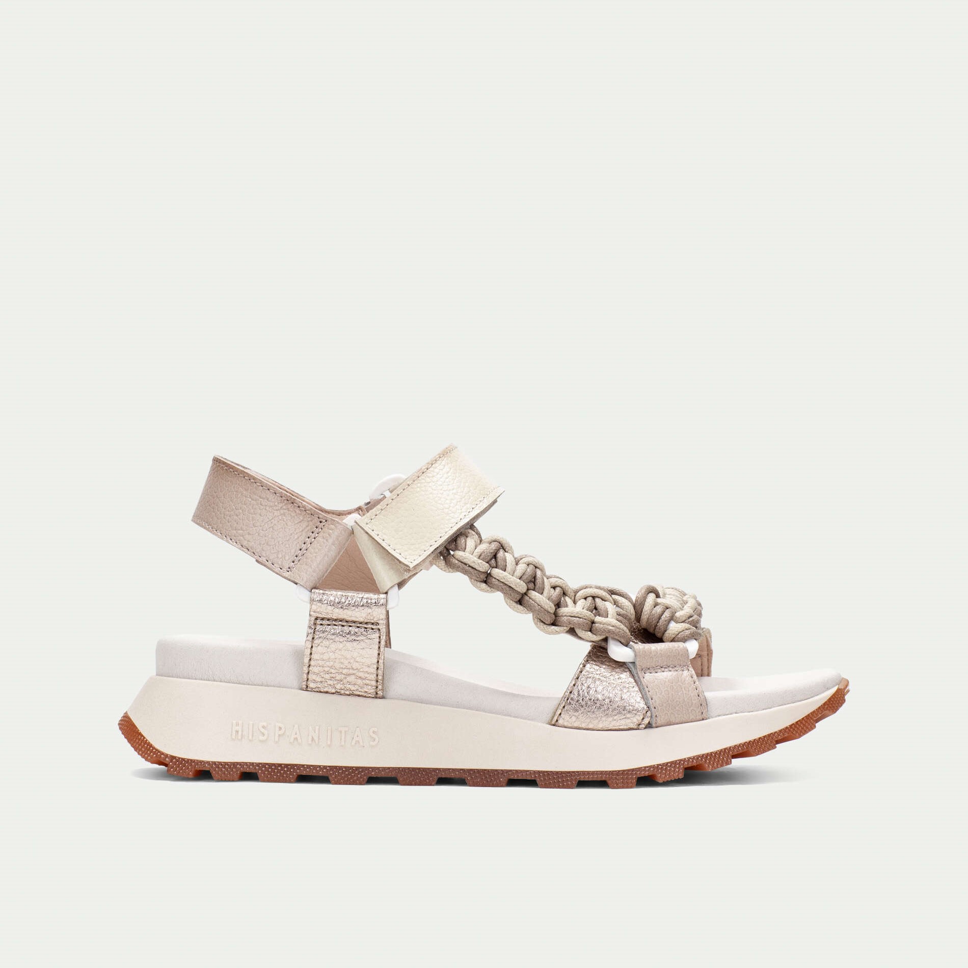 Hispanitas letnje sport sandale u kombinaciji bež i zlatne boje sa bež končanom dekorativnom šnalom.