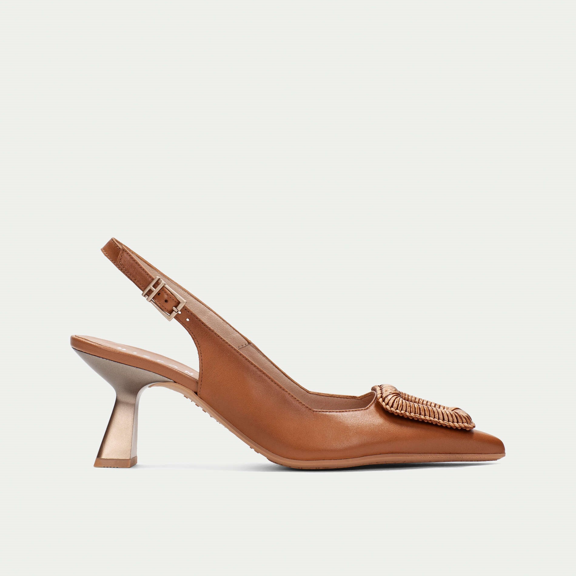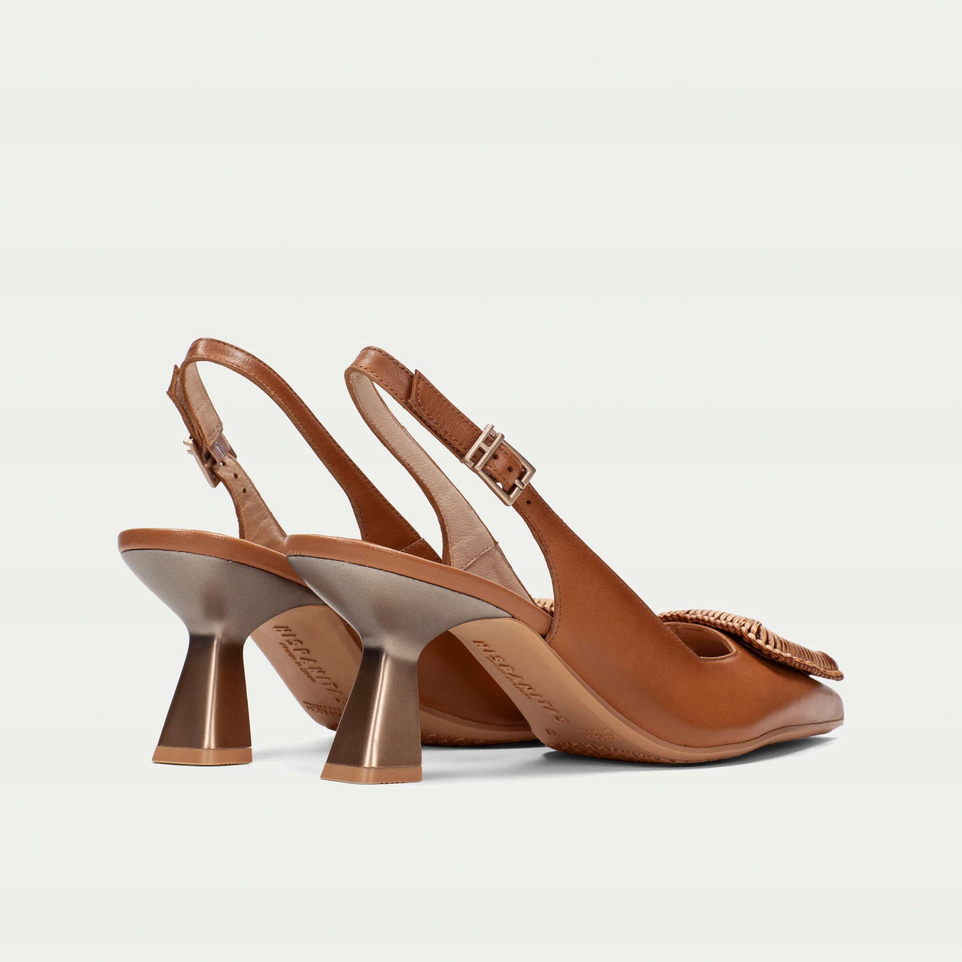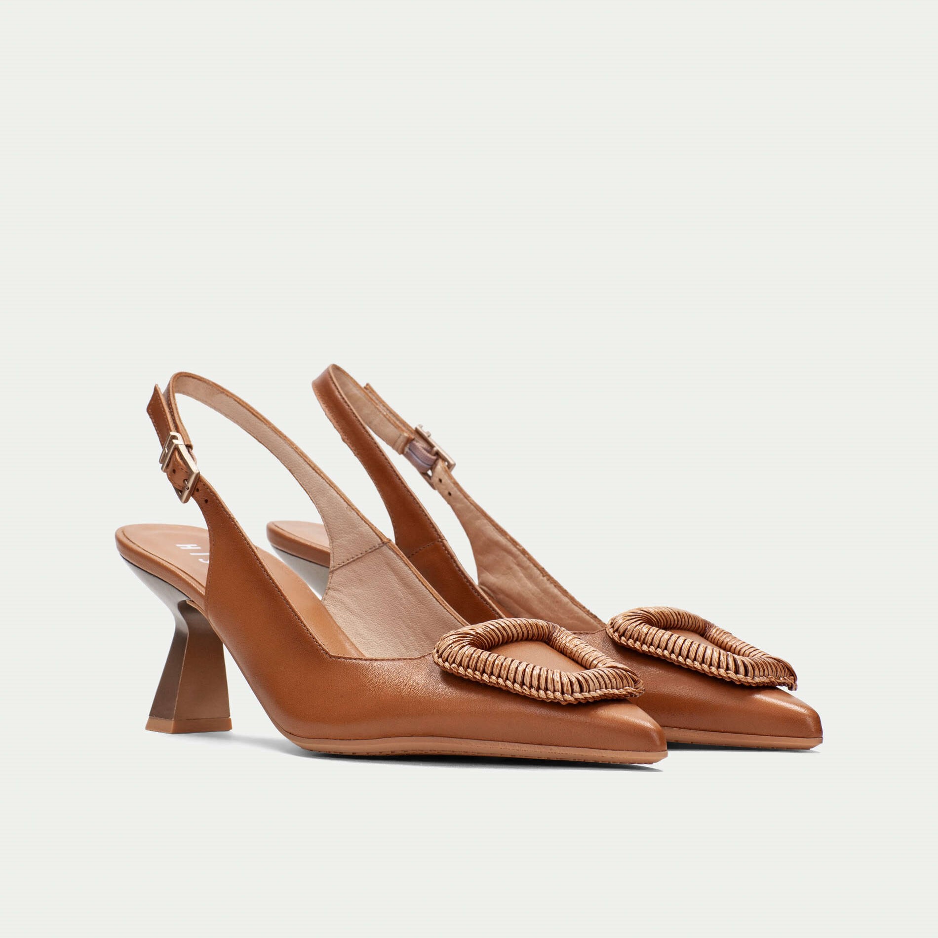 Hispanitas kožne kojo braon sandalete na potpetici od 7 cm sa kojom končanom dekorativnom šnalom na špicu.