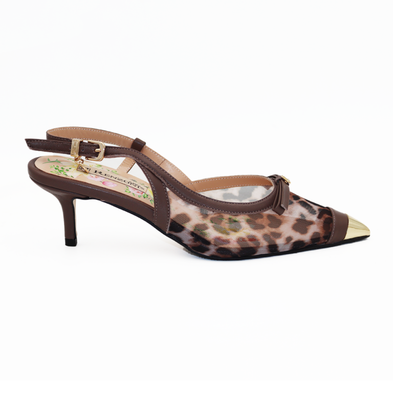 Hispanitas kožne sandalete u zmijskom printu na potpetici od 7 cm sa bež končanom dekorativnom šnalom na špicu.