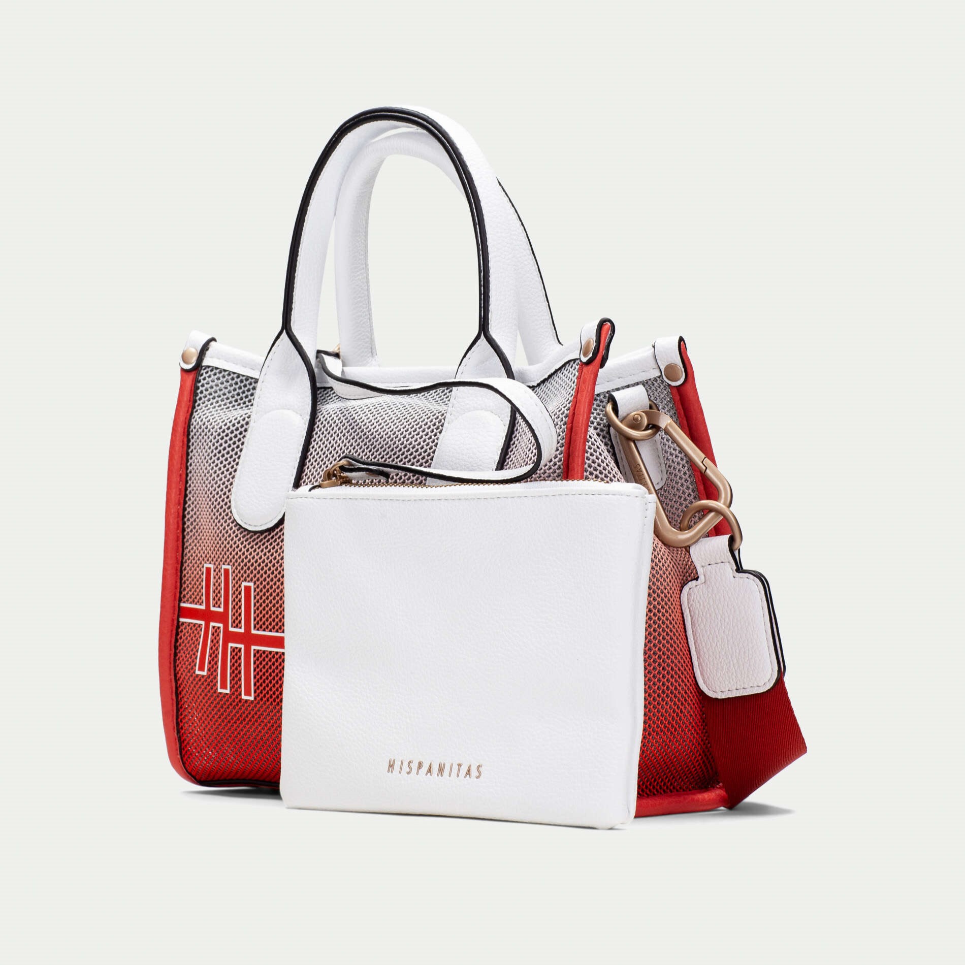 Hispanitas manja tekstilna torba u narandžastoj beloj boji sa logoom brenda napred.