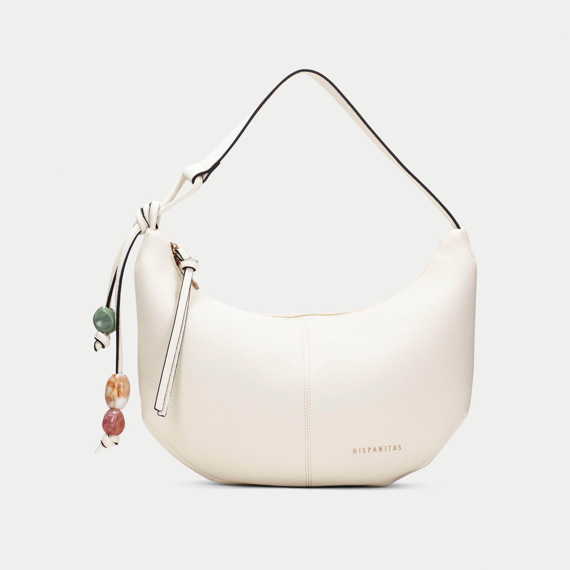 Hispanitas manja polu-kružna svetlo krem torba sa kićankom od raznobojnih kamenčića