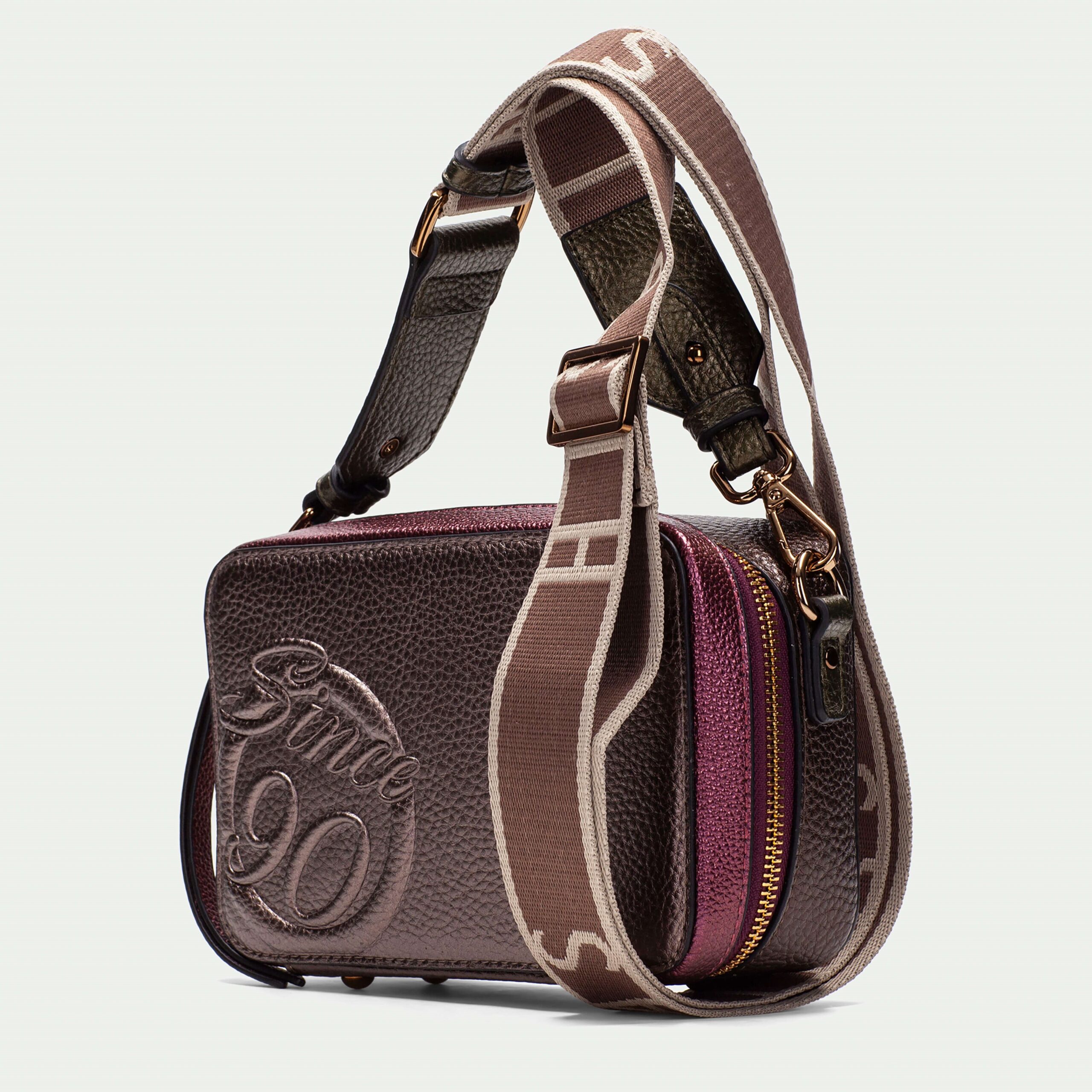 Hispanitas torbica u metalik sivoj boji sa bordo i braon detaljima sa tekstilnim kaišem
