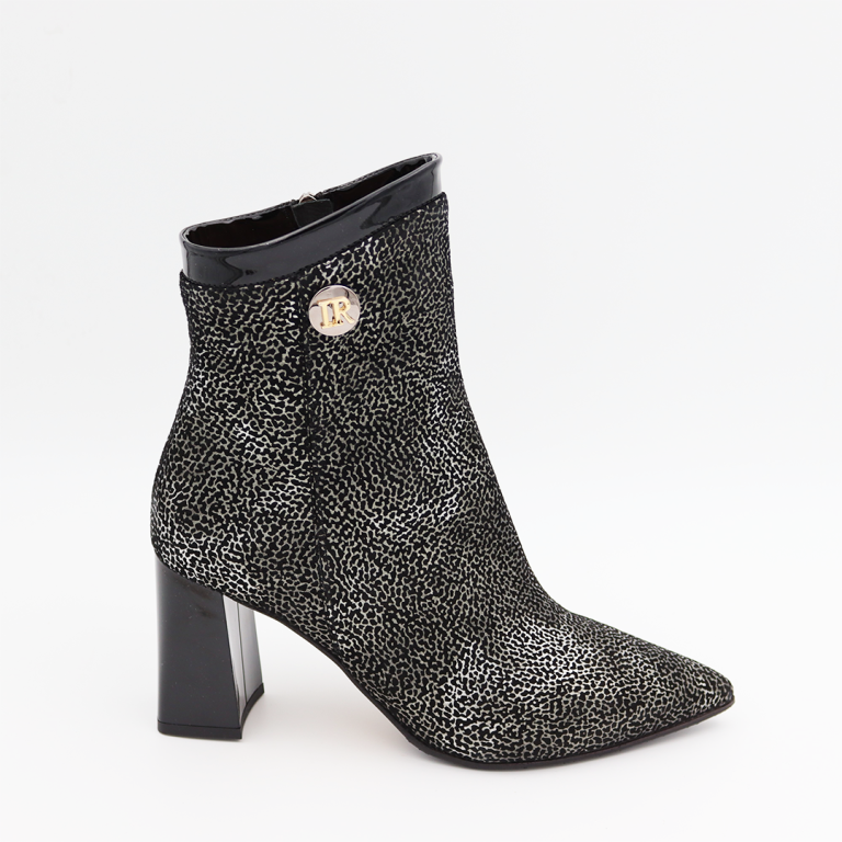 Ilasio Renzoni kožne italijanske gležnjače u zlatnoj sjajnoj koži na maxi crnom đonu, taupe velur kožom oko lista i zlatnom Renzoni šnalom, postavljene bež prirodnim montonom.