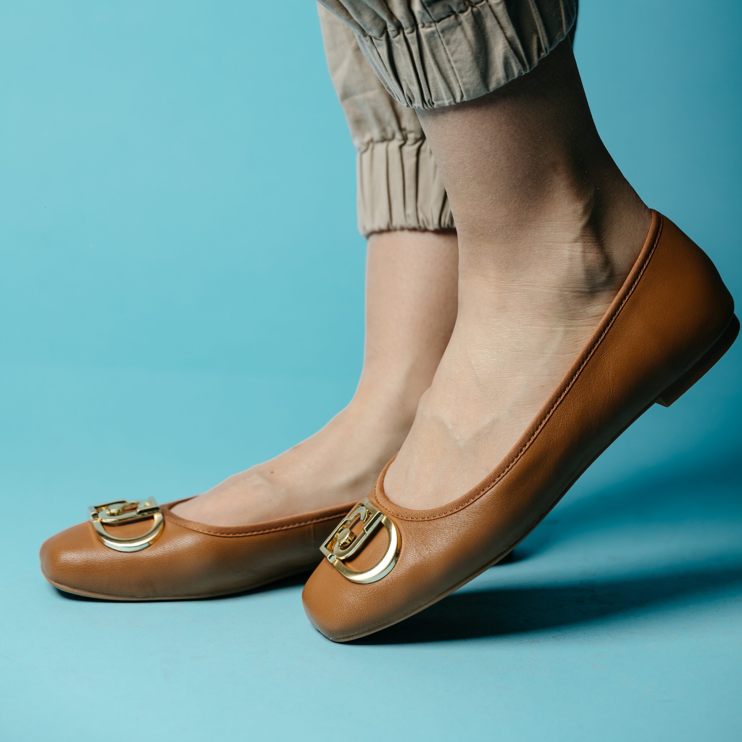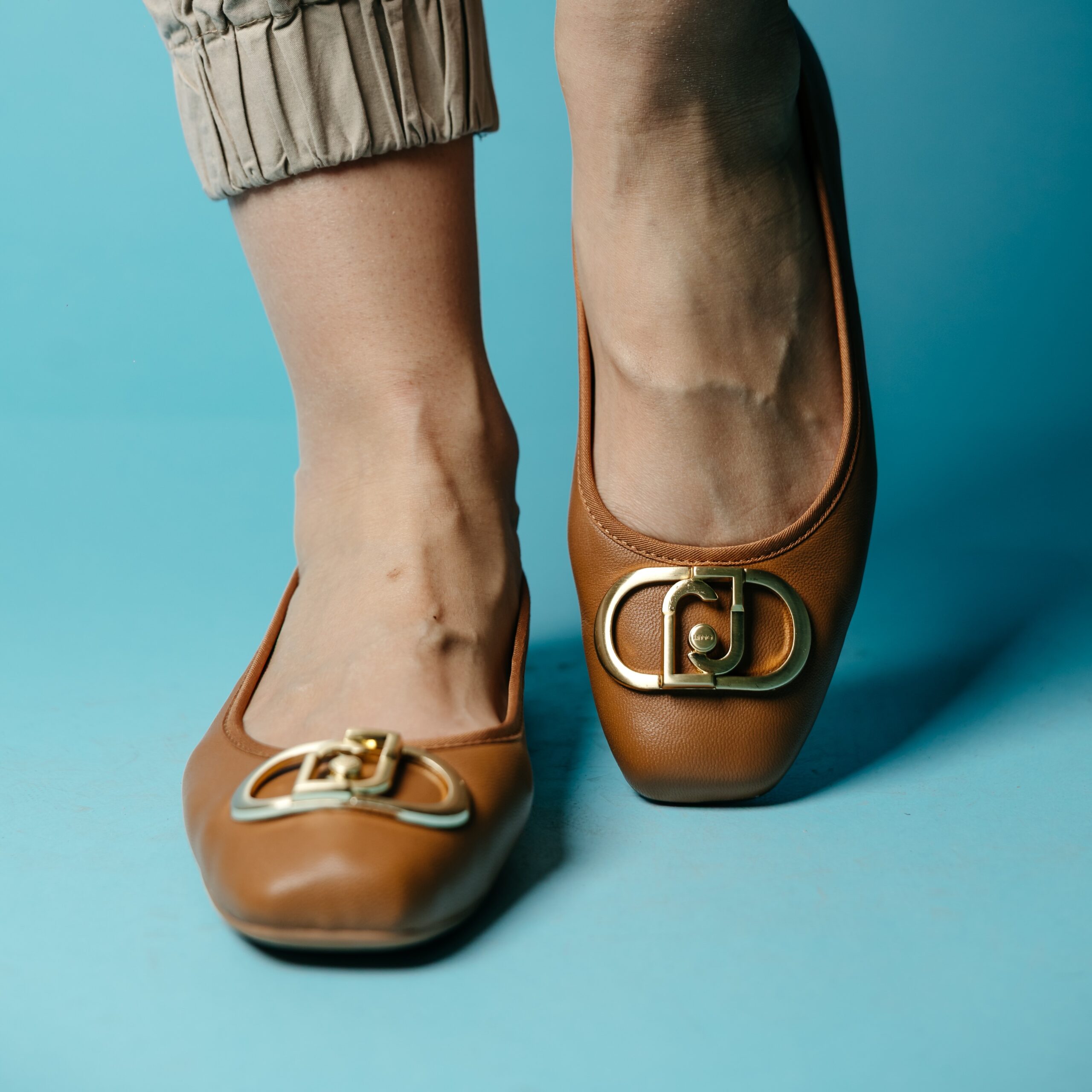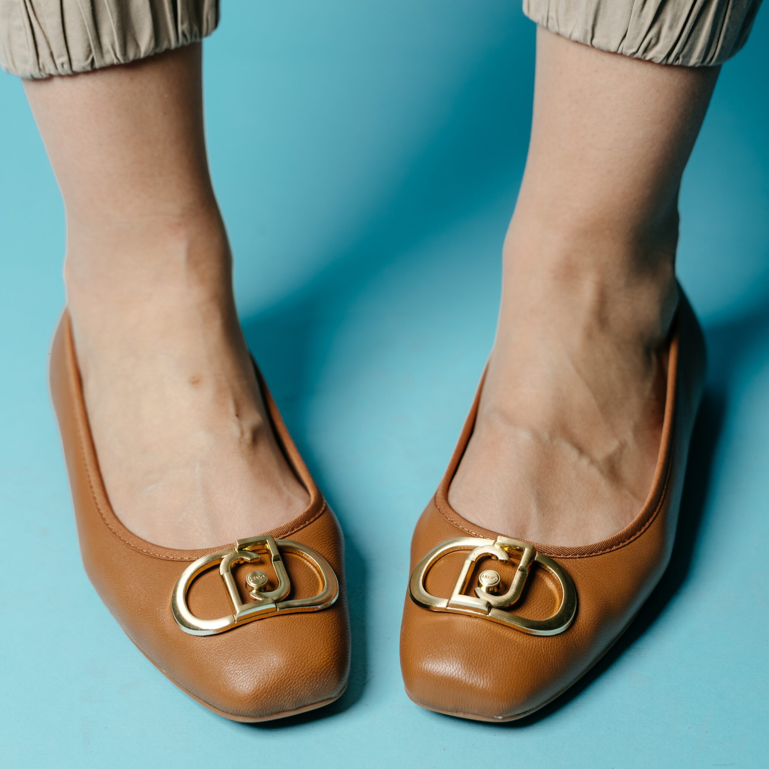 Liu Jo kožne braon baletanke sa zlatnom šnalom