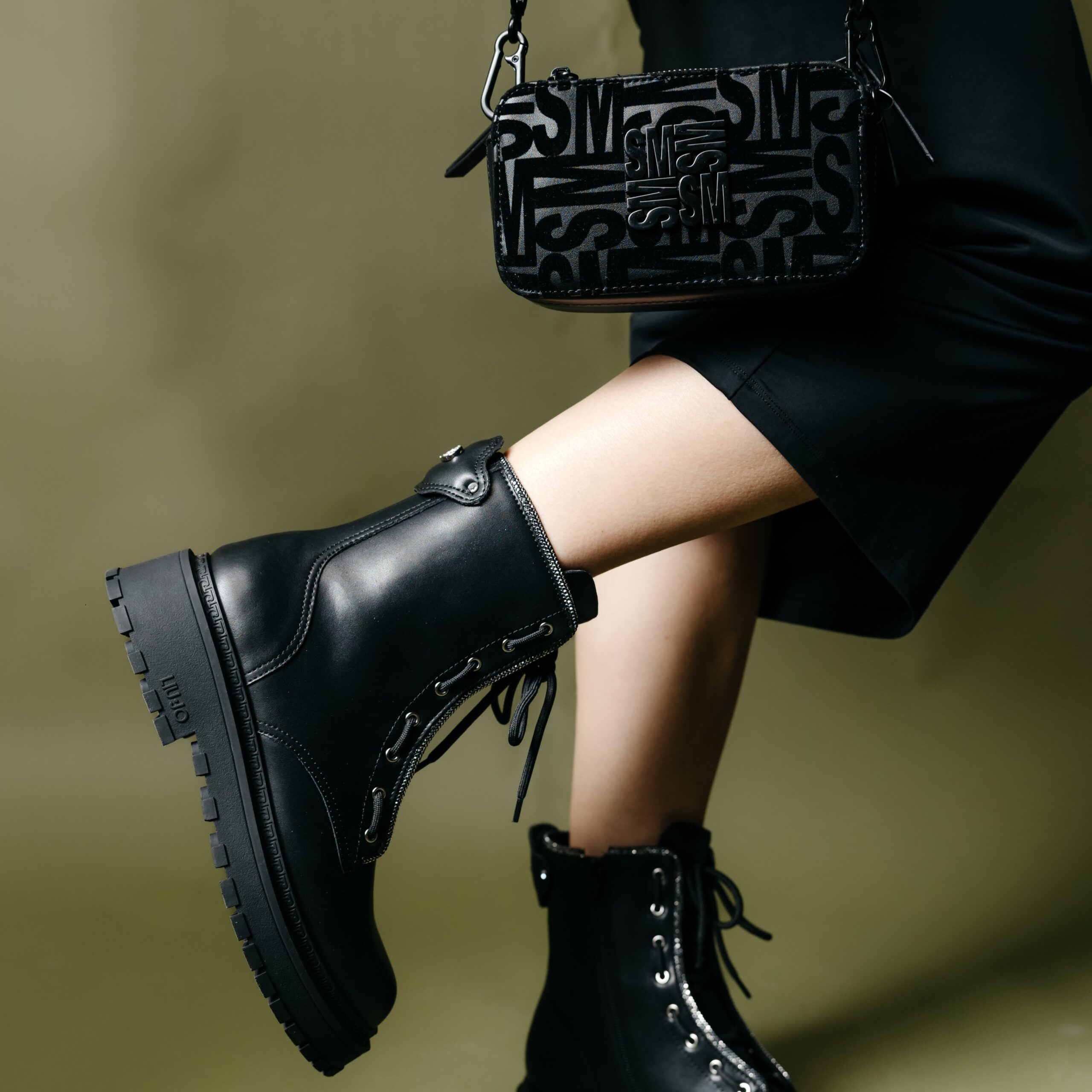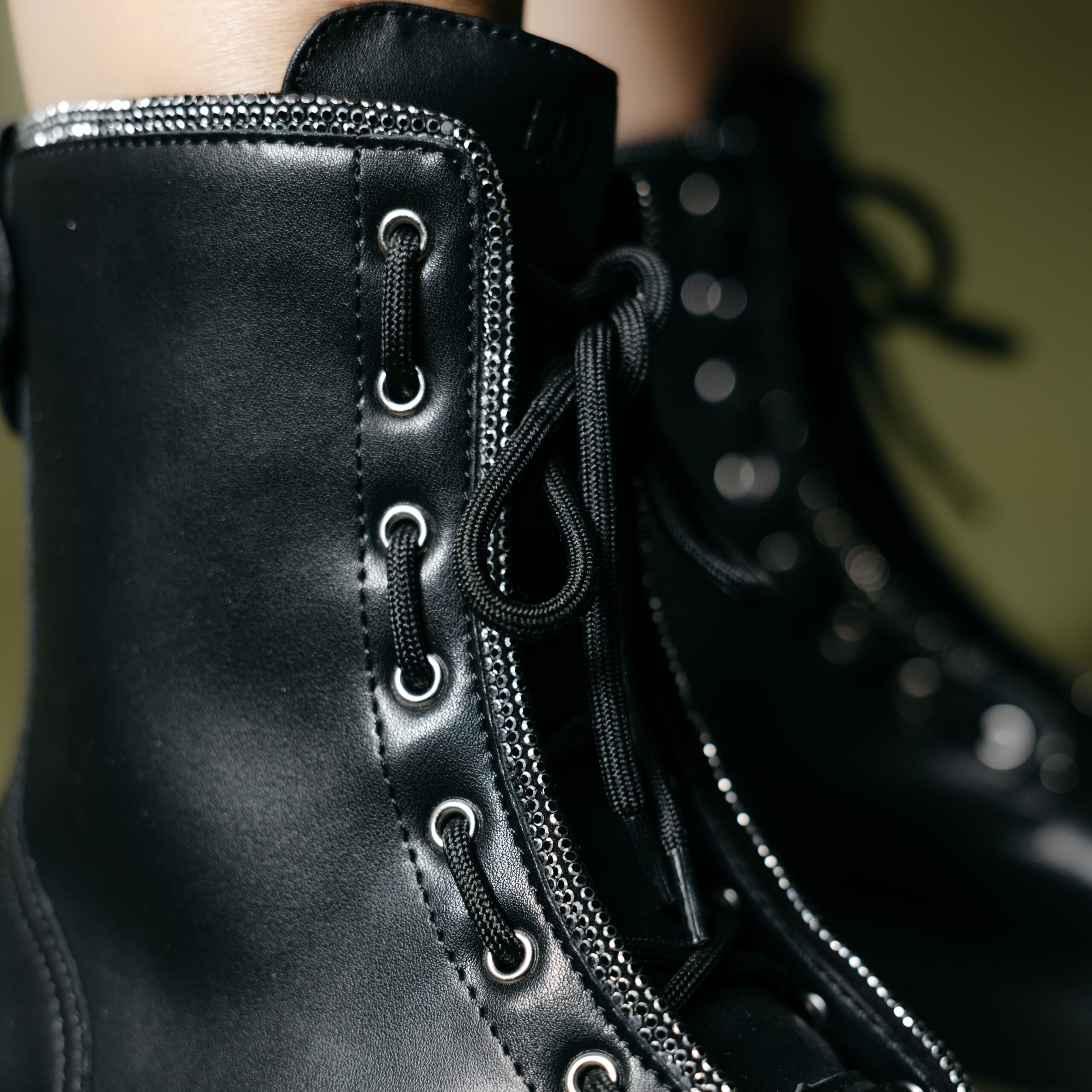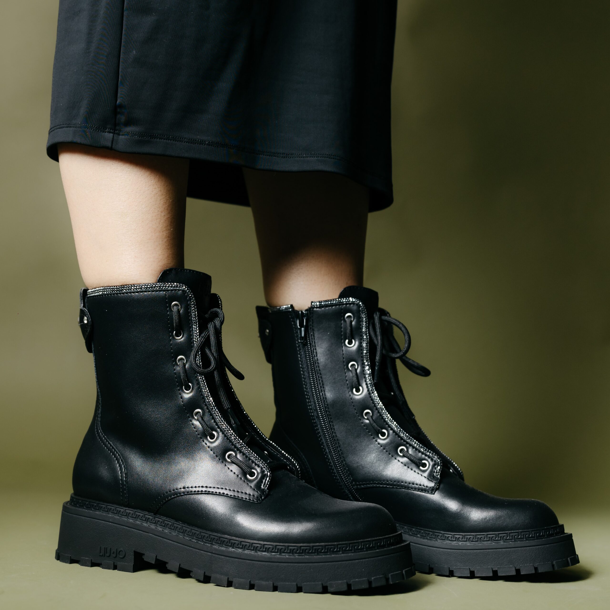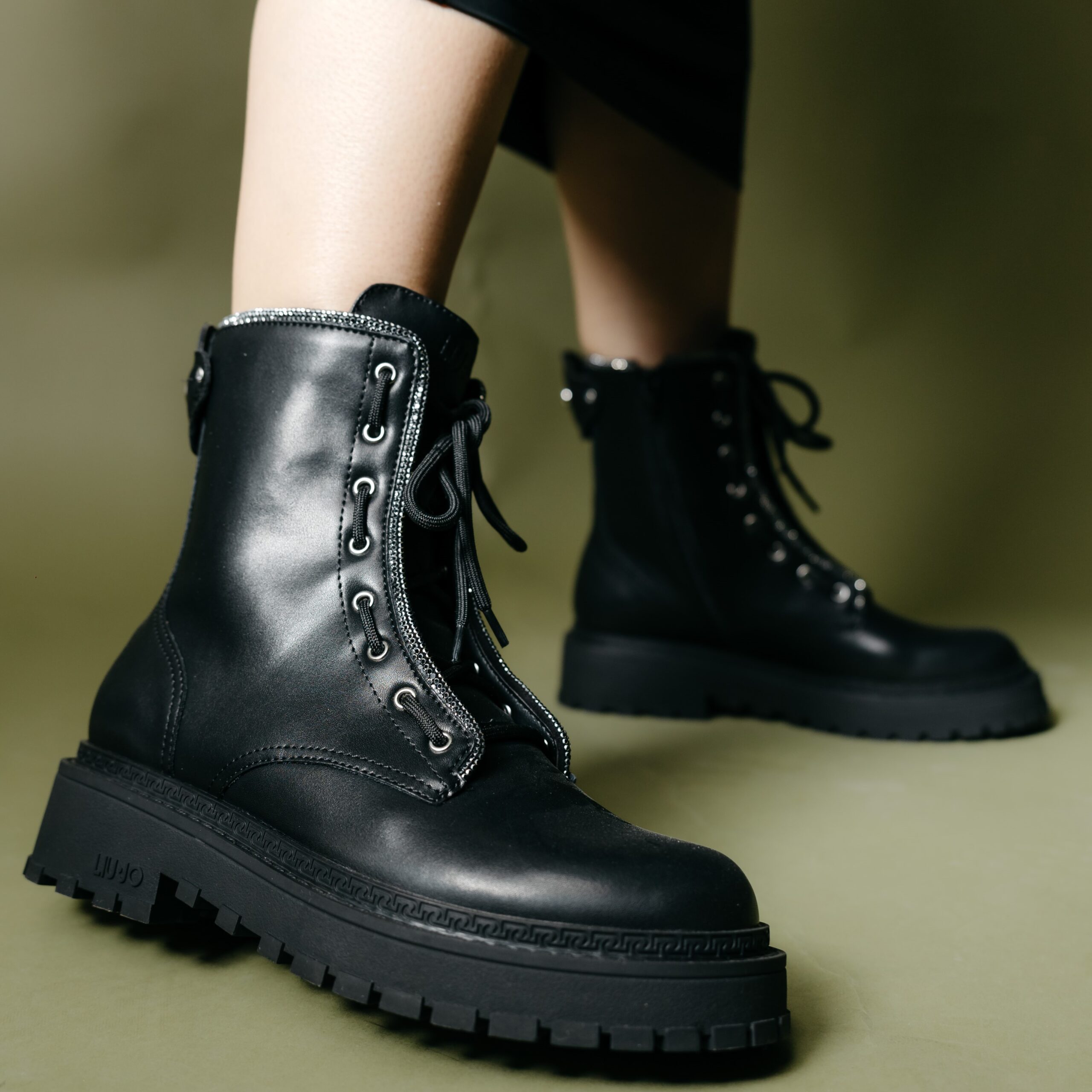 Liu Jo crne gležnjače na pertlanje sa cirkonima po rubovima.