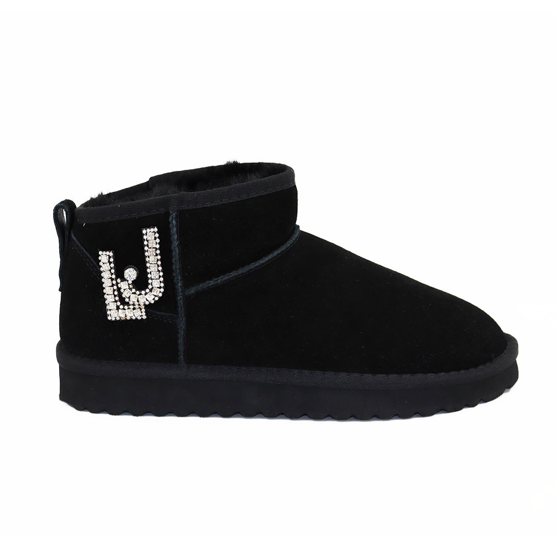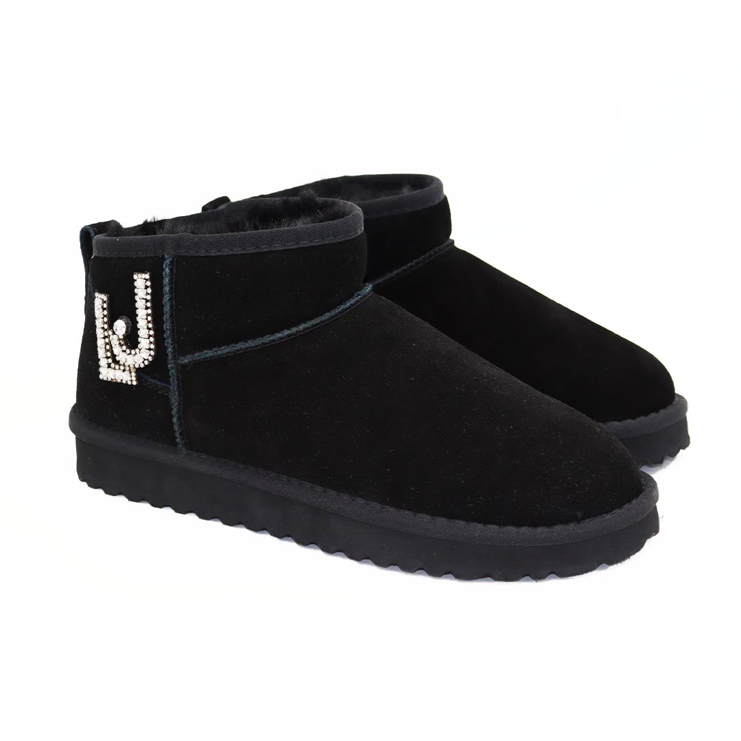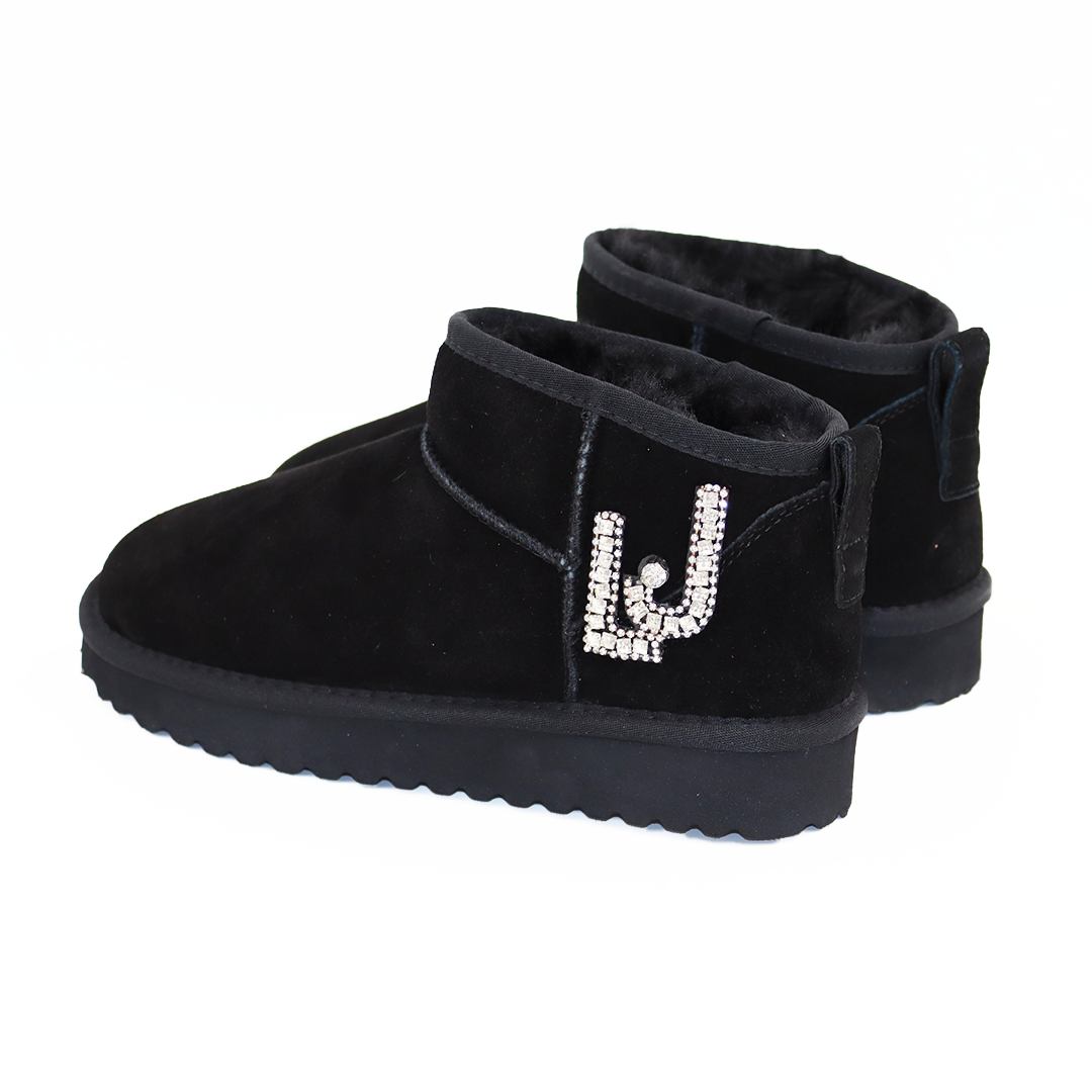 Liu Jo kratke gležnjače na manjem đonu u crnoj boji sa srebrnim Liu Jo znakom od cirkona sa strane.