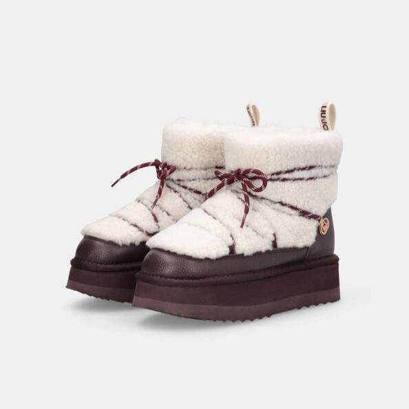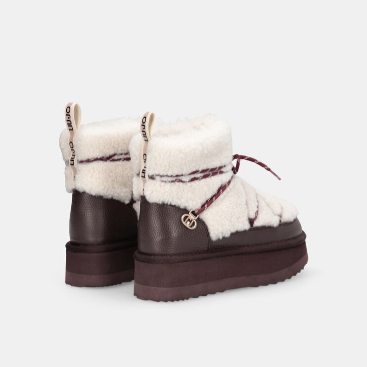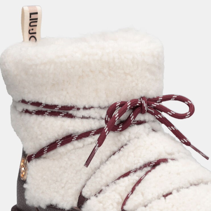 Liu Jo zimske gležnjače u bordo boji sa krem vunom i pertlama na jačem đonu