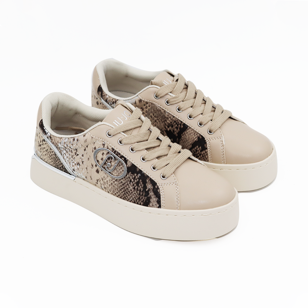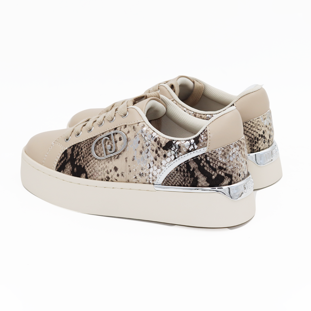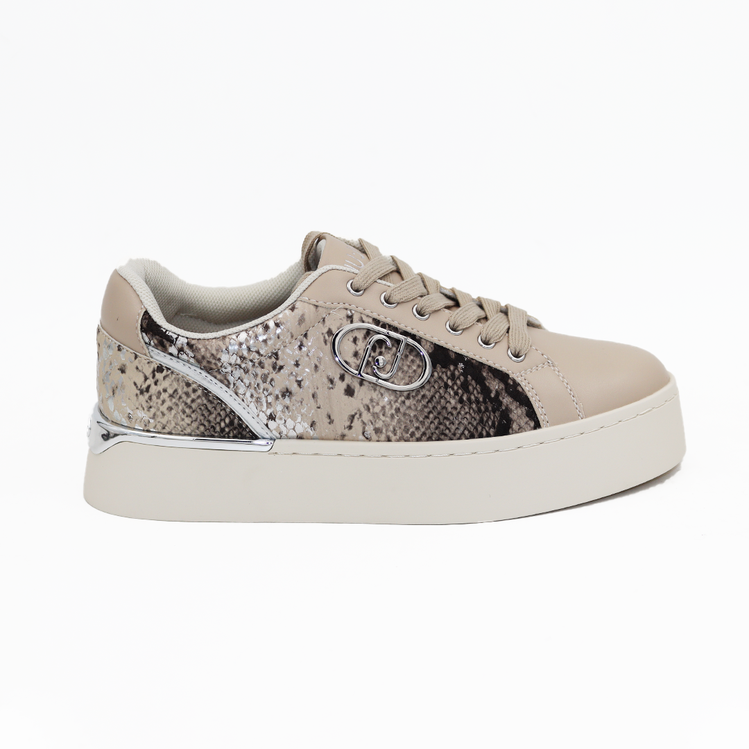 Liu Jo kožne patike u taupe boji na manjem đonu sa zmijskim printom sa strane i srebrnim detaljima
