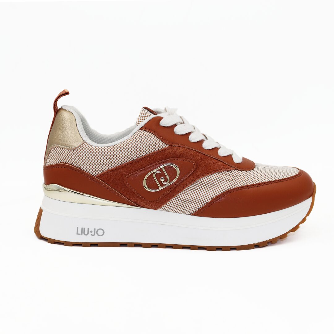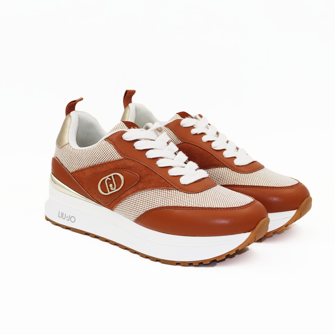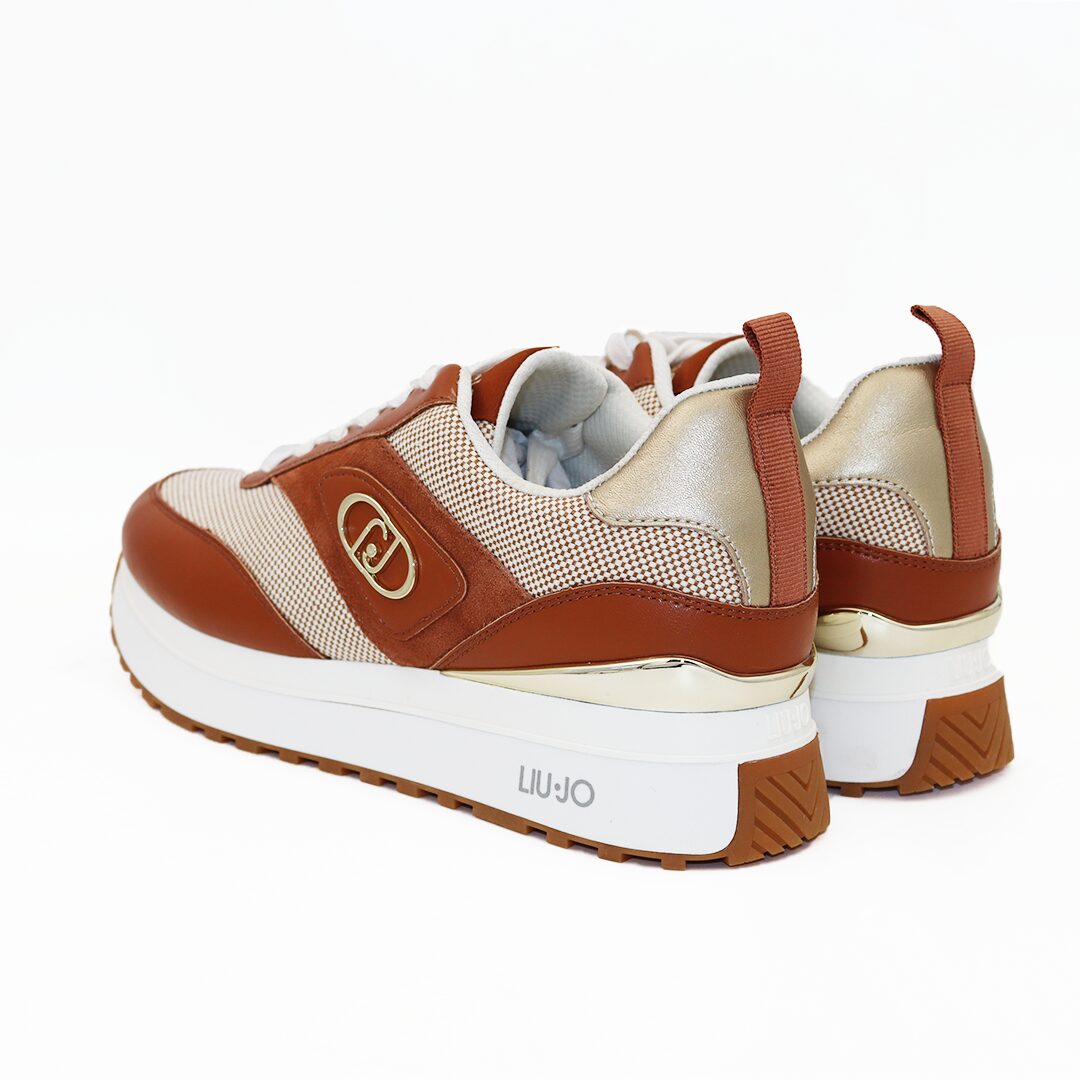 Liu Jo patike na maxi đonu u kamel boji sa bež-braon rafijom i zlatnim detaljima