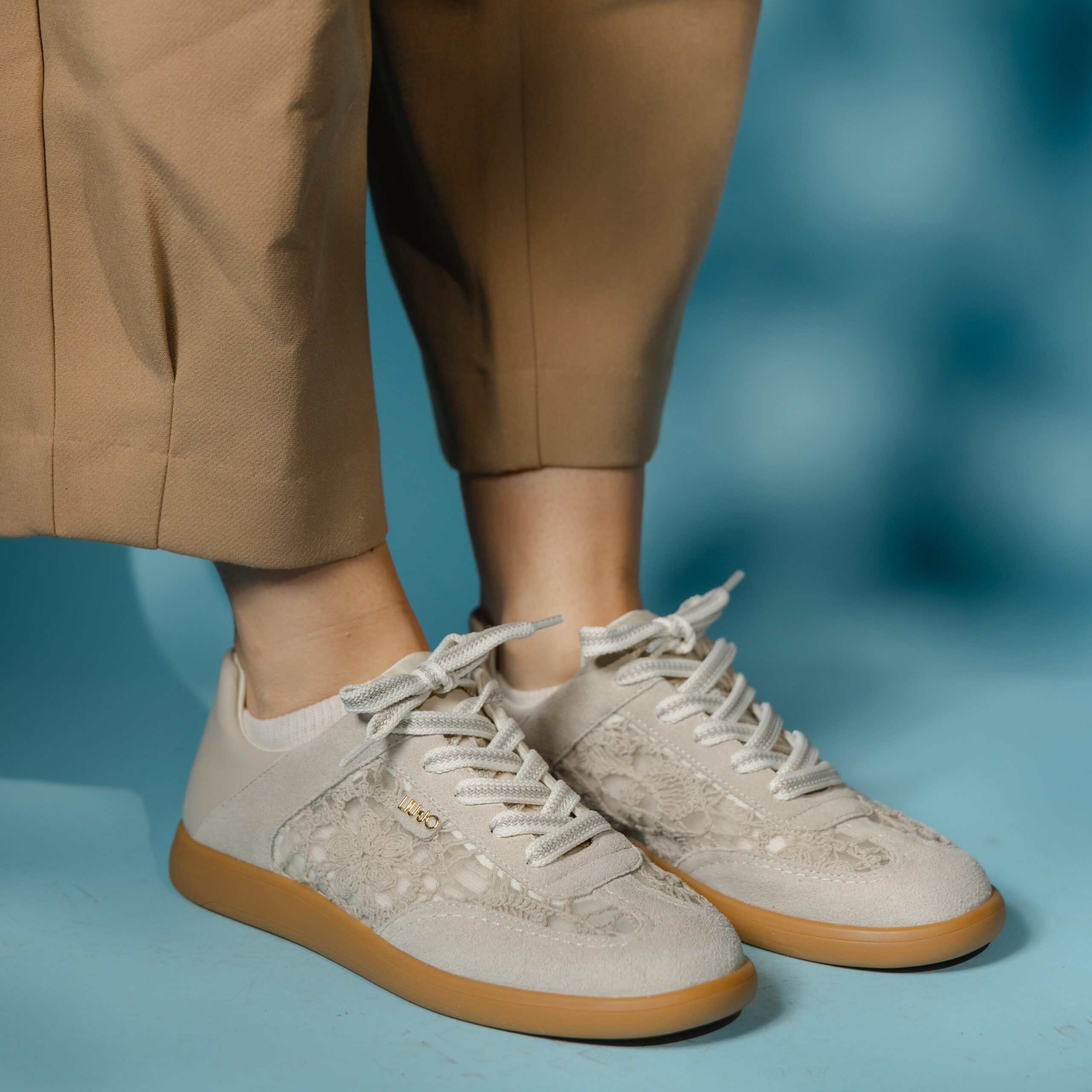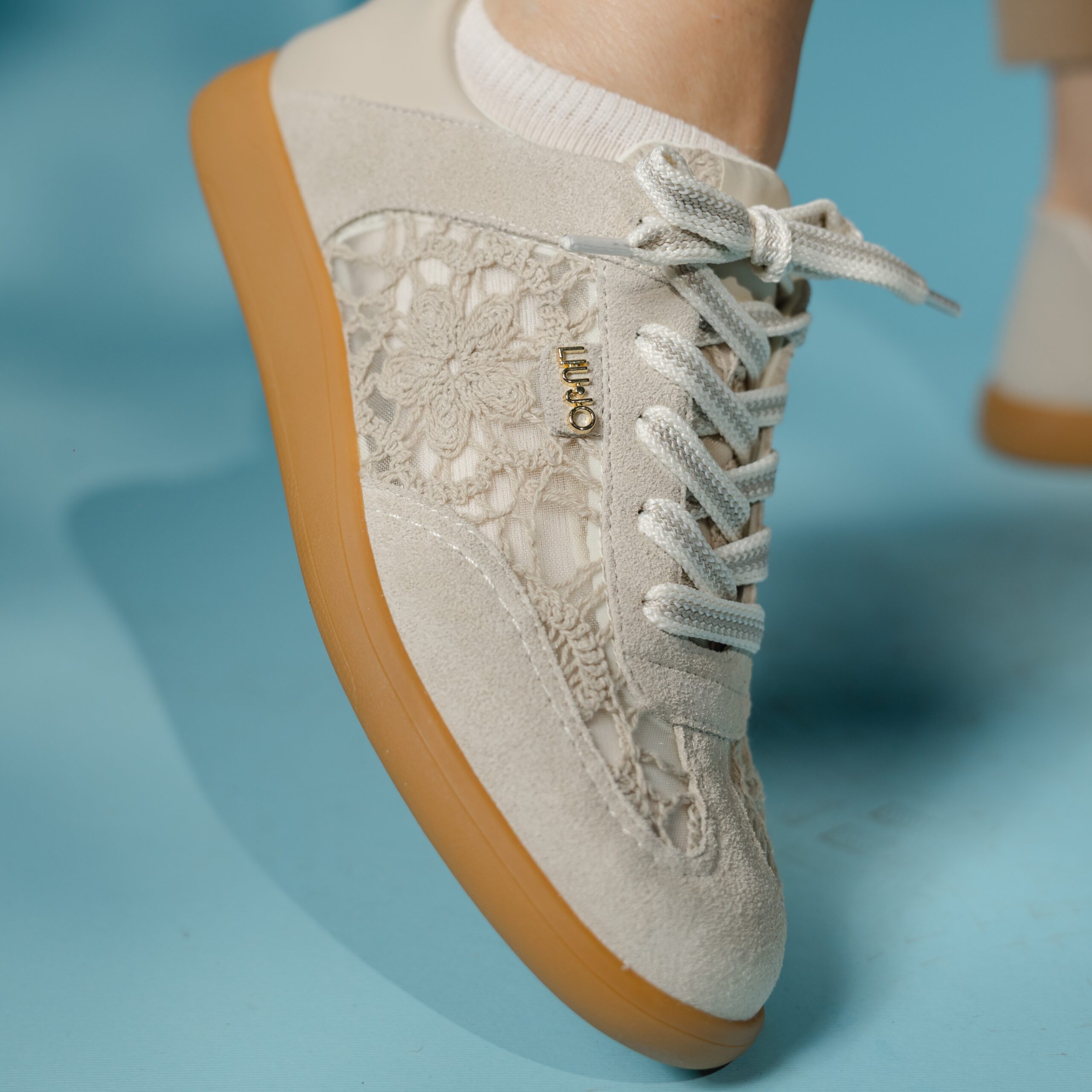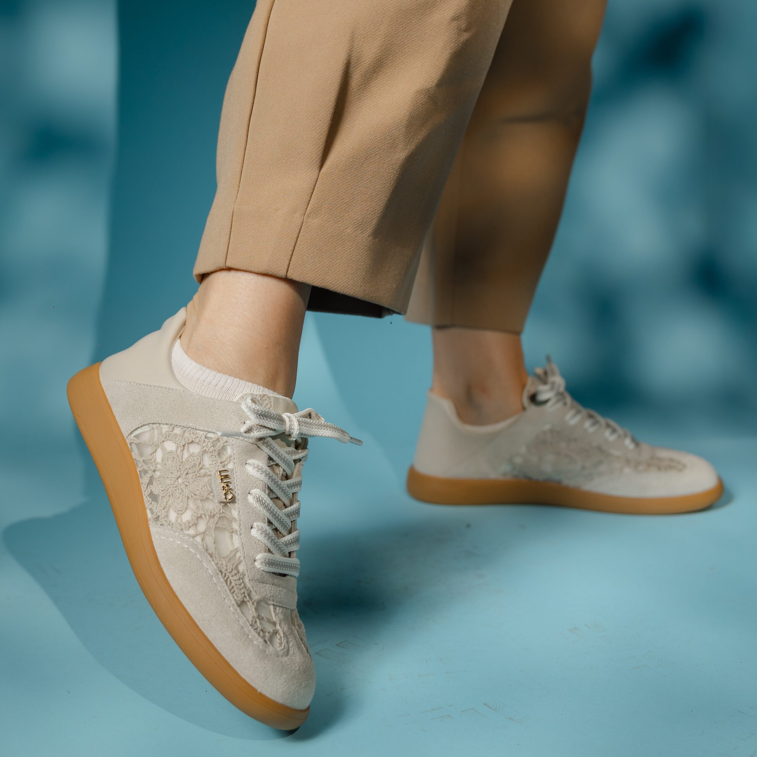 Liu Jo kožne velur bež patike na manjem đonu sa izveženim tekstilnim radom na providnom materijalu sa strane