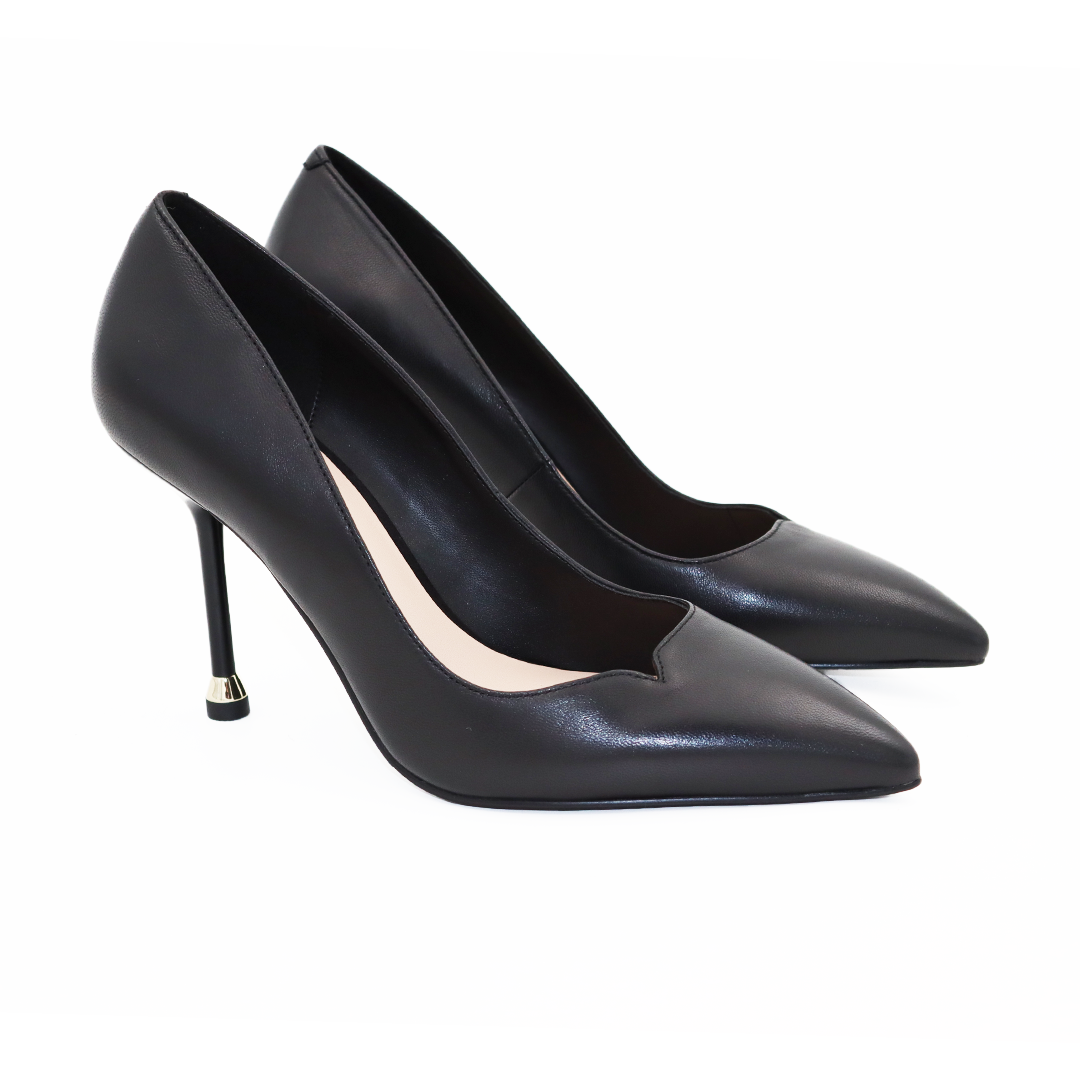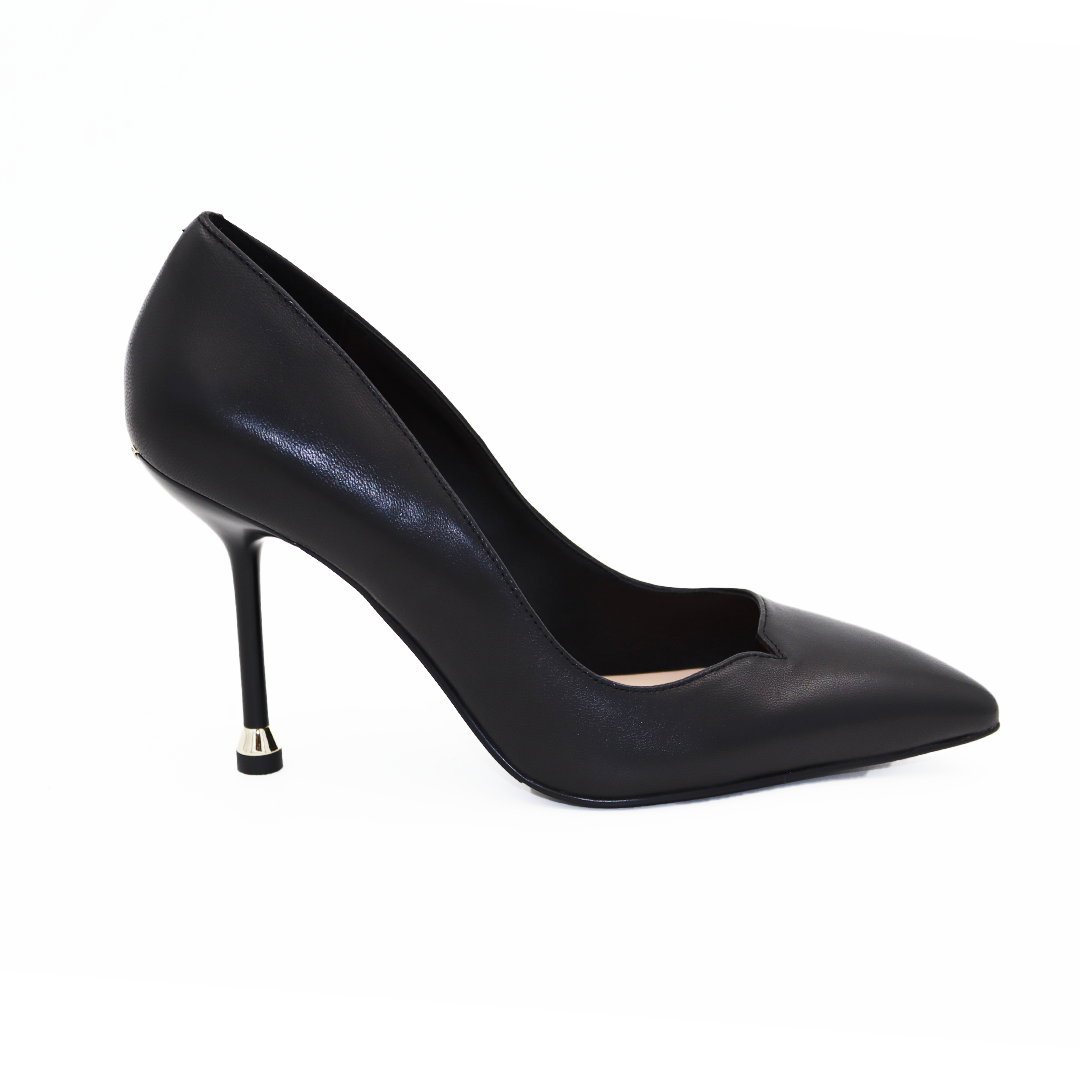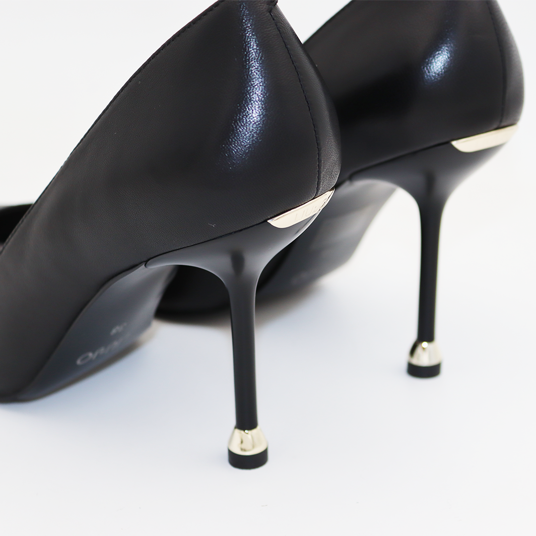 Liu Jo kožne crne salonke sa zlatnim detaljem na peti i na tankoj poteptici, sa diskretnim izrezom na špicu