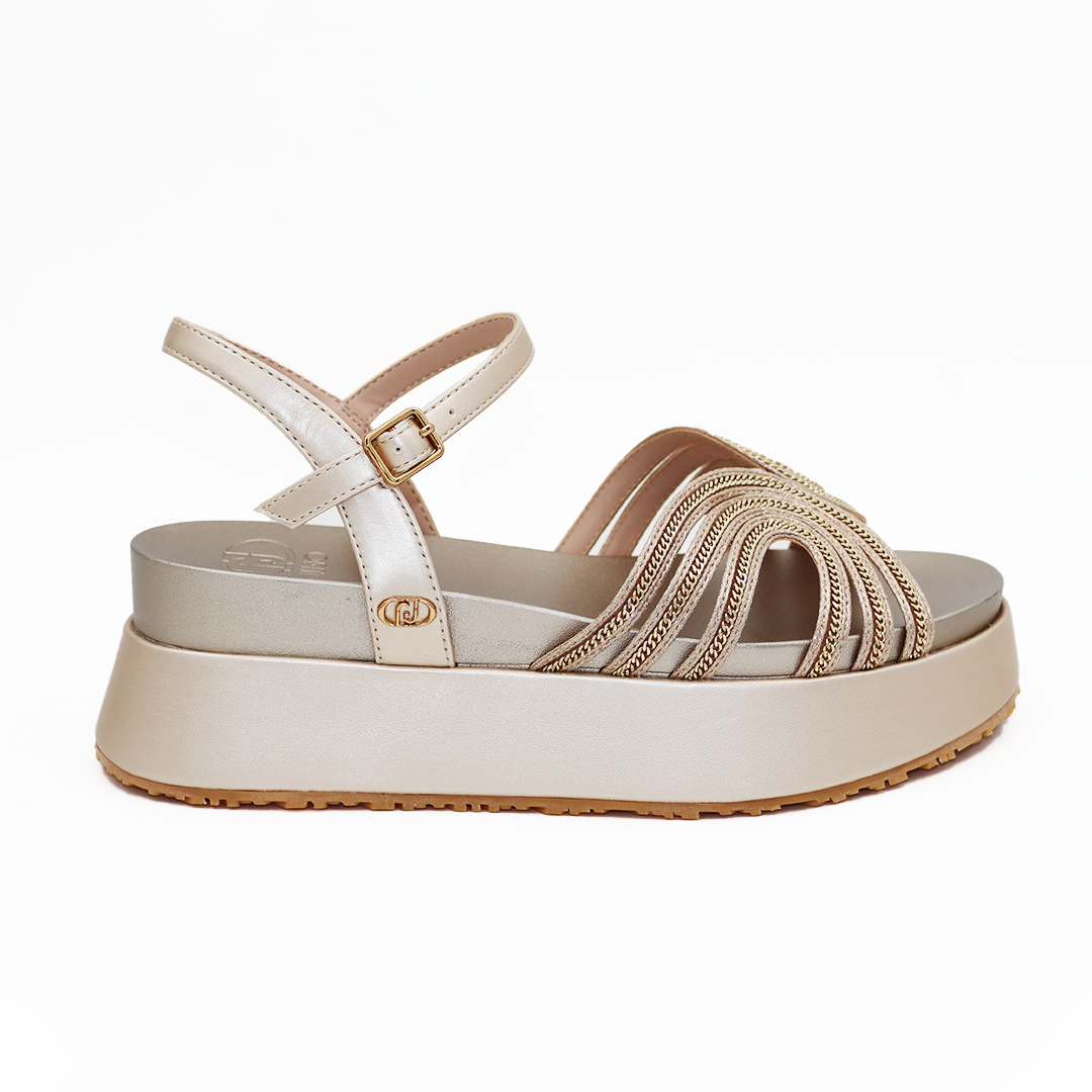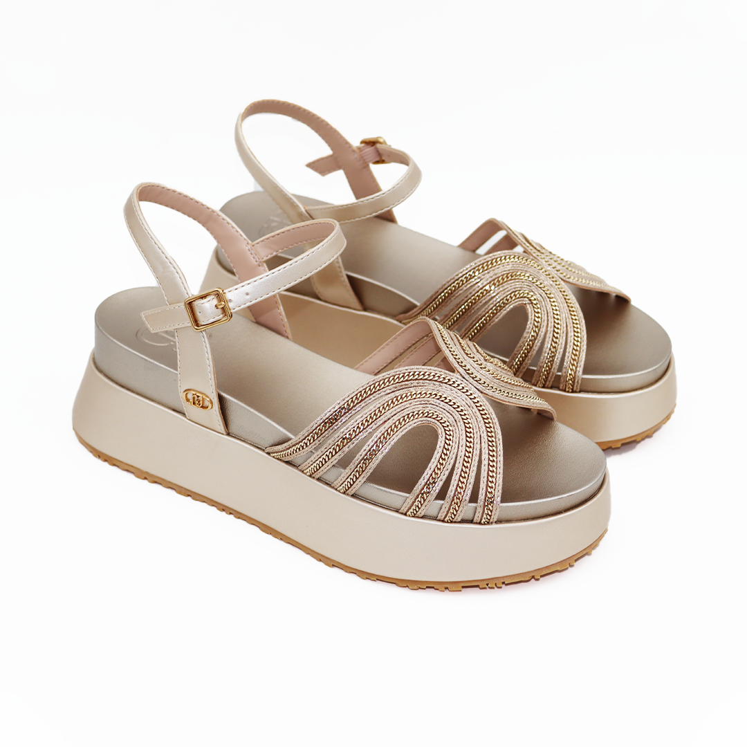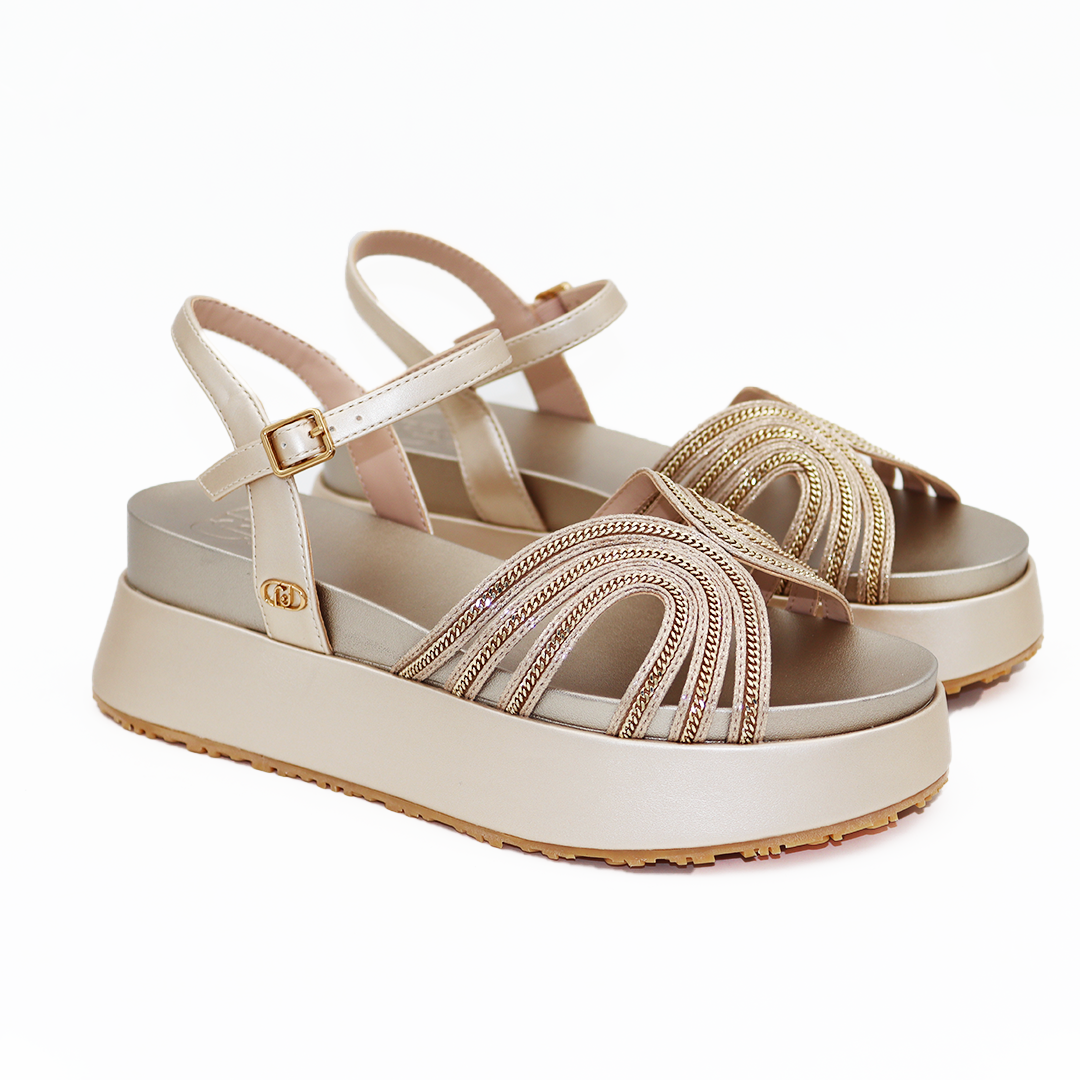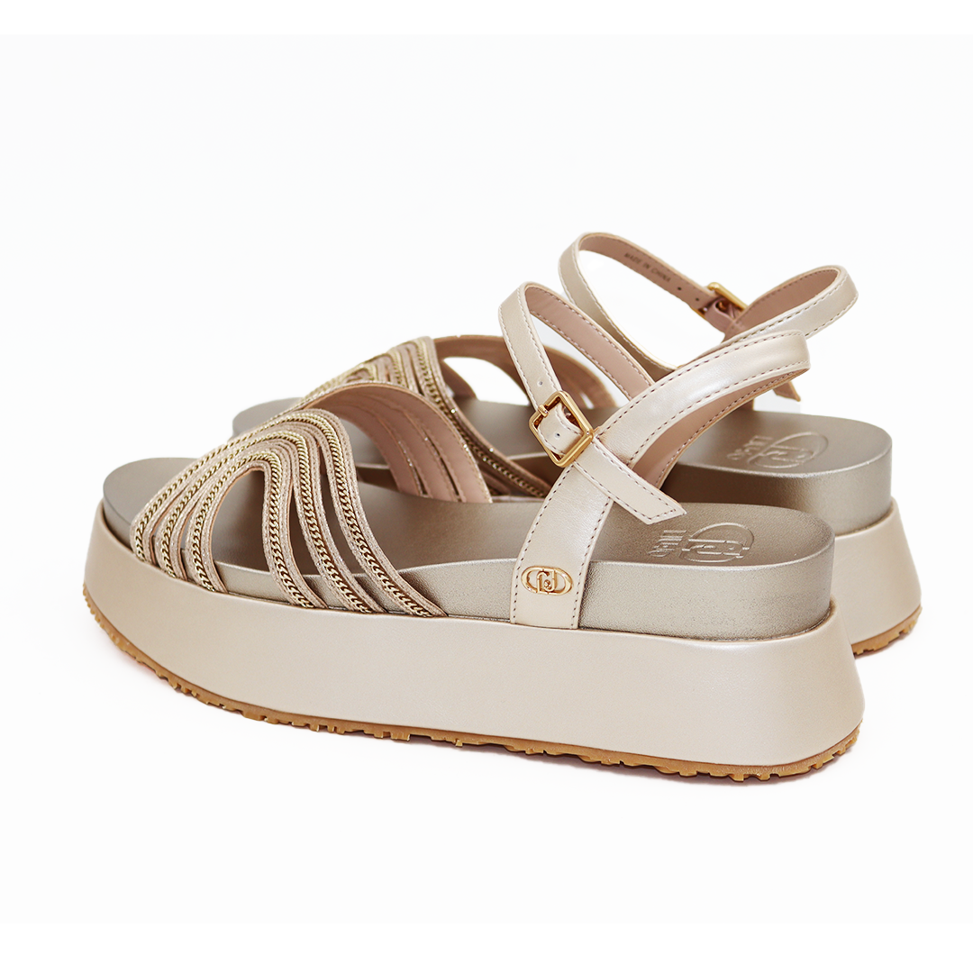 Liu Jo sport sandale na maxi đonu u zlatnoj boji sa kaiševima od zlatnih cirkona i zlatnom Liu Jo šnalom sa strane