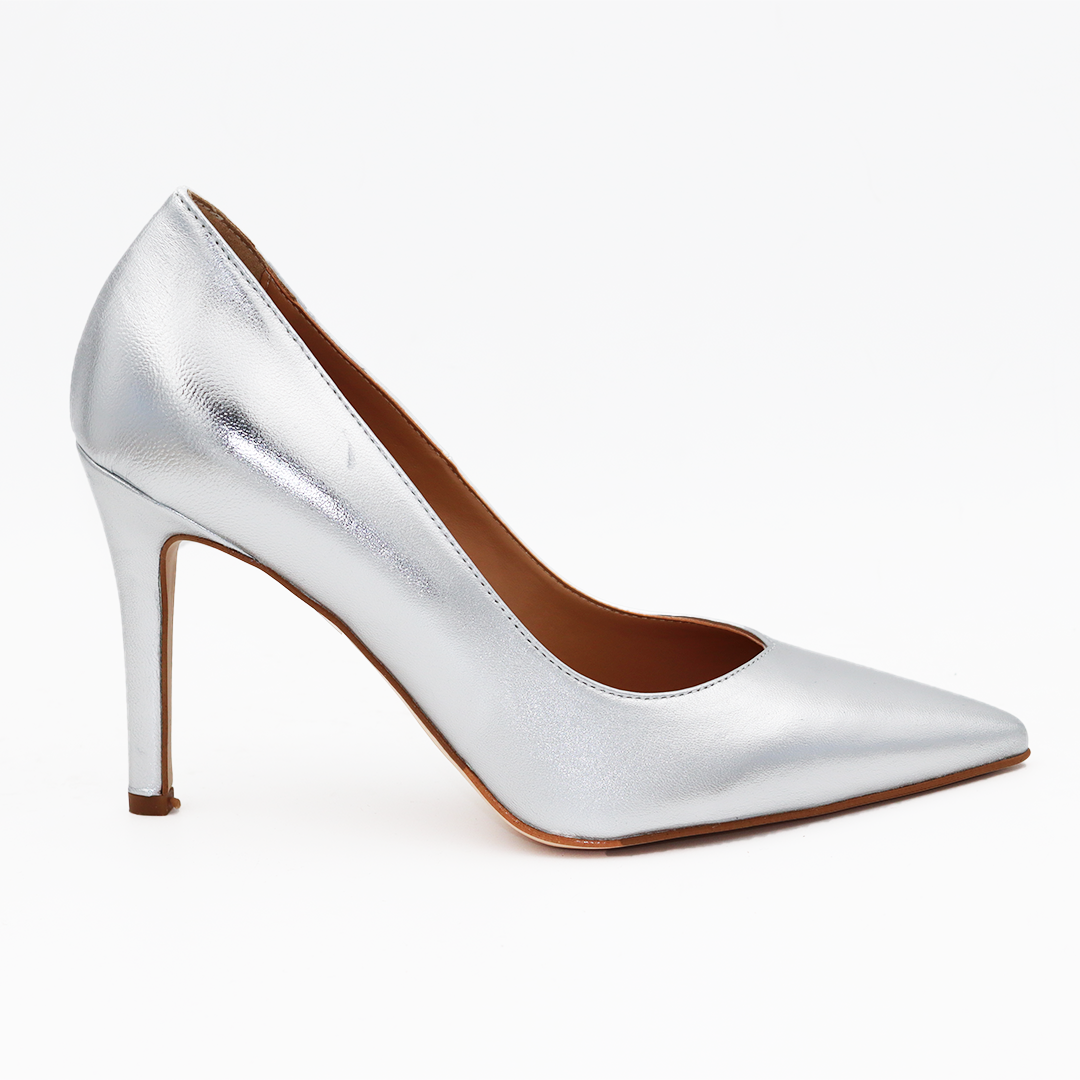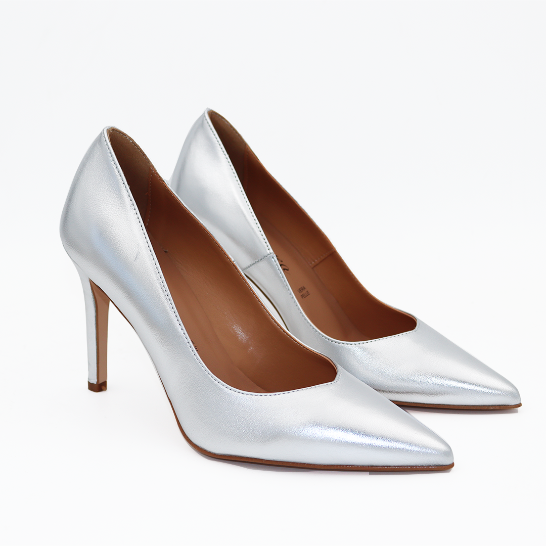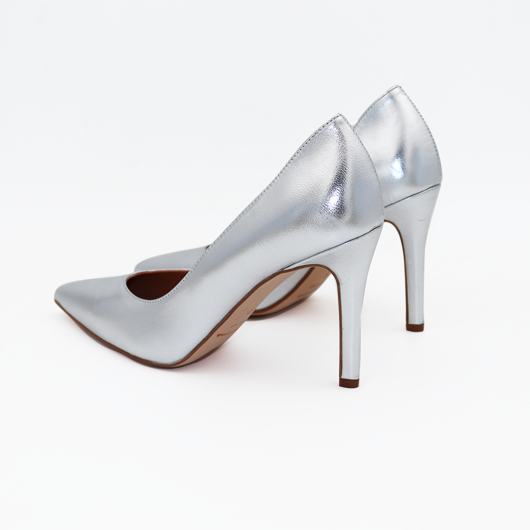 Italijanske kožne salonke u srebrnoj boji i potpetici od 9 cm.