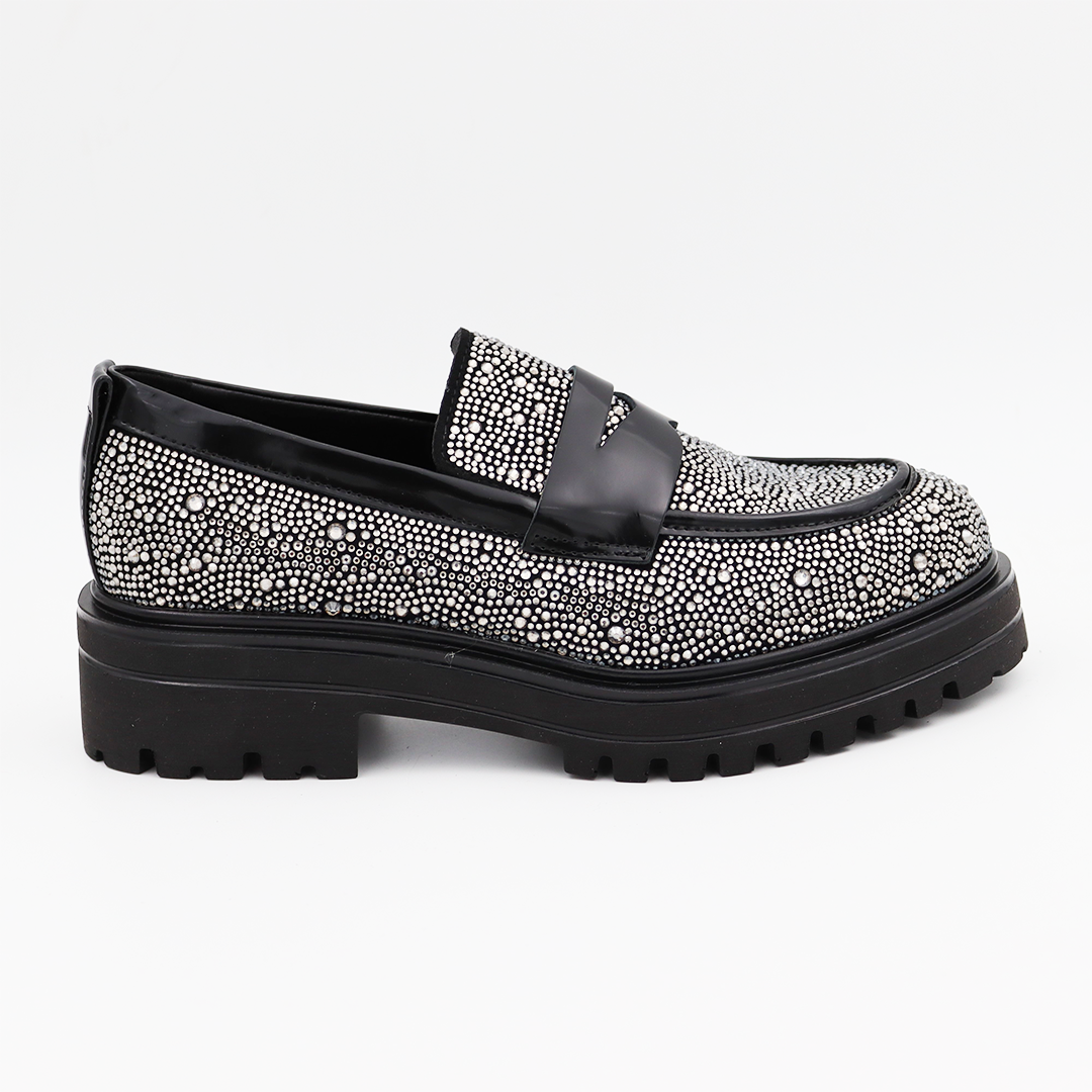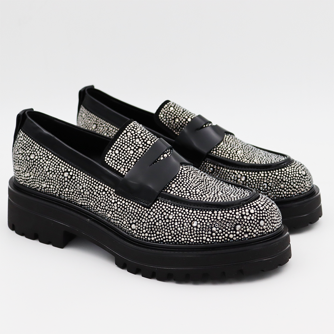 Movimenti kožne italijanske mokasine sa srebrnim cirkonima na crnom đonu.