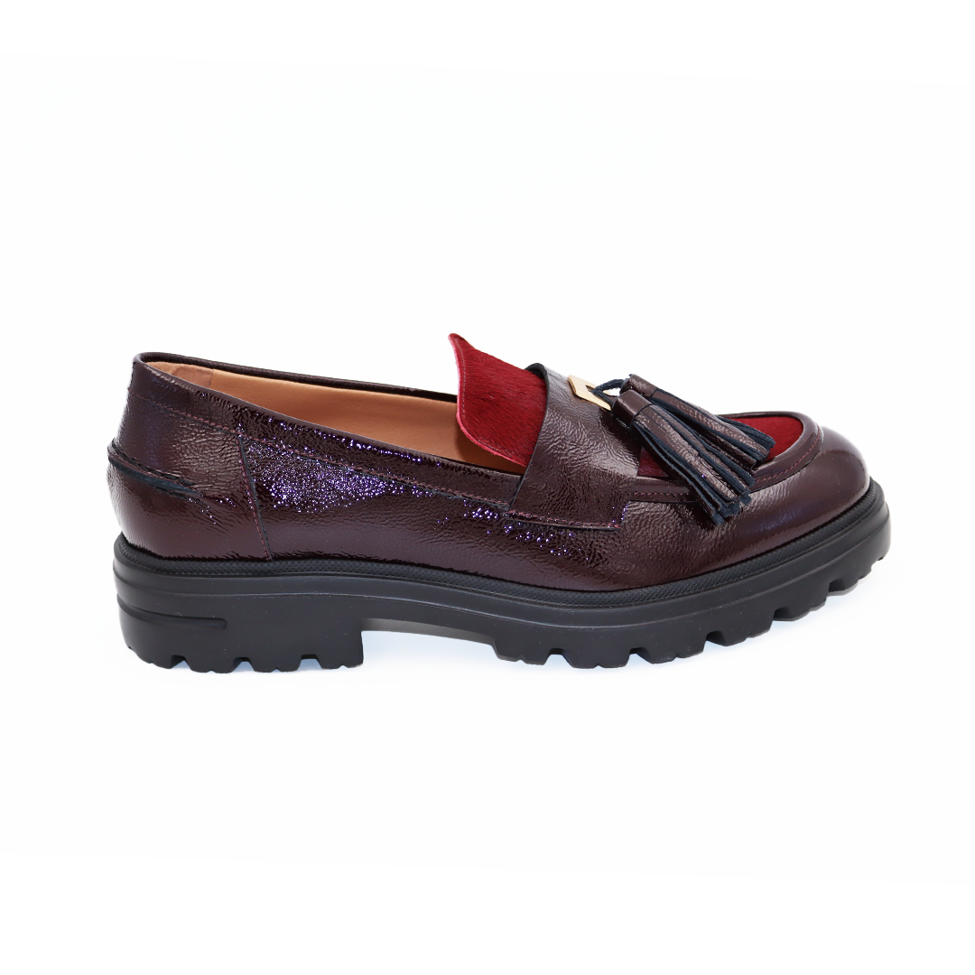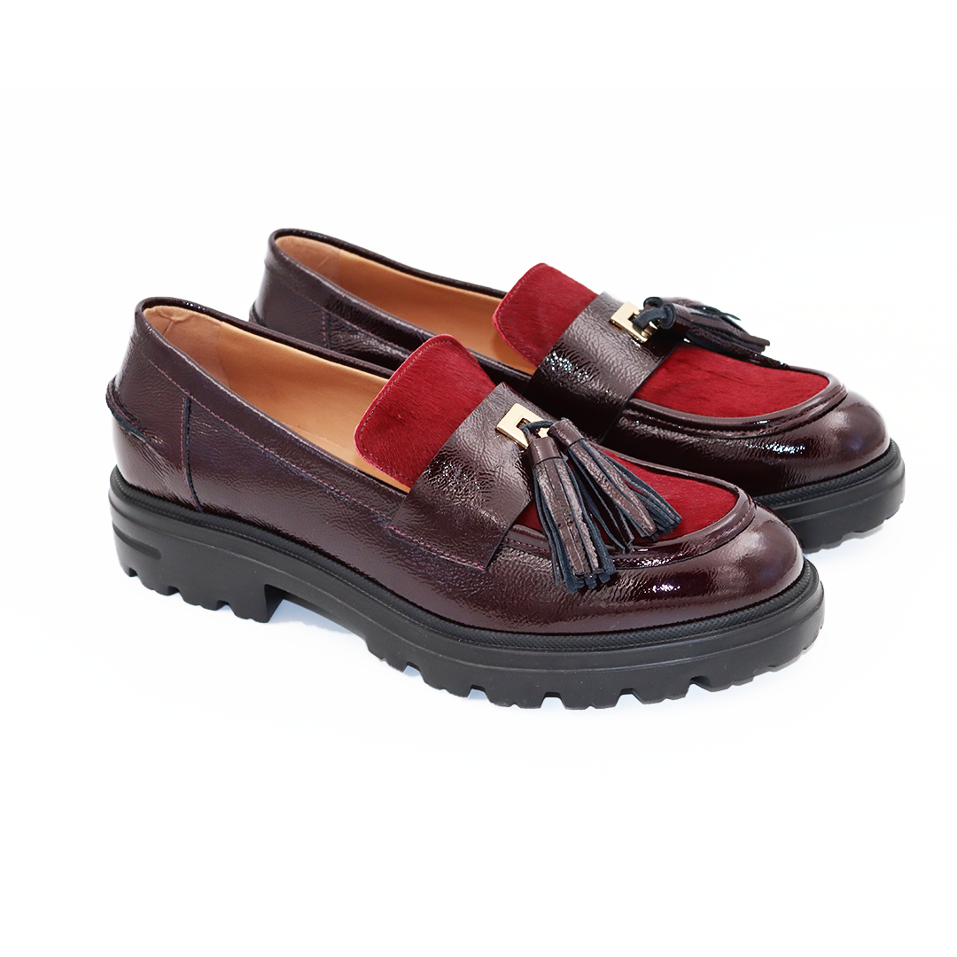 Movimenti kožne italijanske mokasine u bordo lak boji sa kićankom i bordo dlakom