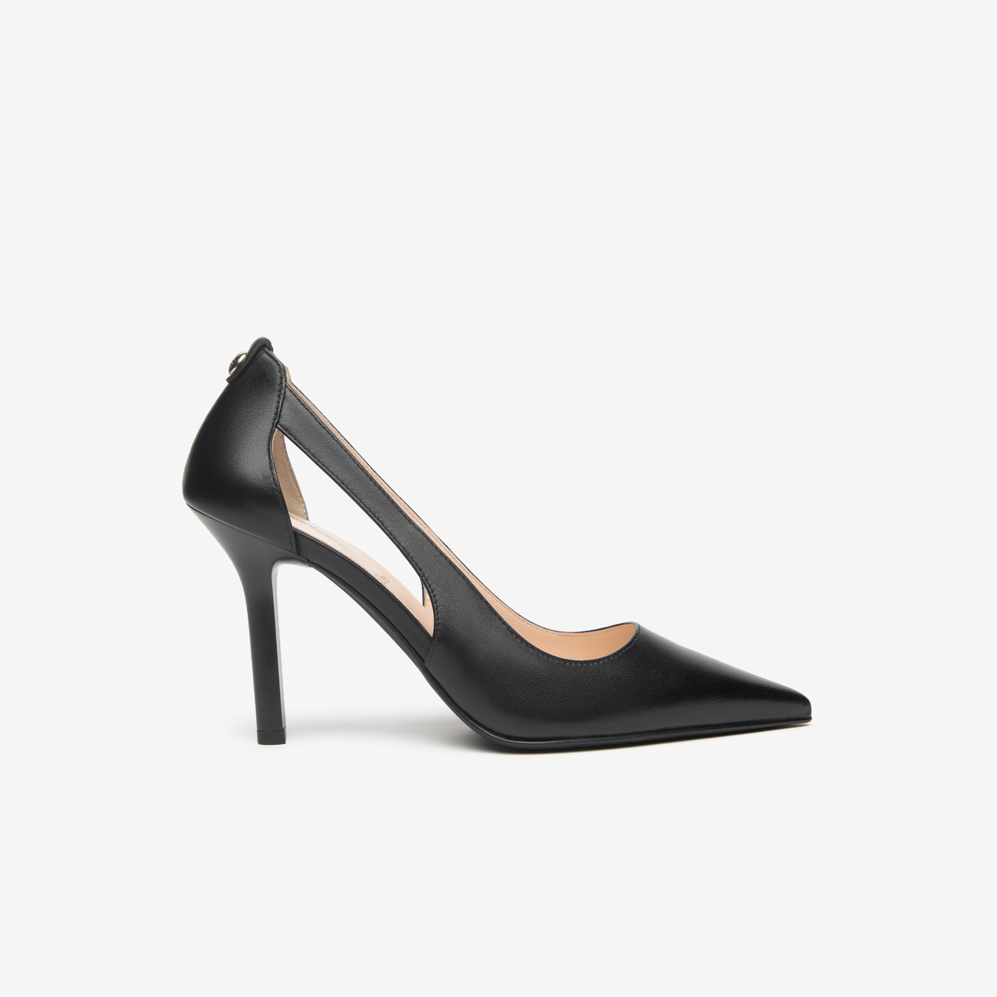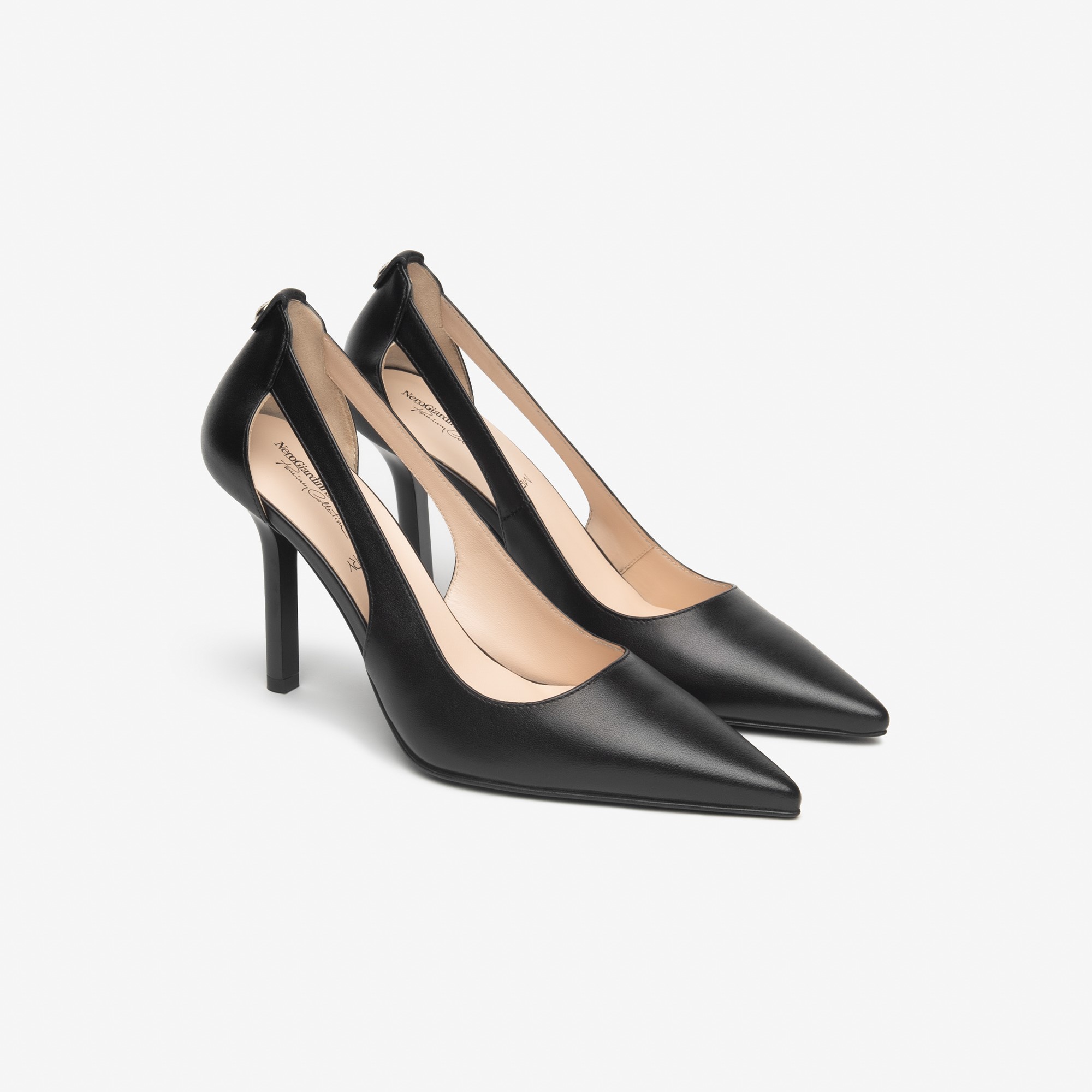 Nero Giardini crne kožne italijanske cipele na potpetici od 9 cm sa izrezom sa strane
