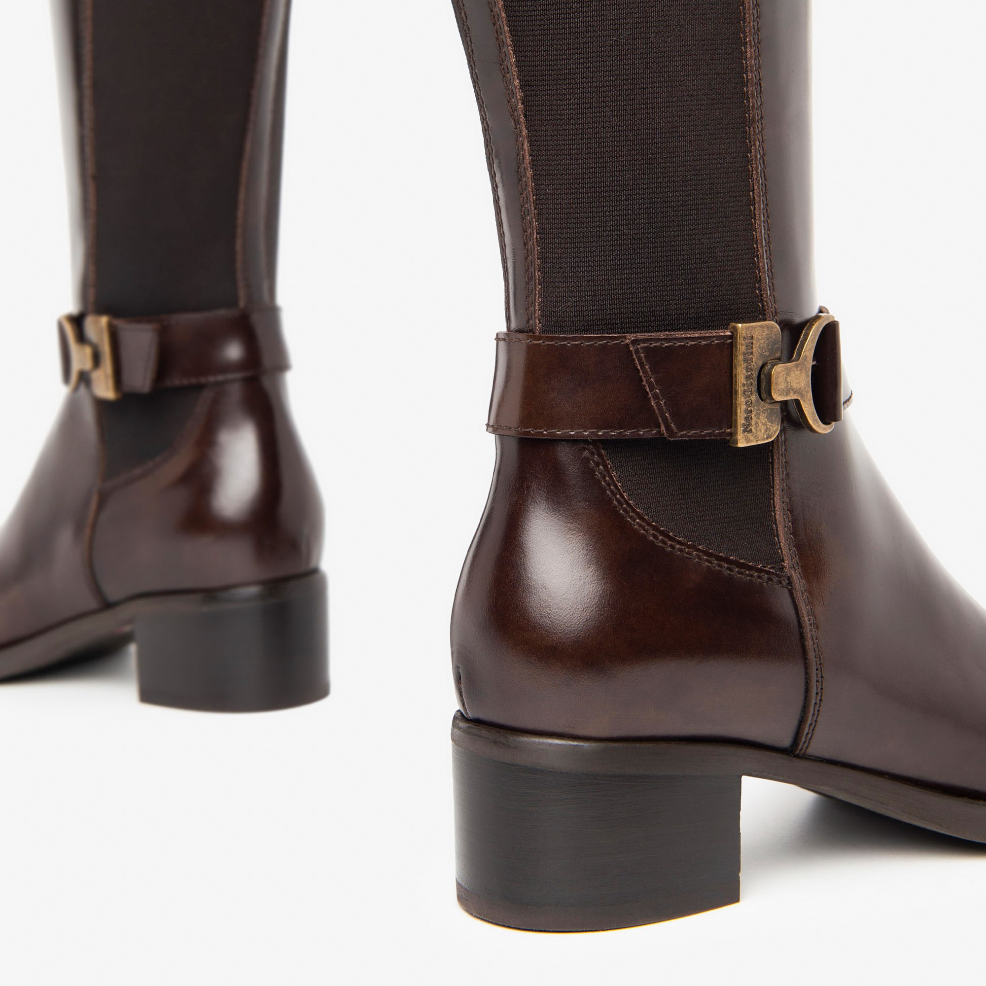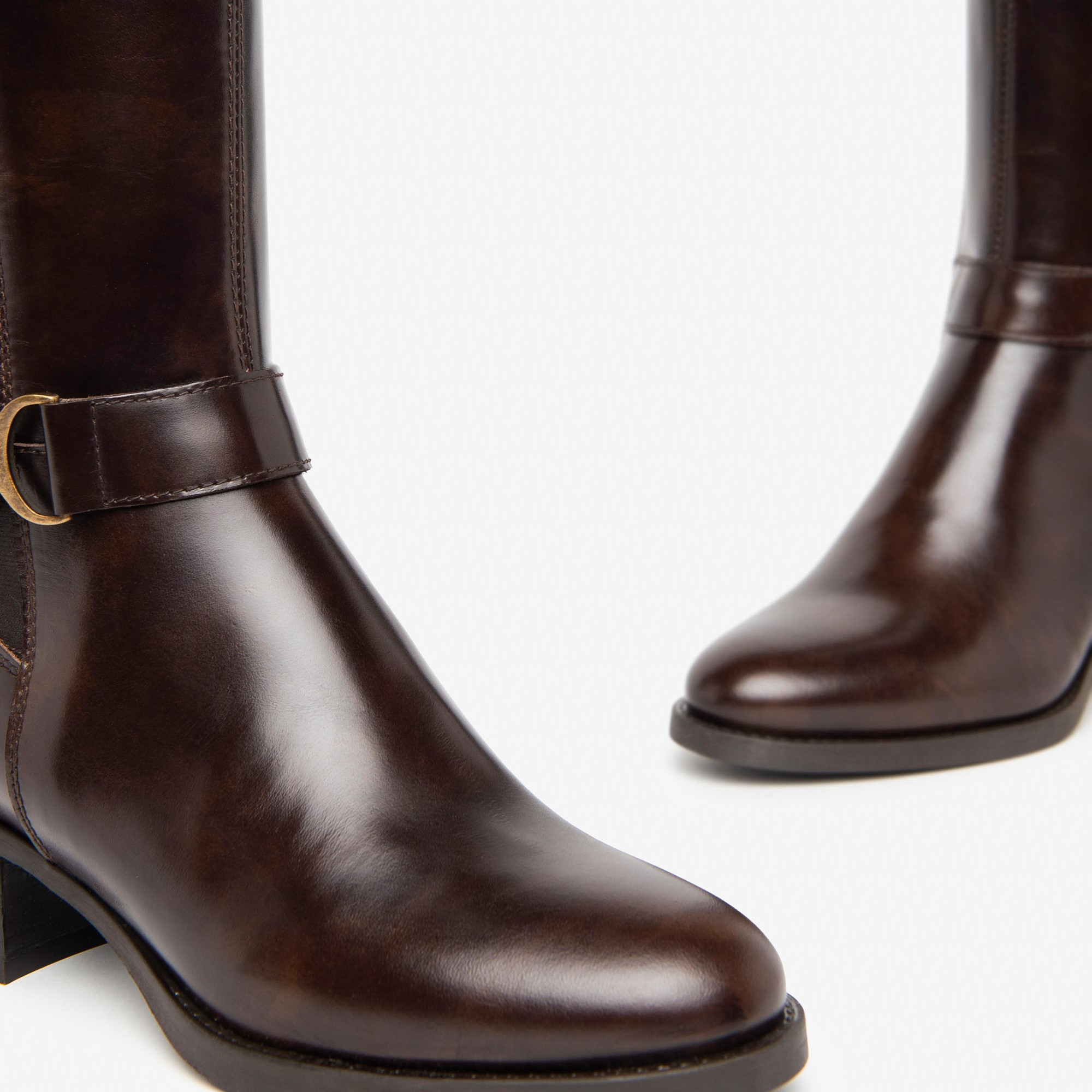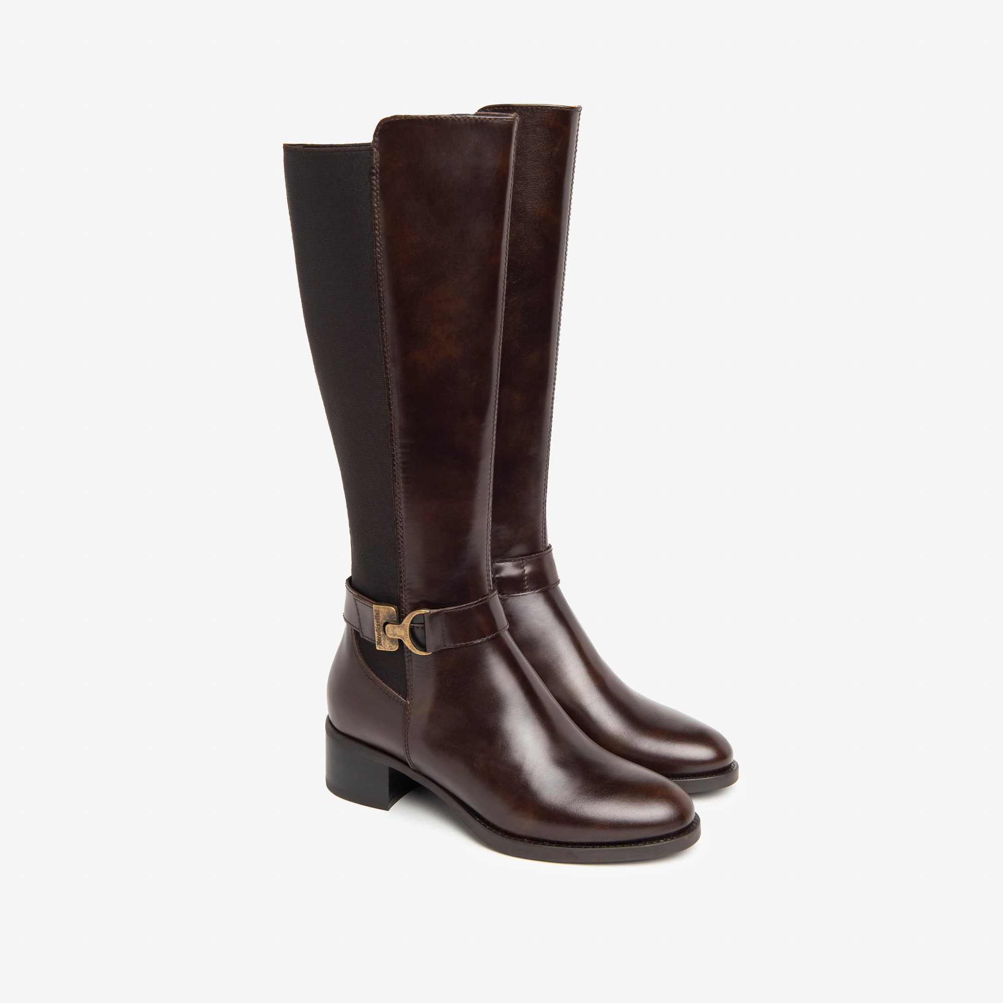 Nero Giardini kožne italijanske čizme u braon moro boji sa lastišem na listu, mat zlatnom kopčom i malom petom od 4 cm.