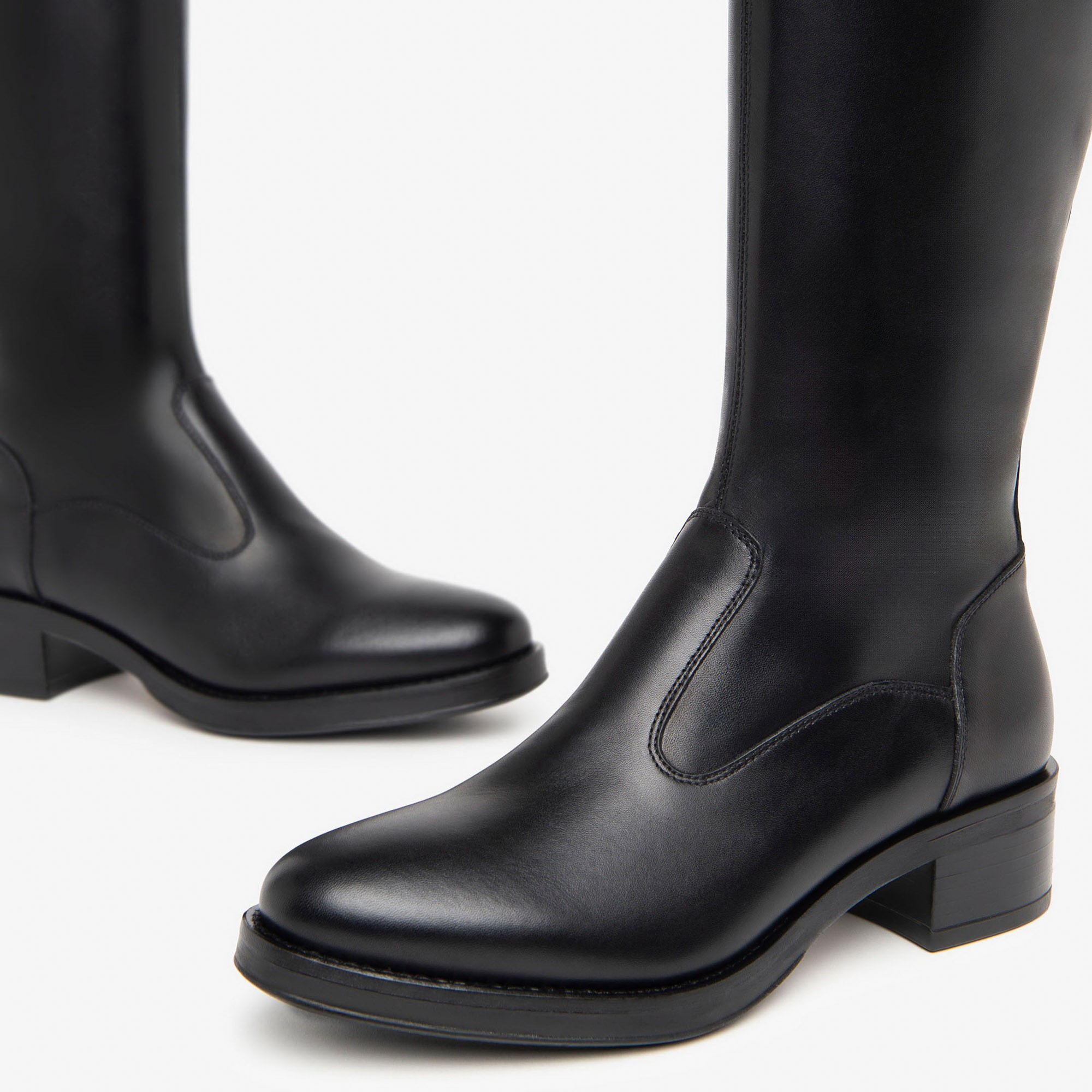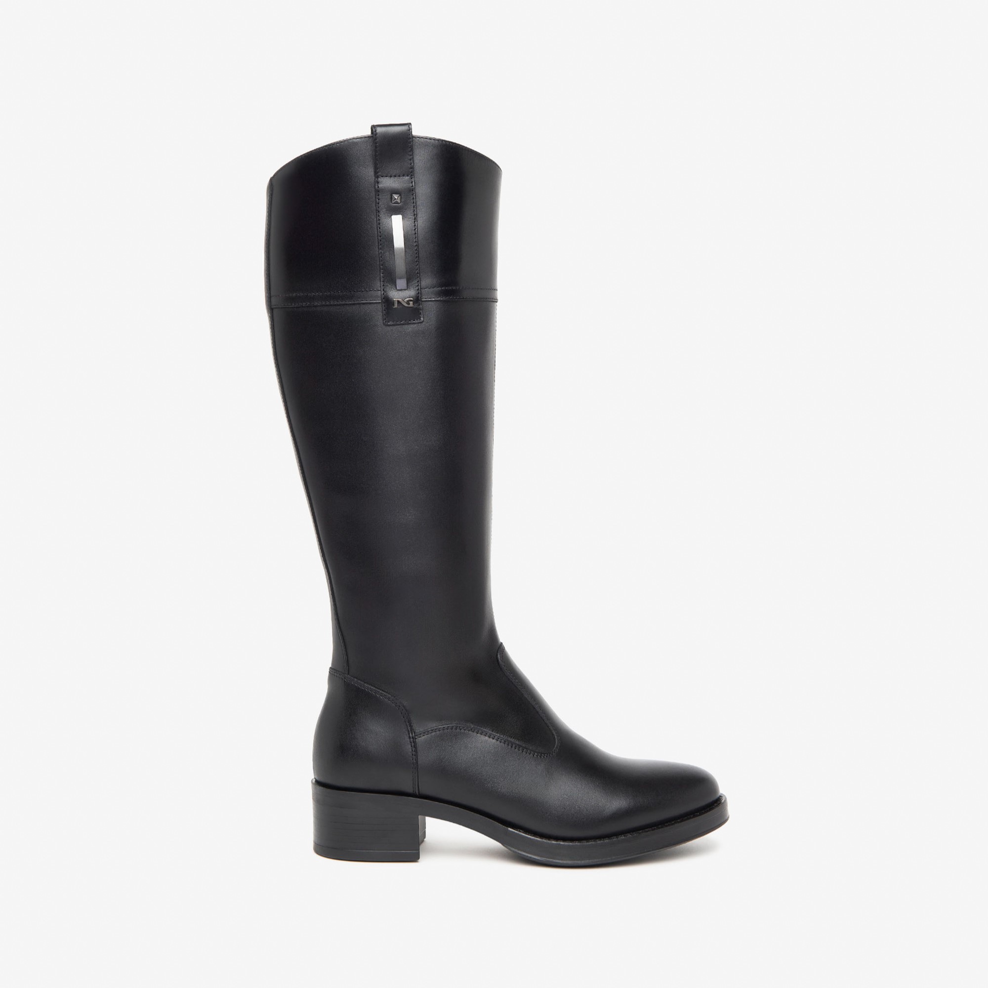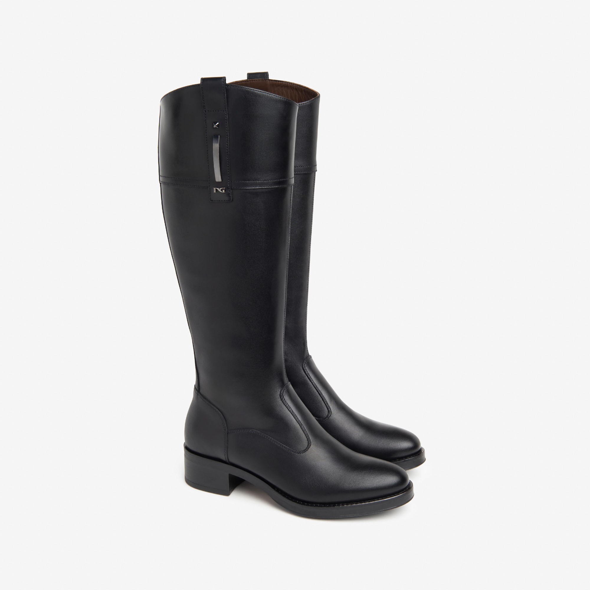 Nero Giardini kožne crne italijanske čizme sa srebrnom šnalom i malom petom od 4 cm