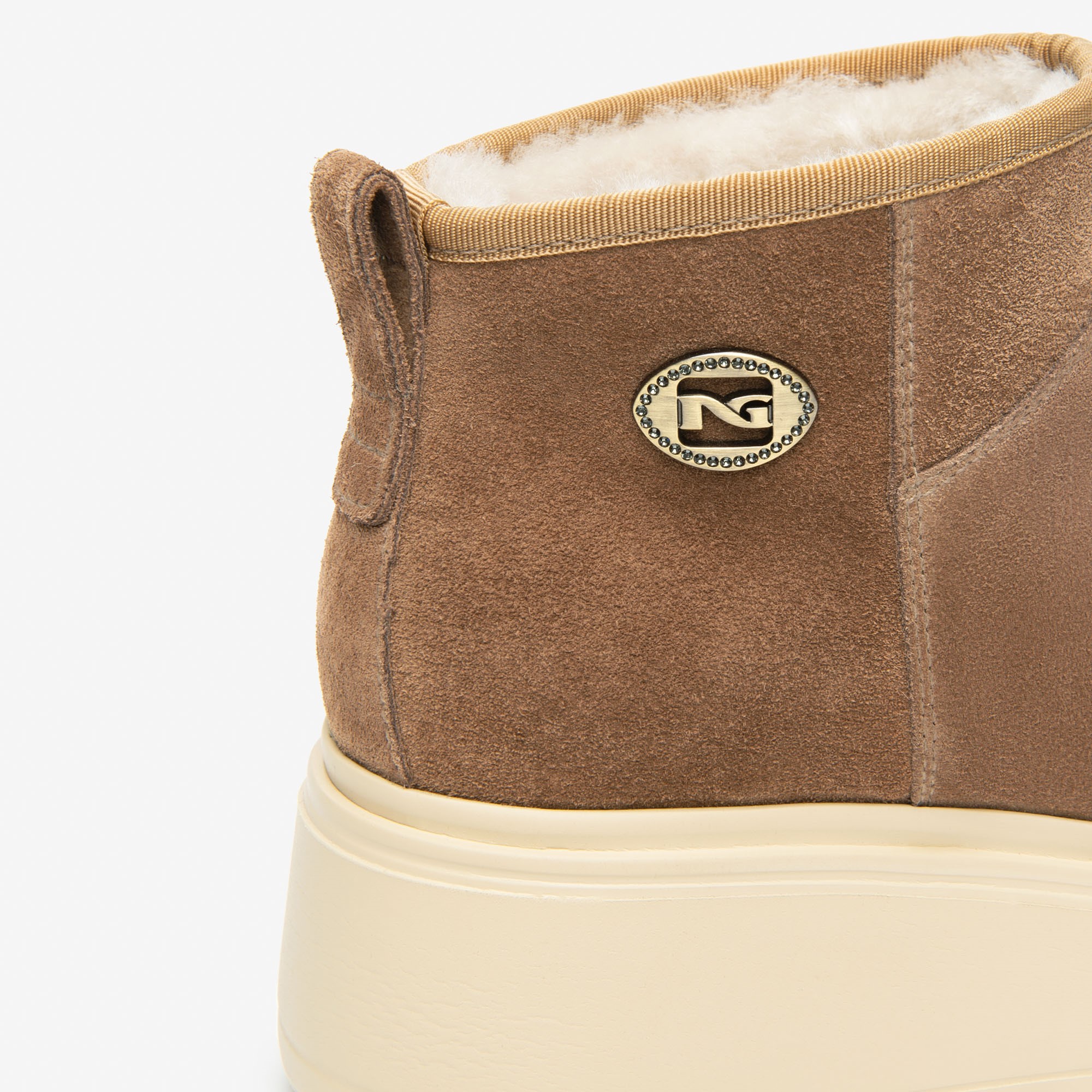 Nero Giardini kožne italijanske gležnjače u veluru na krem platforma đonu sa zlatnom NG šnalom i postavljene su vunom