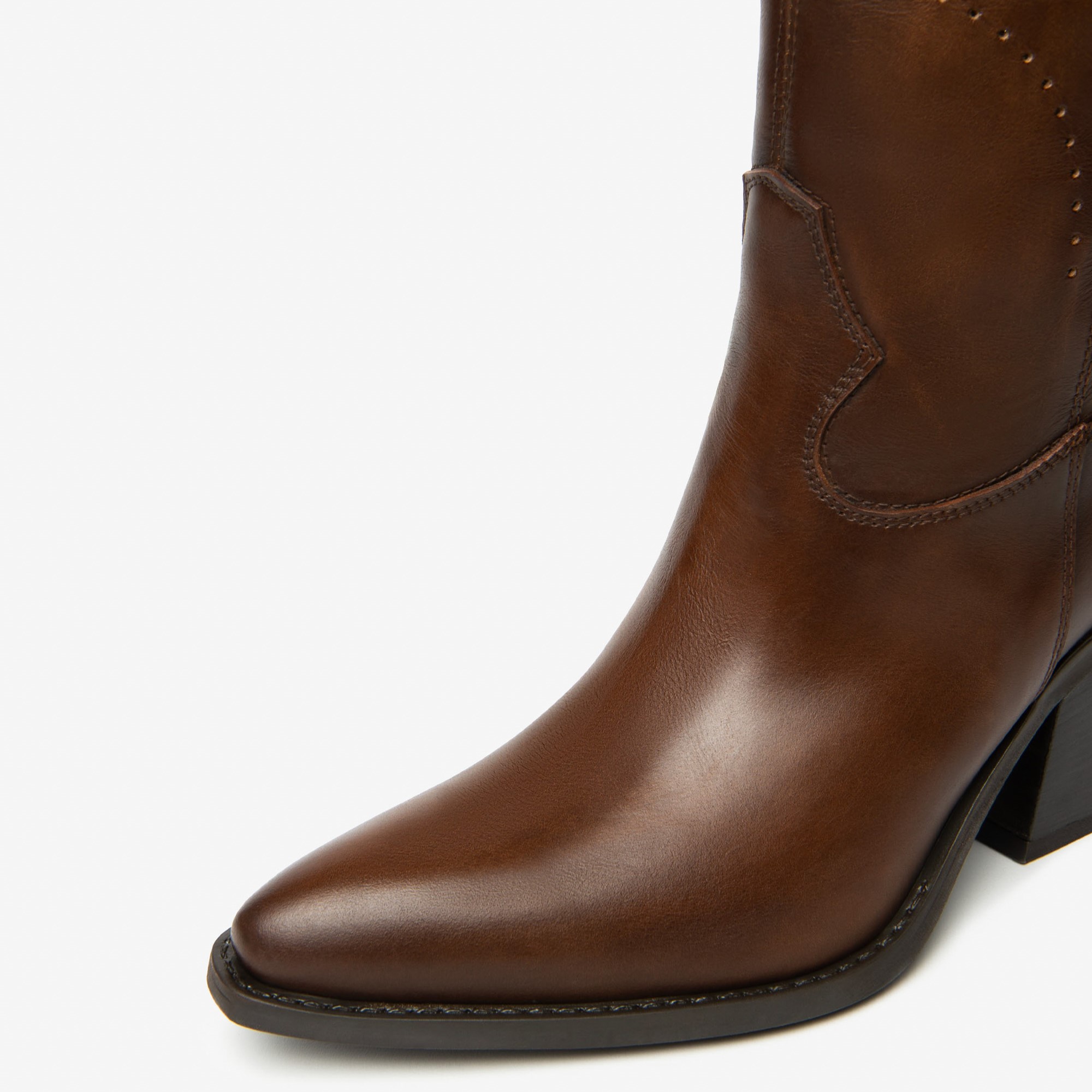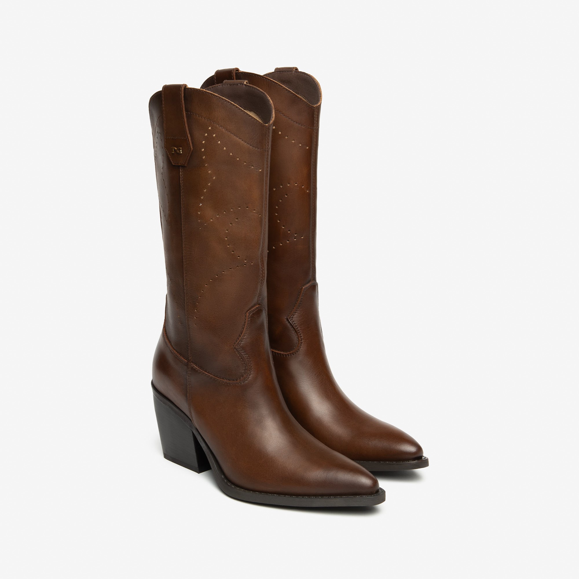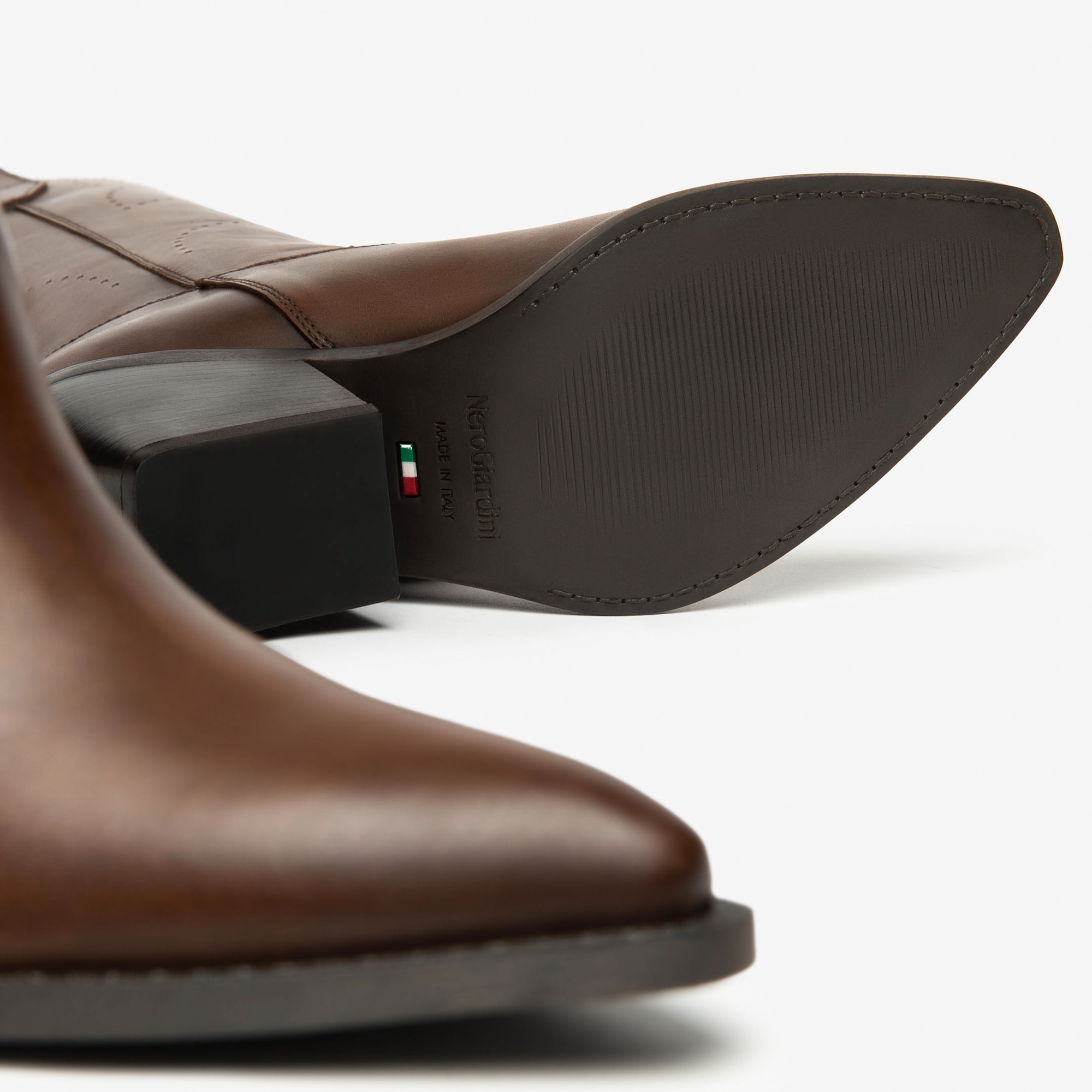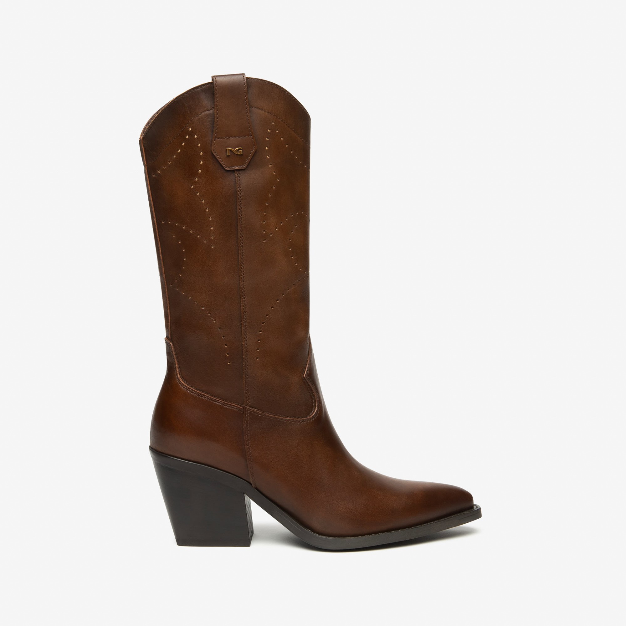 Nero Giardini kožne italijanske braon kaubojke na višoj stikli sa radom na koži
