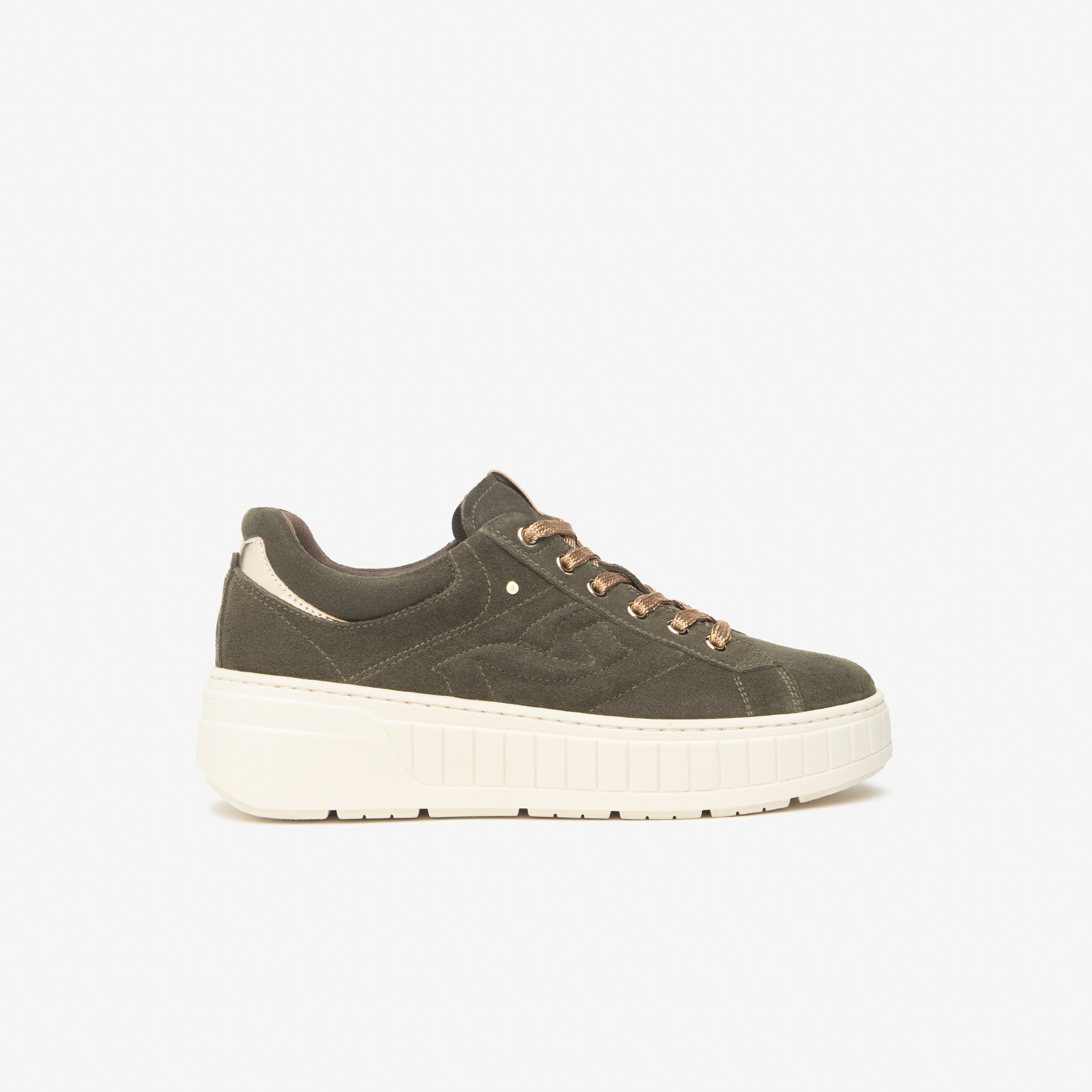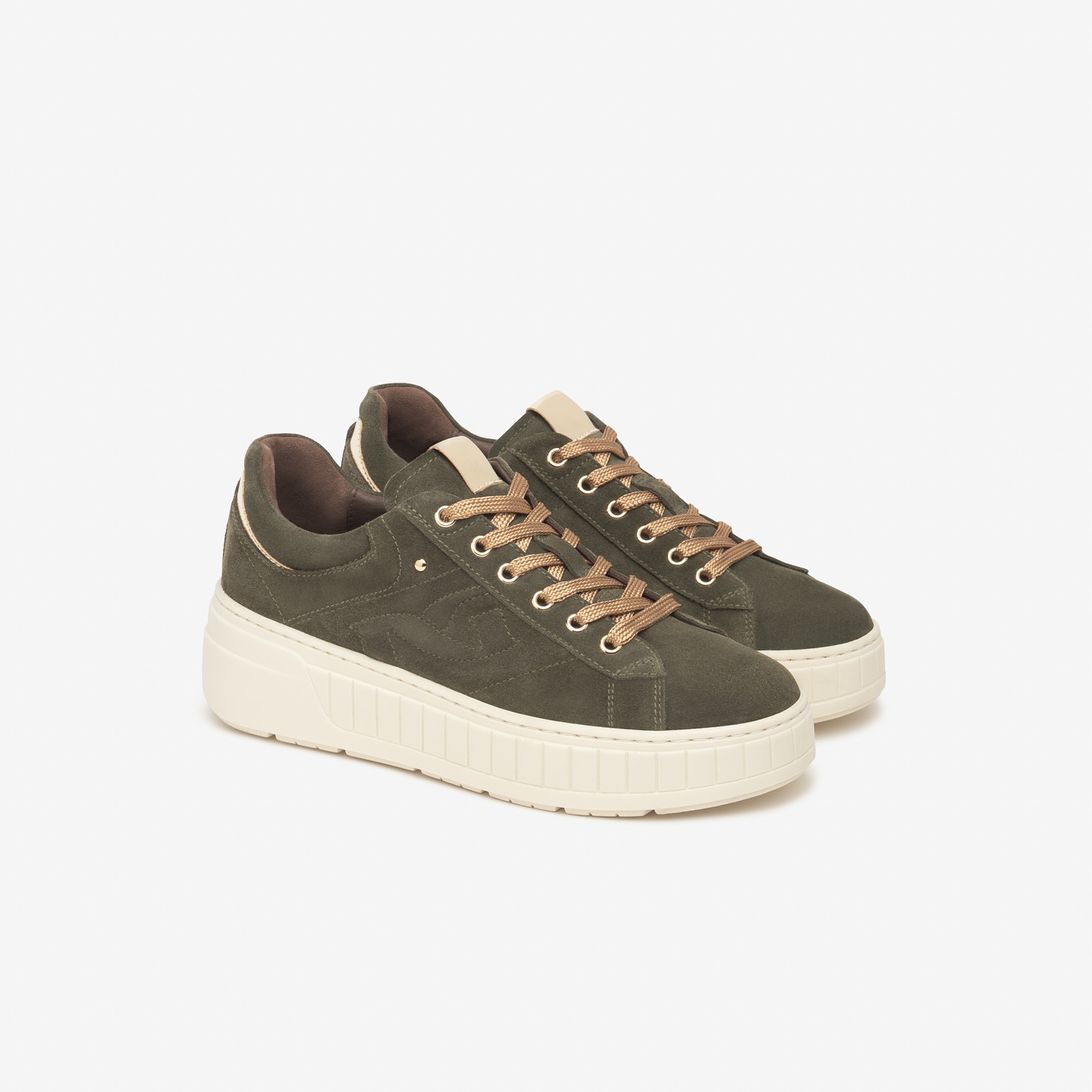 Nero Giardini velur kožne patike u zelenoj boji sa utisnutim logoom brenda na krem đonu