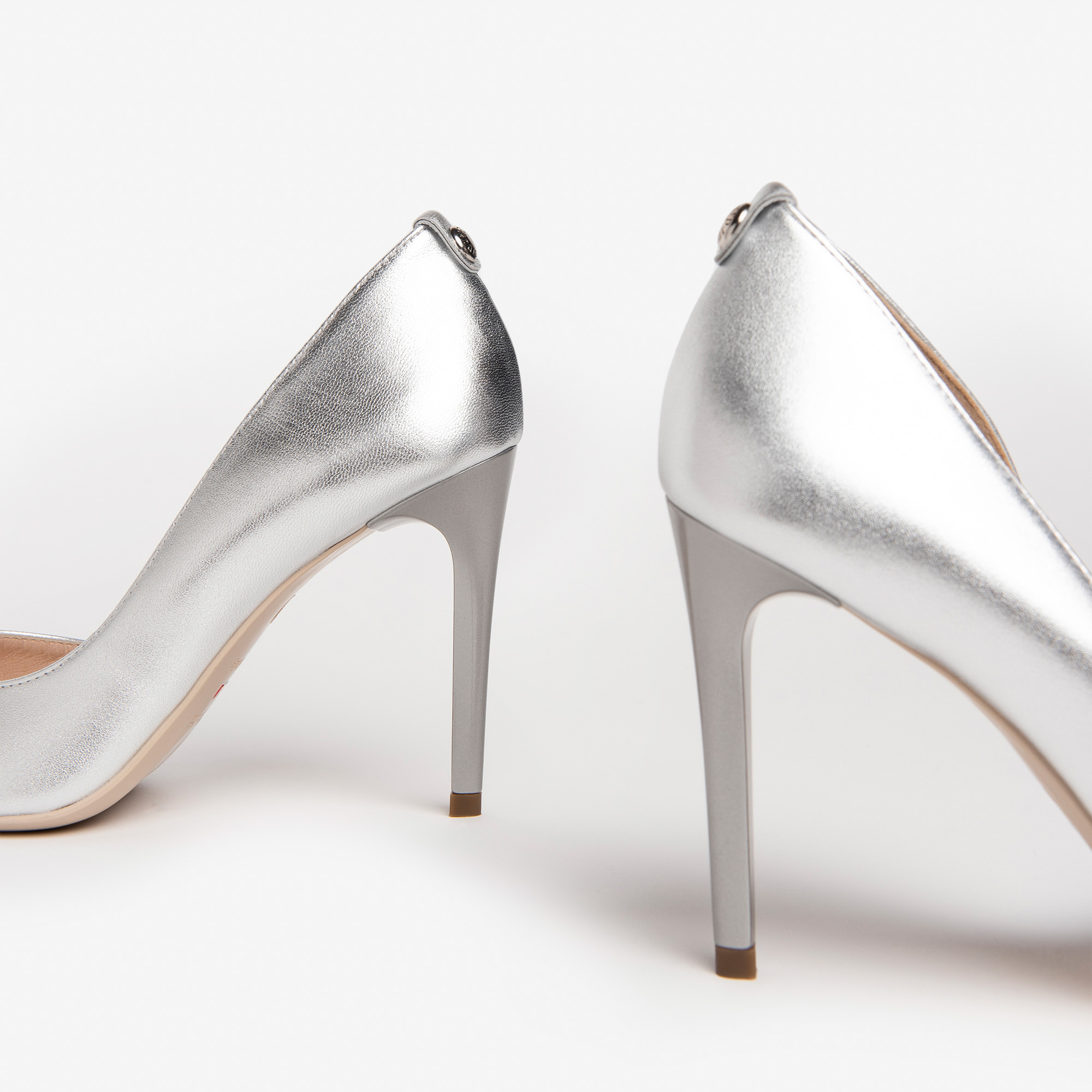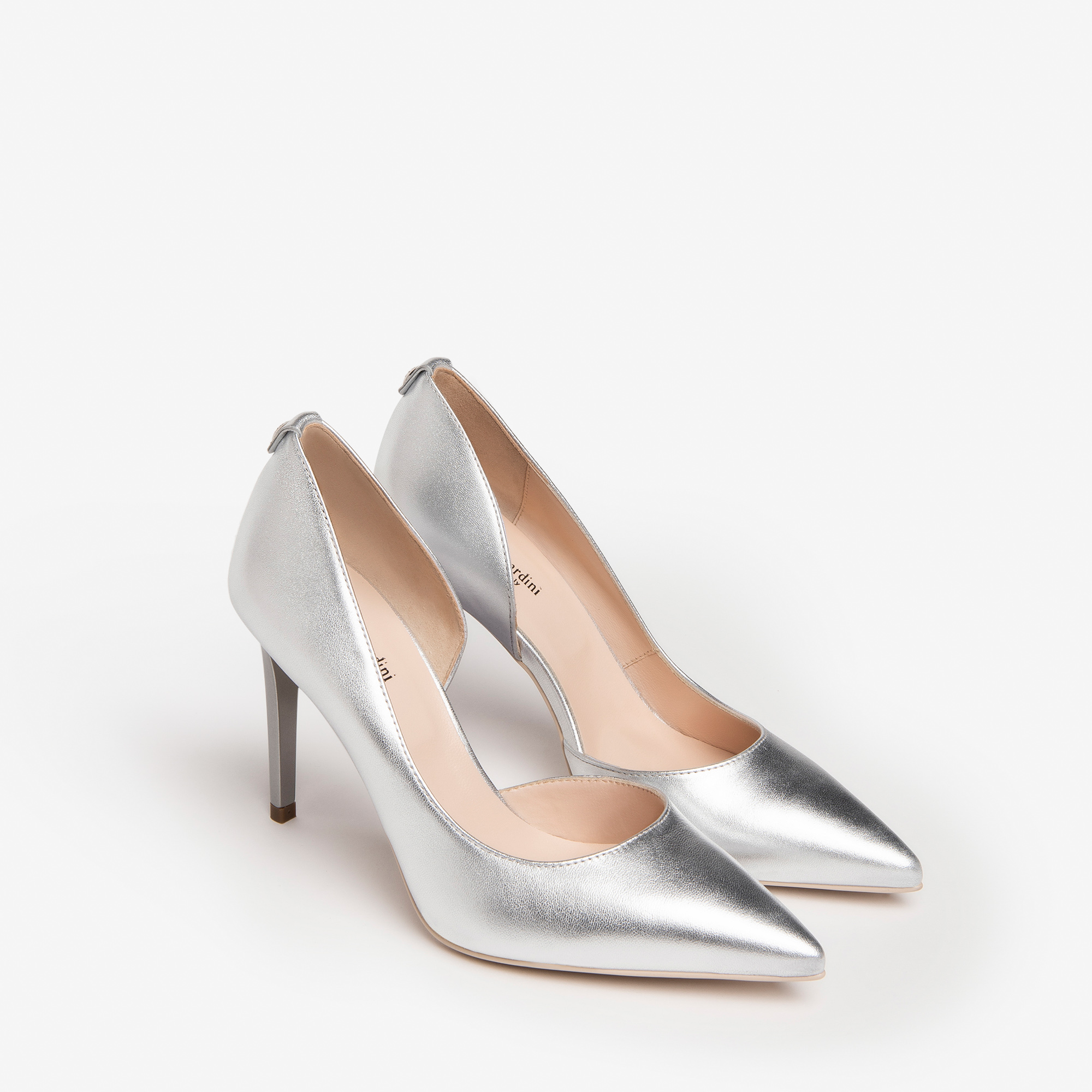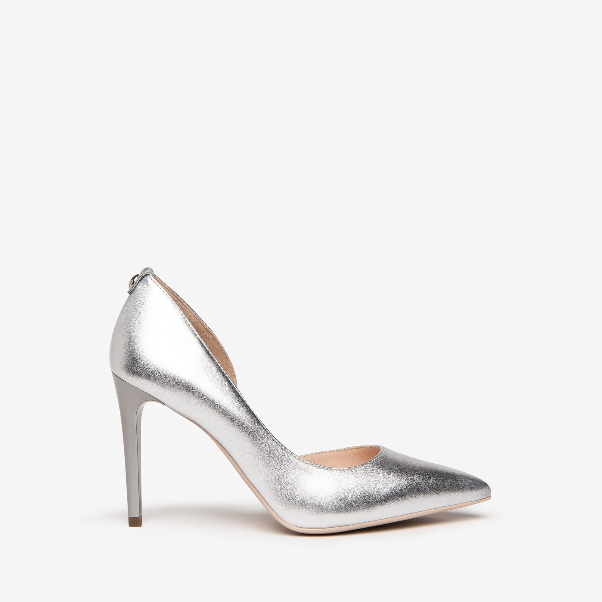 Nero Giardini kožne Premium Collection salonke u laminat srebrnoj boji na potpetici od 9cm, izuzetno udobne.