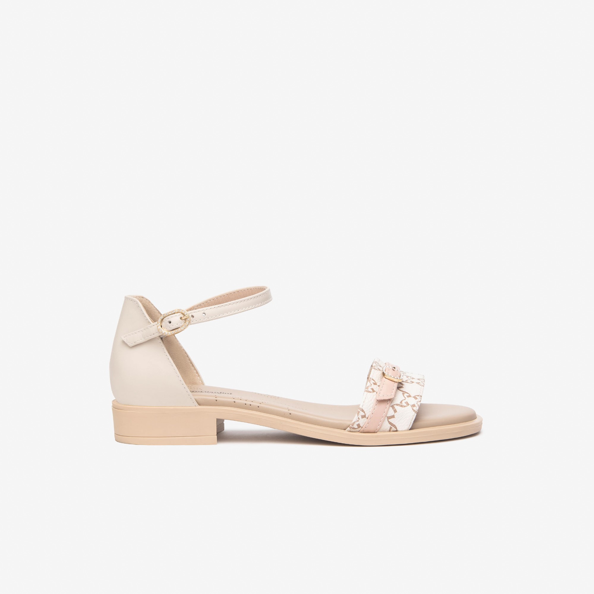 Nero Giardini italijanske kožne ravne sandale u bež boji sa monogramom brenda na prednjem kaišu