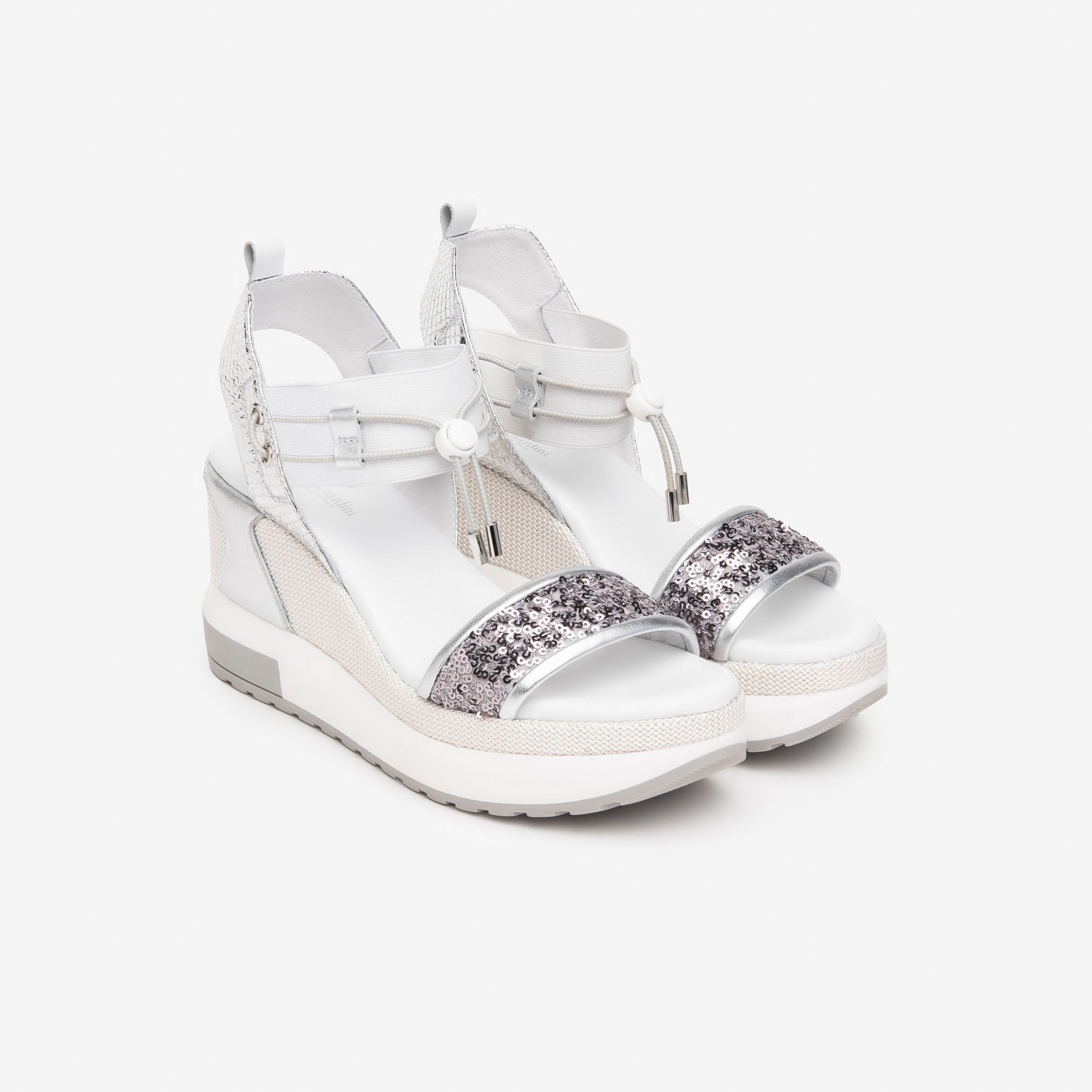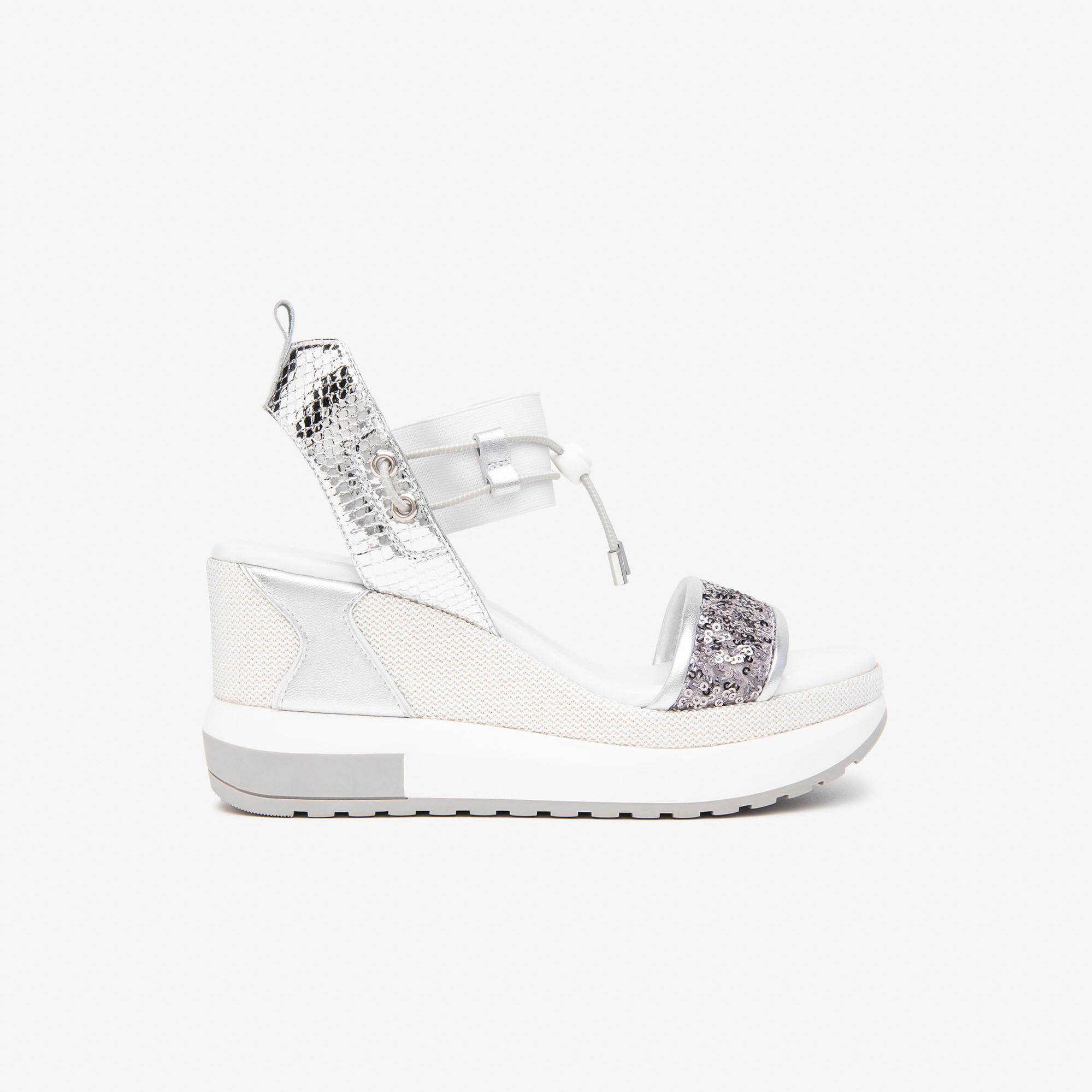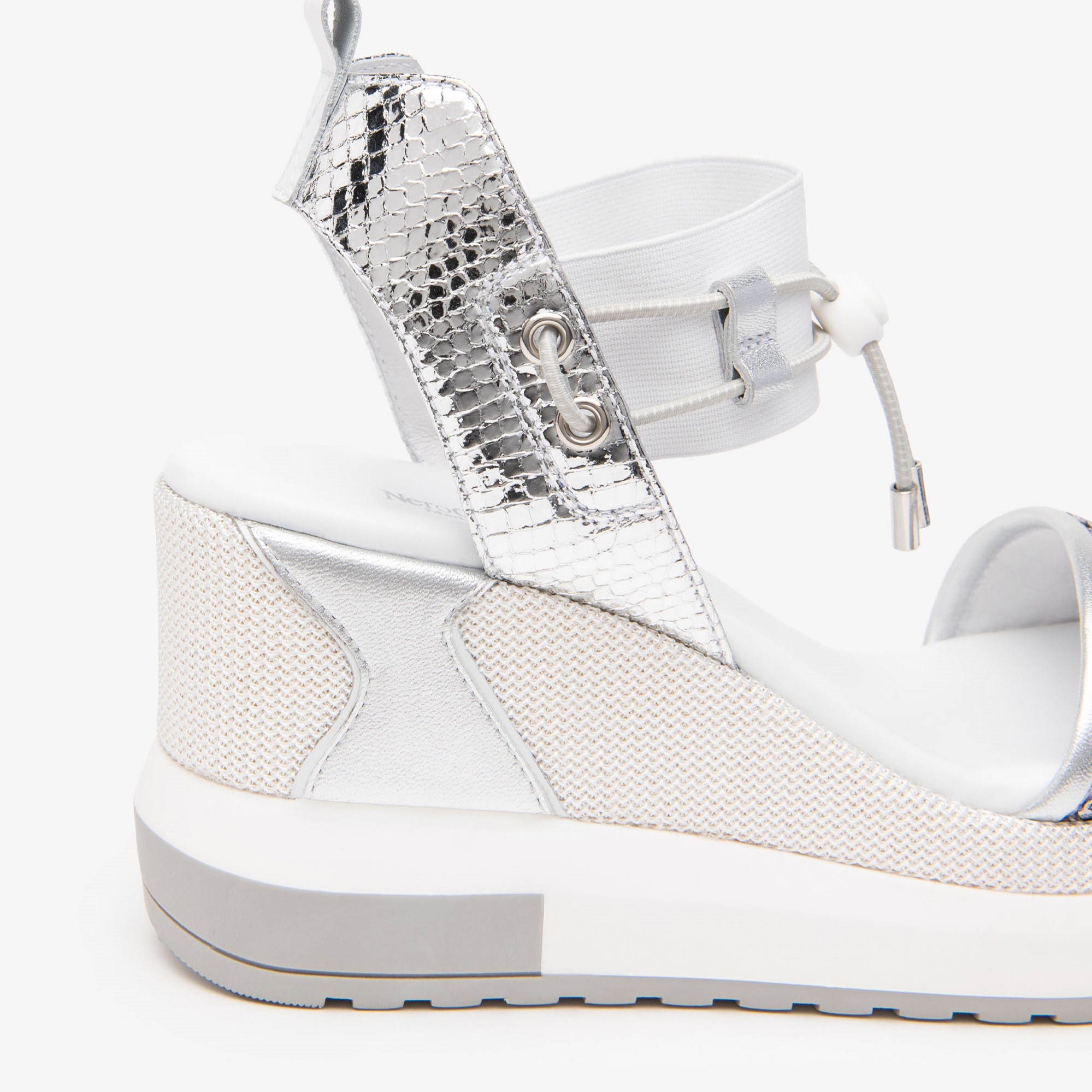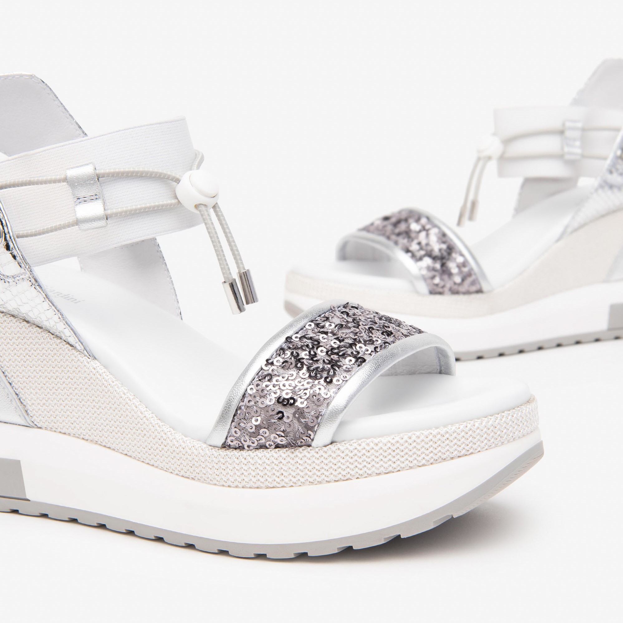 Nero Giardini letnje sport sandale na ortoped u srebrnoj boji sa srebrnim štrasom na prednjem kaišu