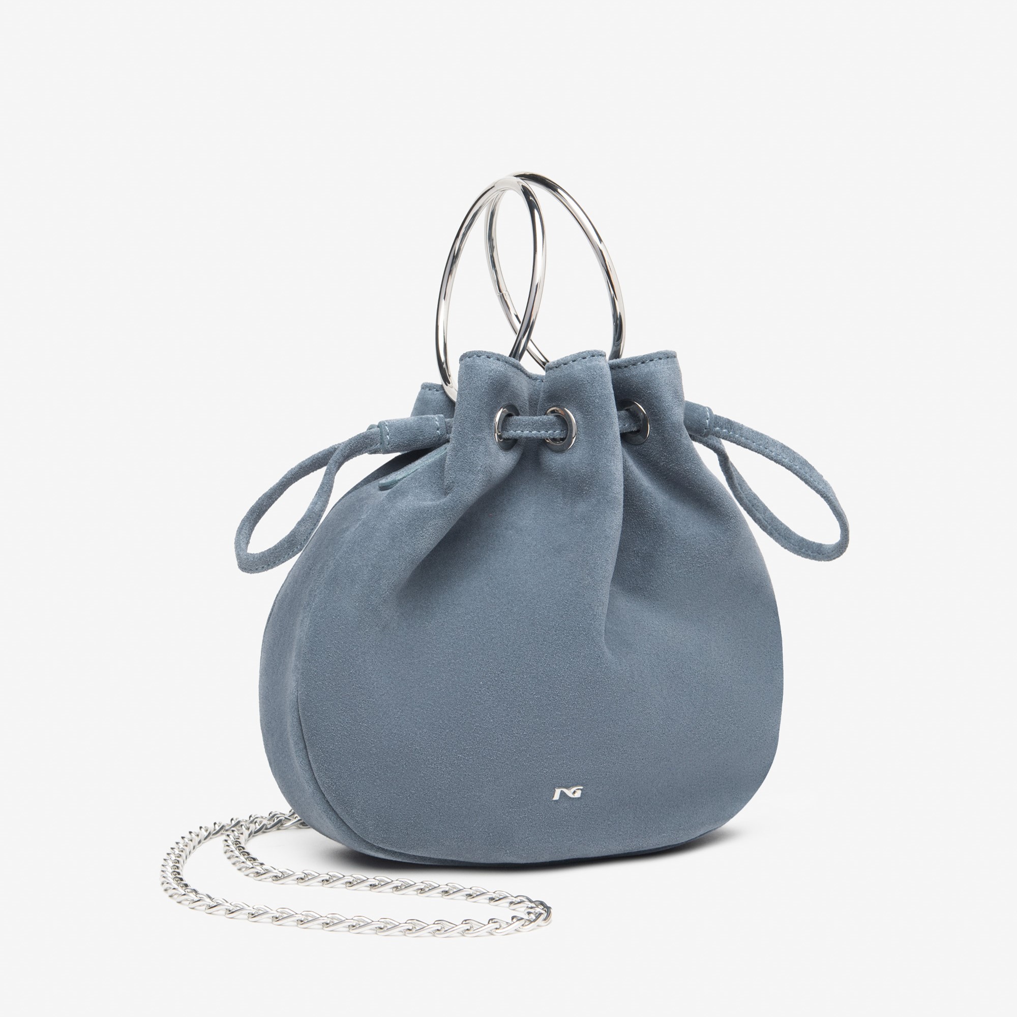 Nero Giardini italijanska velur kožna plava torba sa srebrnim alkama i lancem