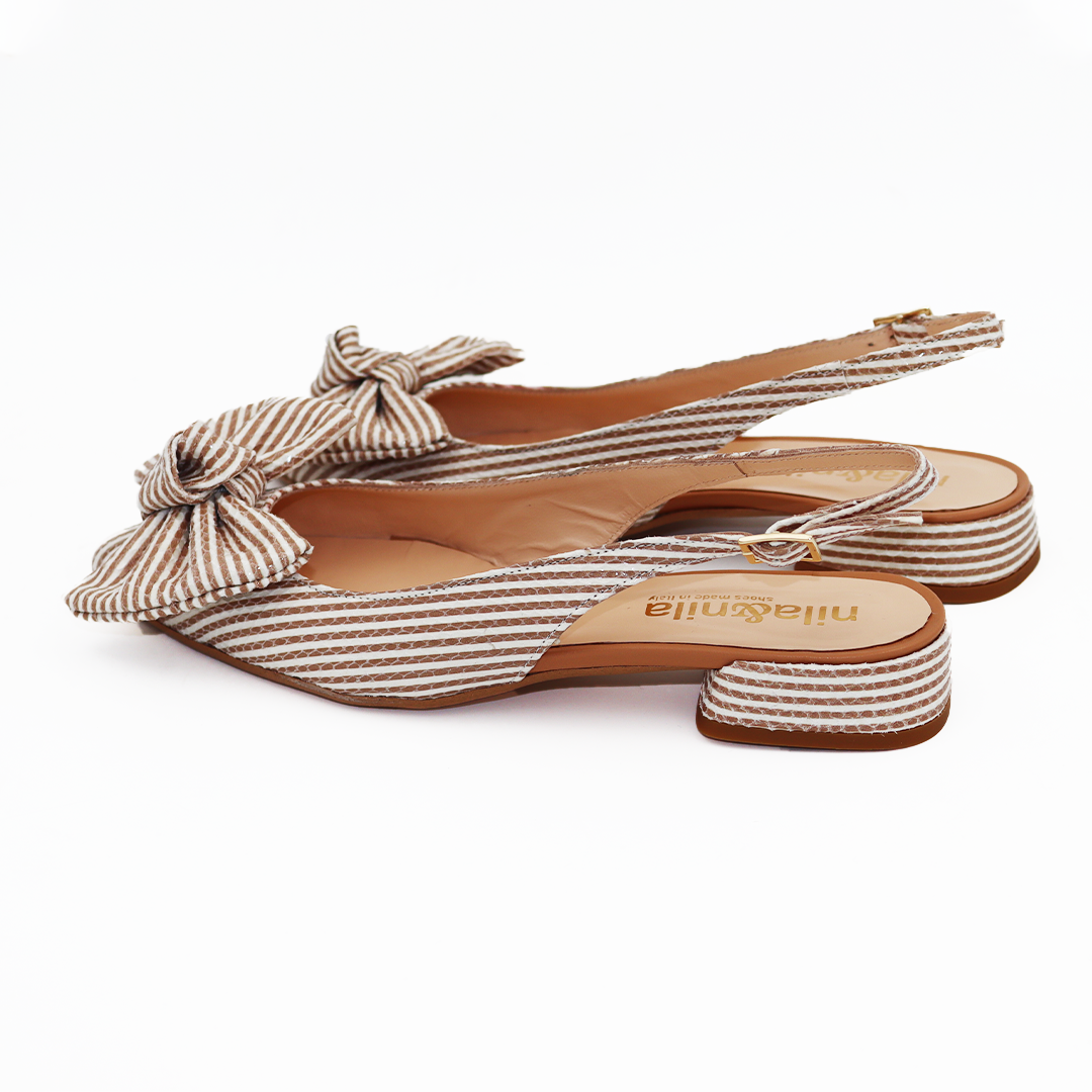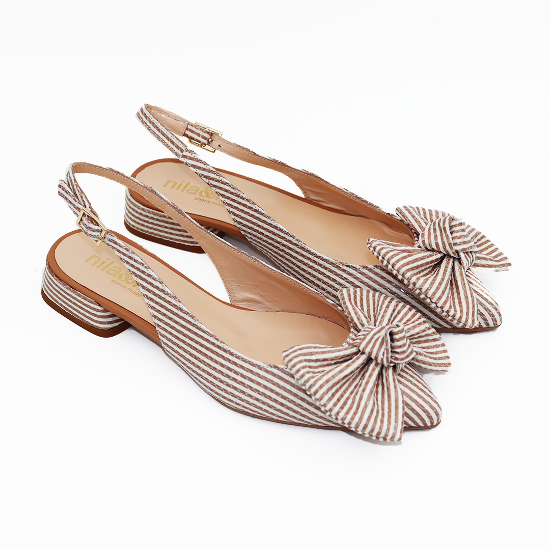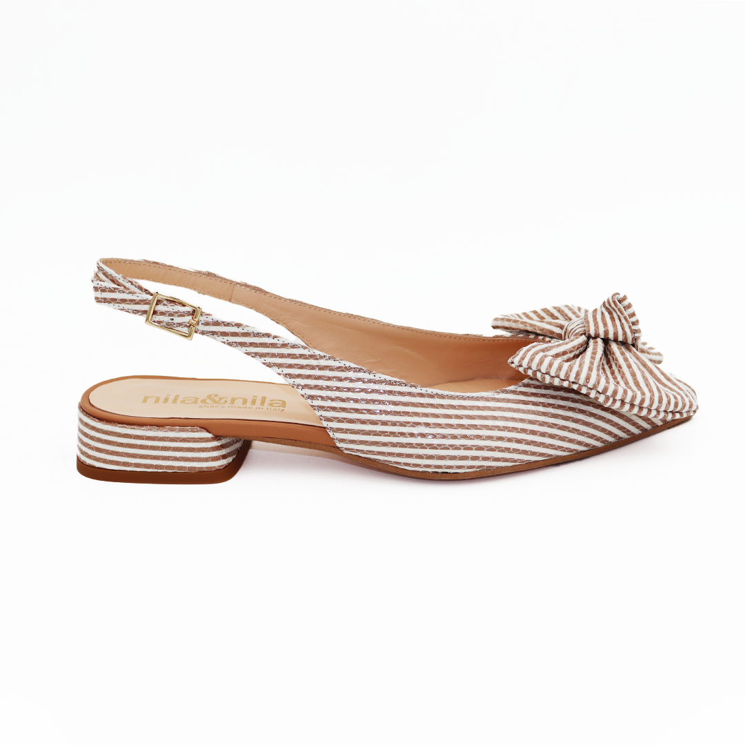 Nila Nila kožne italijanske sandalete u bež boji sa velikom mašnom na špicu, u sjajnoj koži.