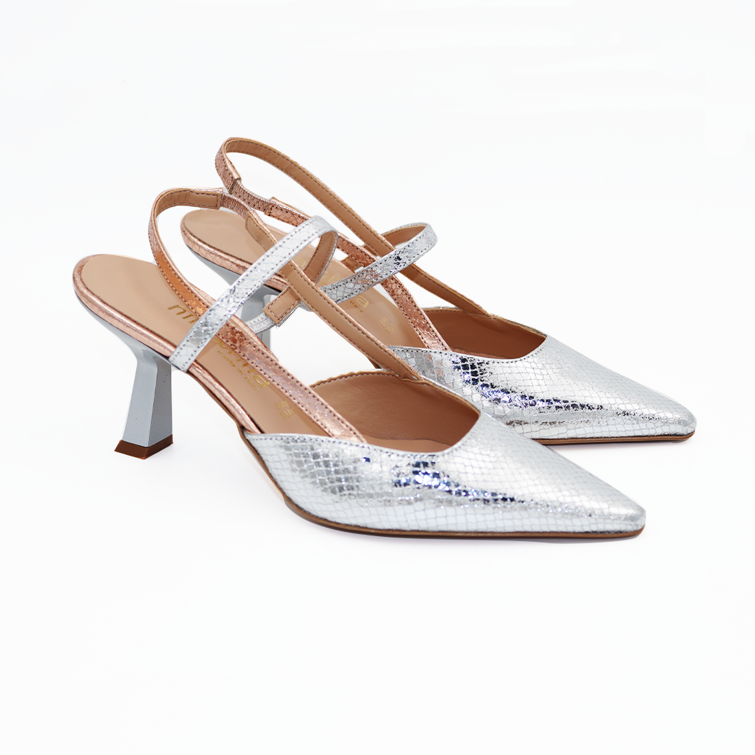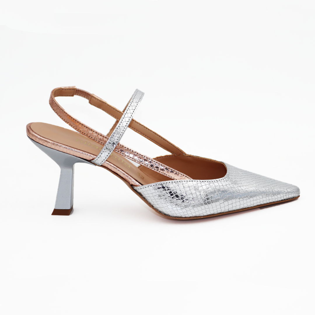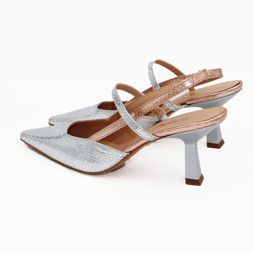 Nila Nila kožne italijanske sandalete na potpetici od 8 cm u argento srebrnoj boji sa bronzanim kaiševima