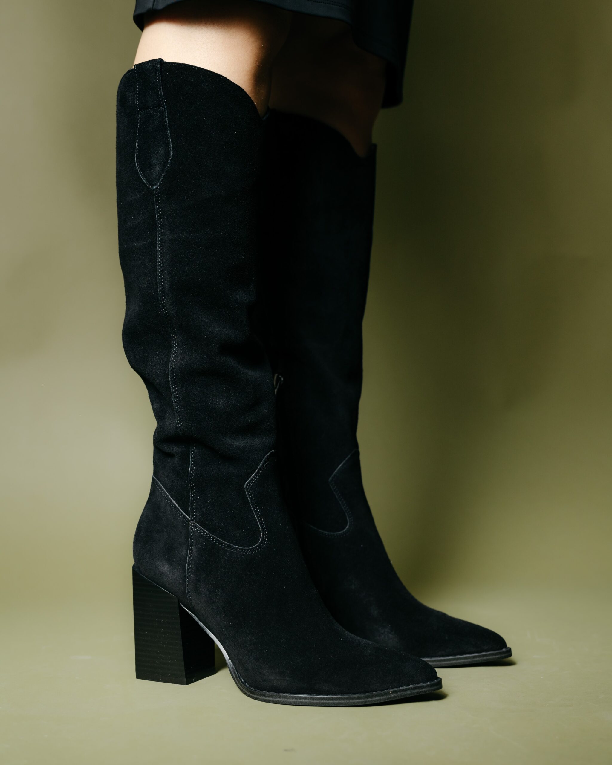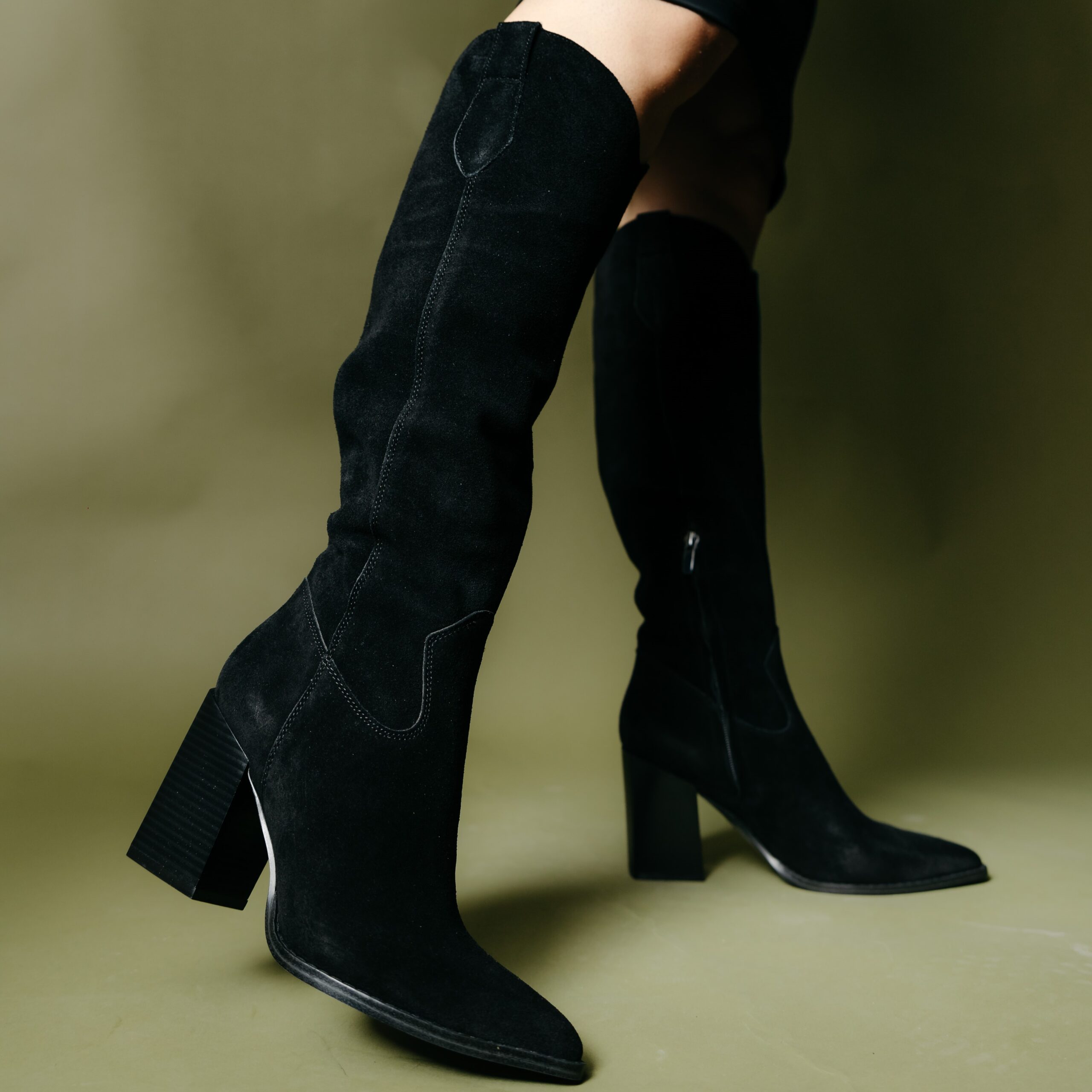 Nine West kožne kaubojka čizme na štiklu u veluru do kolena
