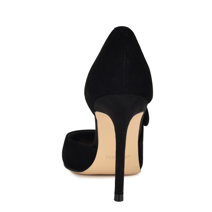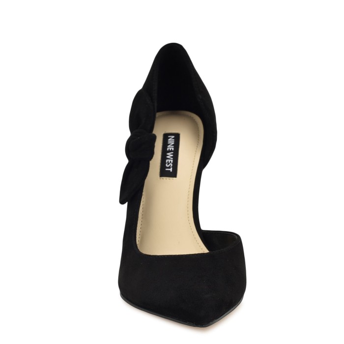 Nine West salonke sa mašnicom sa strane i izrezom na unutrašnjem delu na potpetici od 9,5 cm u prirodnom crnom veluru