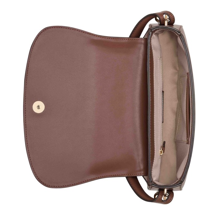 Nine West braon čokoladna torbica sa zlatnim detaljima. Dimenzije: 26 x 6 x 16 cm